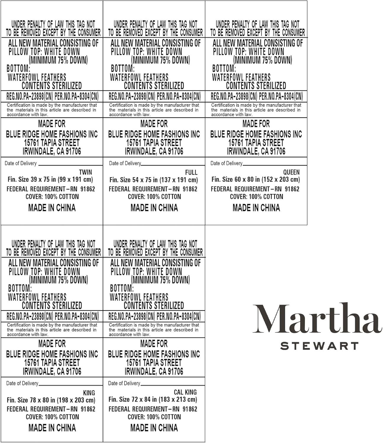 Certificates – Martha Stewart down feather mattress topper is certified to free of harmful effects and safe for human use. It's clean, pure and odourless. We have obtained various certificates, such as OEKO-TEX, ADFC ( American Down And Feather Council ), etc. To ensure high product quality, safety, and ethical down sourcing.