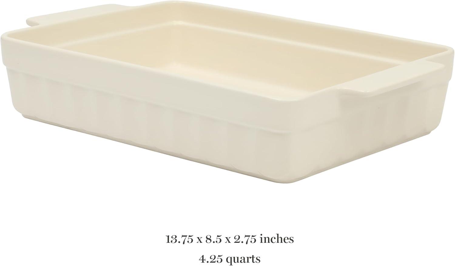 With its beautifully-crafted design, this stoneware baker set offers style and performance to cover all bases for any baker at any level. Inspired by Martha's love for elevated dining and entertaining, these pieces let you master her recipes and bake a bit more like Martha. Oven safe up to 450°F. Dishwasher and microwave safe.