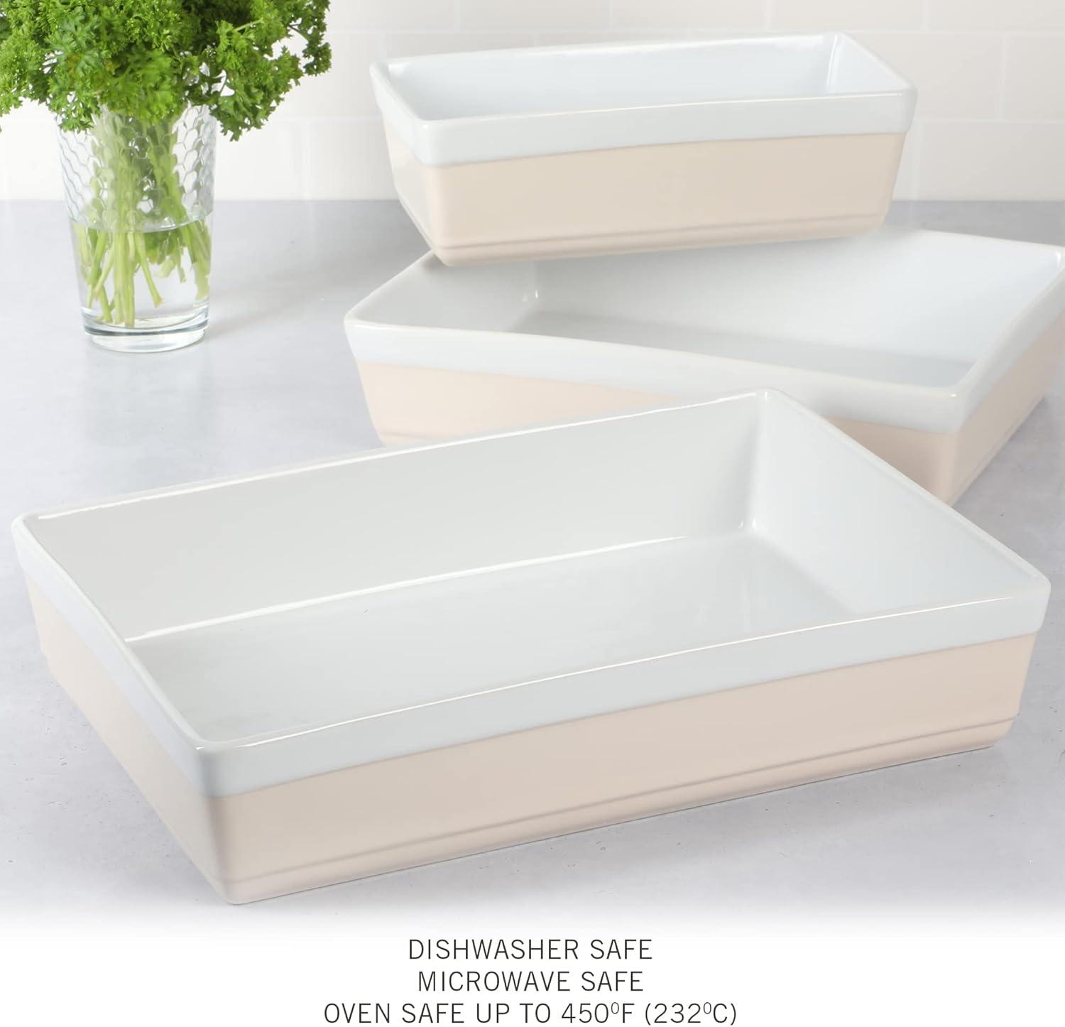 MARTHA STEWART 3 Piece Oven to Table Stoneware Bakeware, Baking Dish & Casserole Set – Red(Pink)