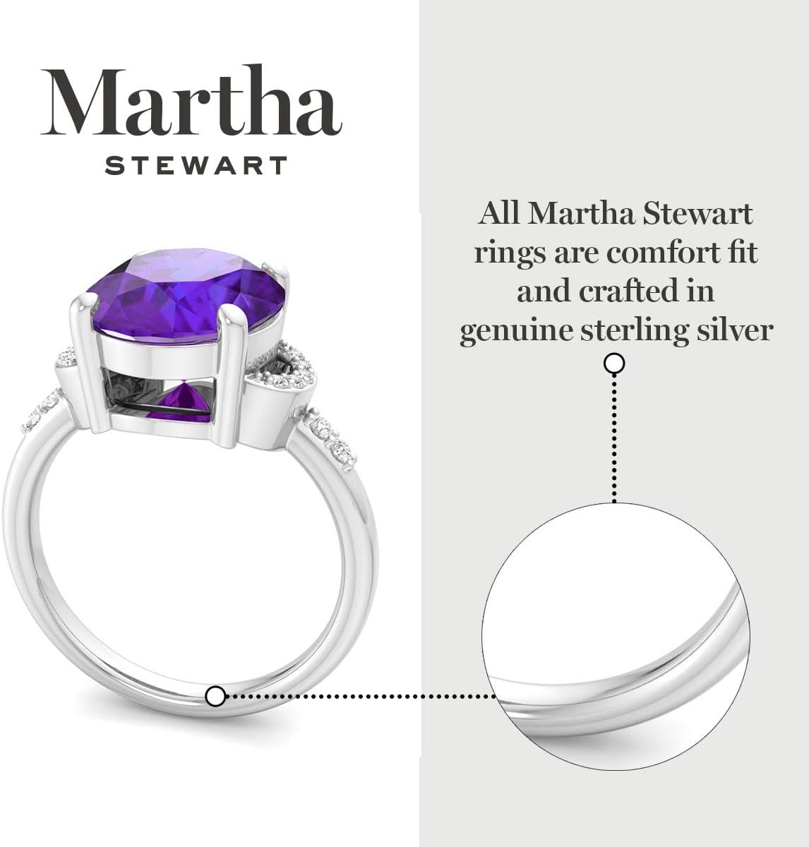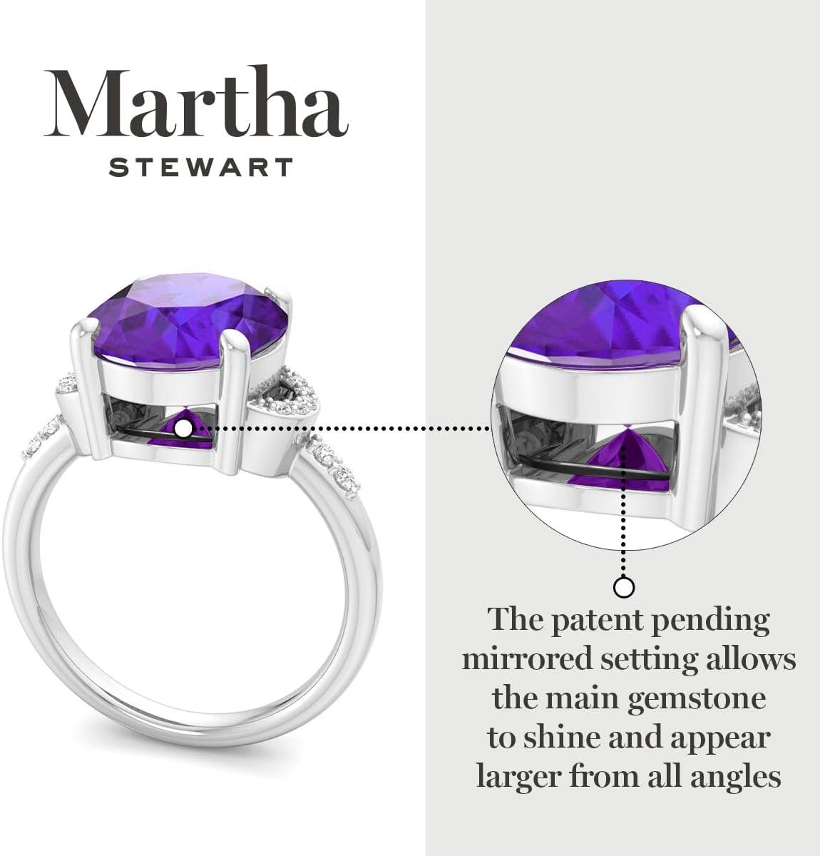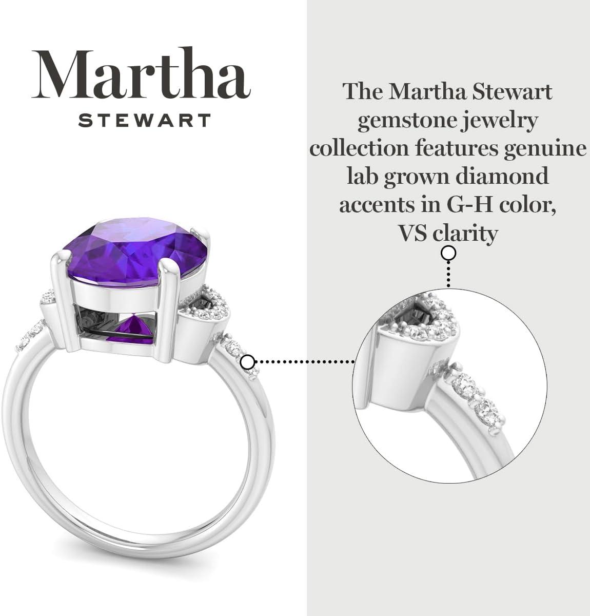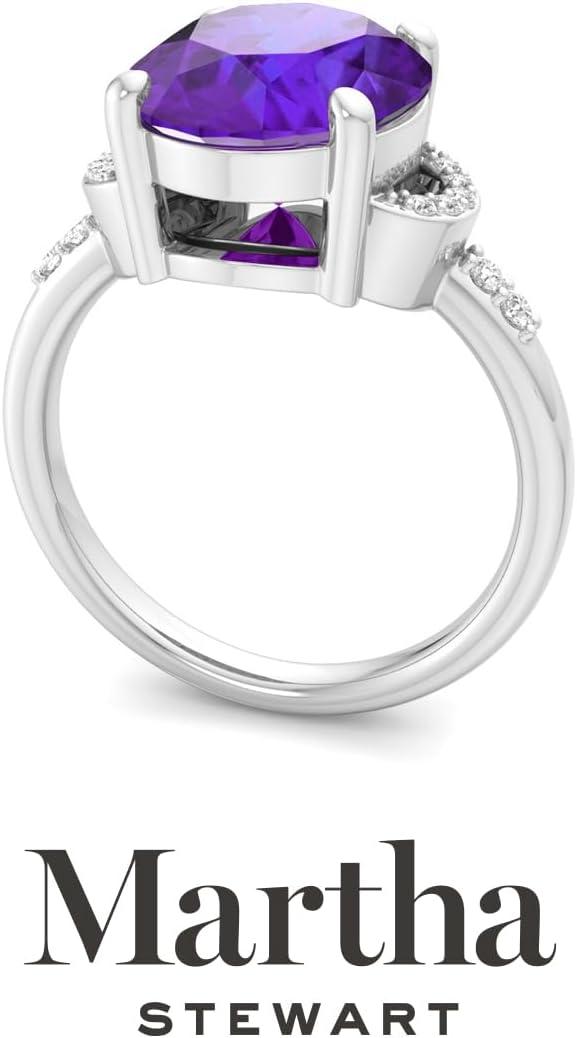 Martha Stewart 4 1/2 Carat Oval Shape Gemstone Ring with Lab Grown Diamonds in Sterling Silver, Choose Your Gemstone(Amethyst)
