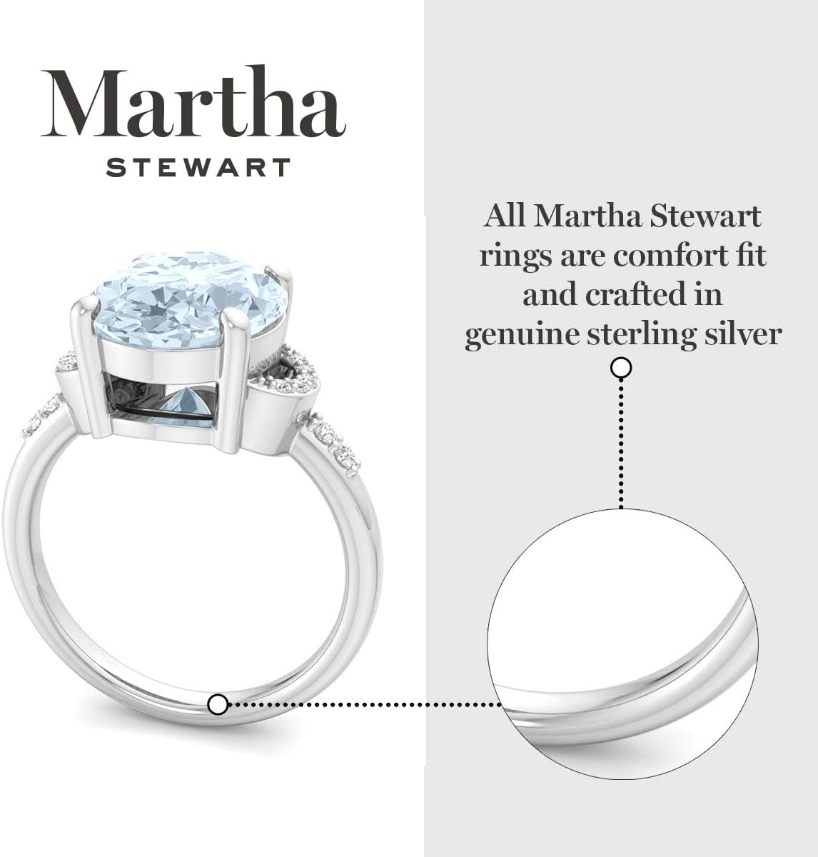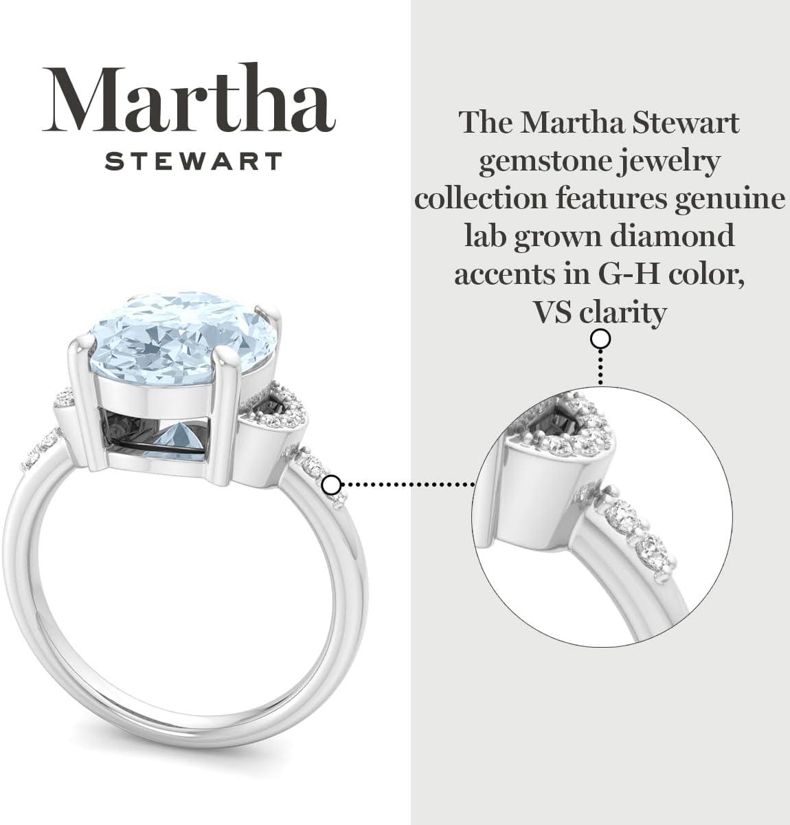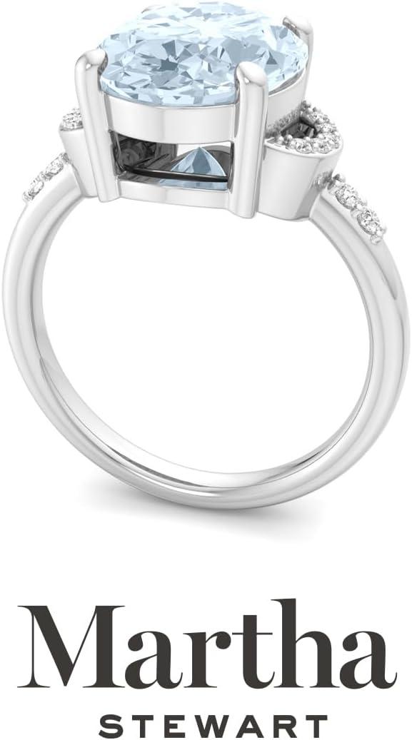 Martha Stewart 4 1/2 Carat Oval Shape Gemstone Ring with Lab Grown Diamonds in Sterling Silver, Choose Your Gemstone(Aquamarine)