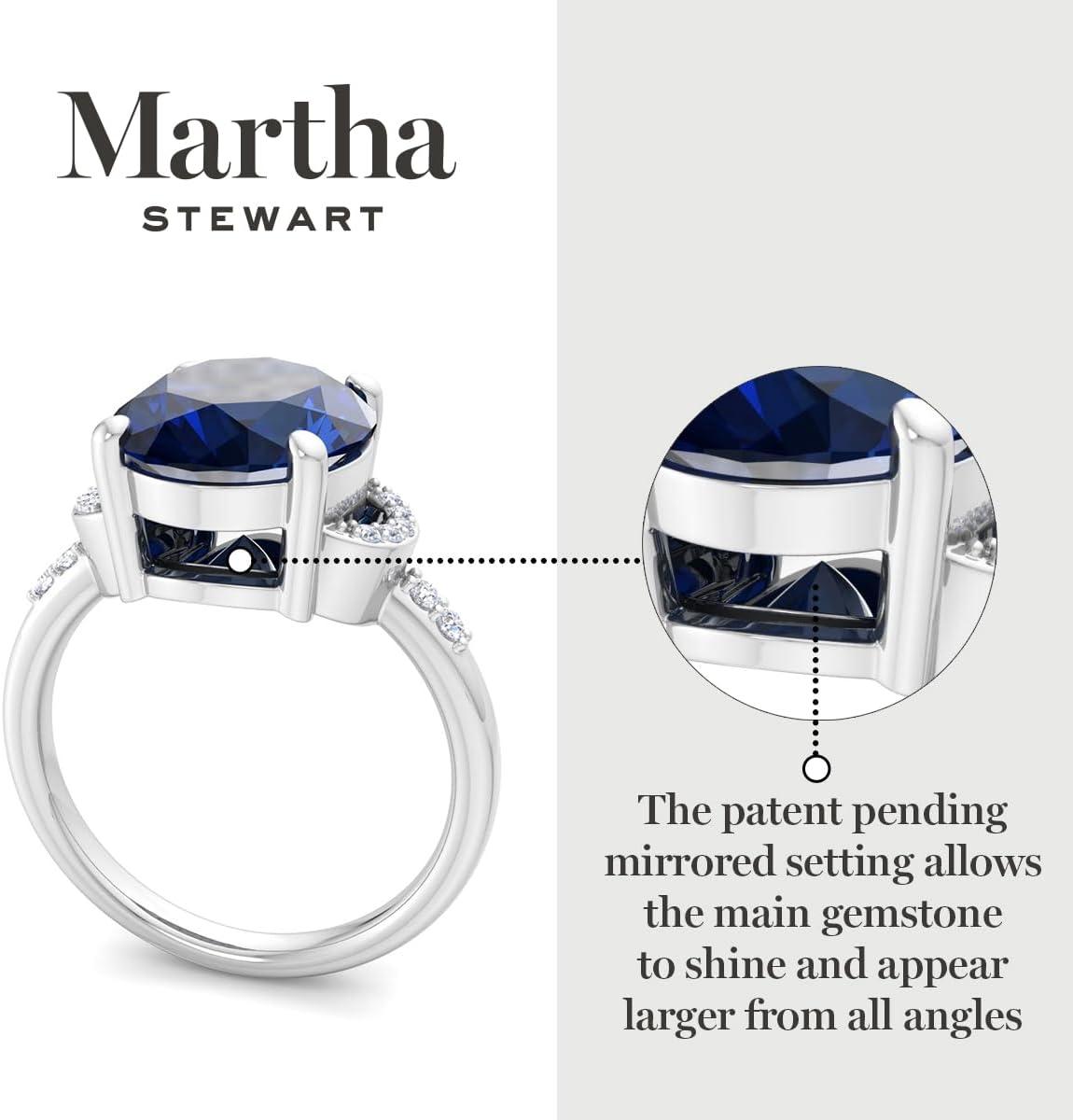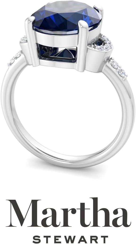 Martha Stewart 4 1/2 Carat Oval Shape Gemstone Ring with Lab Grown Diamonds in Sterling Silver, Choose Your Gemstone(Sapphire)