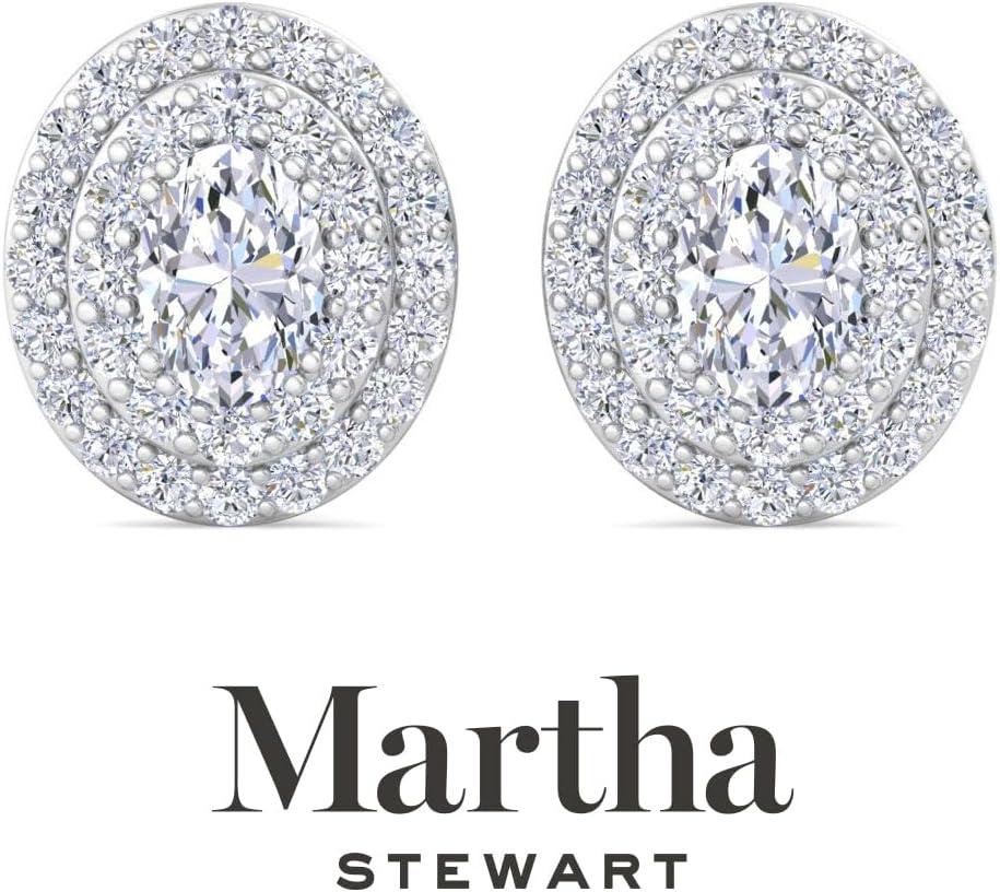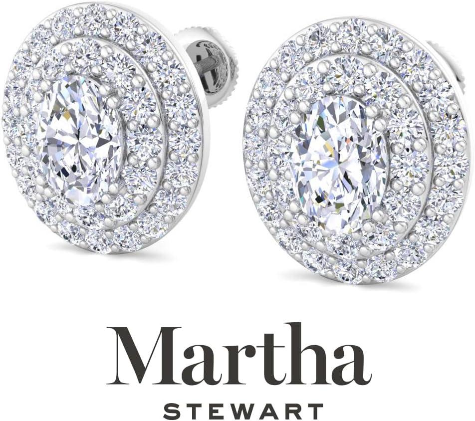 Martha Stewart 4 Carat Lab Grown Diamond Halo Stud Earrings In 14K Gold, Oval Shape Lab Grown Diamond Earrings for Women(white-gold)