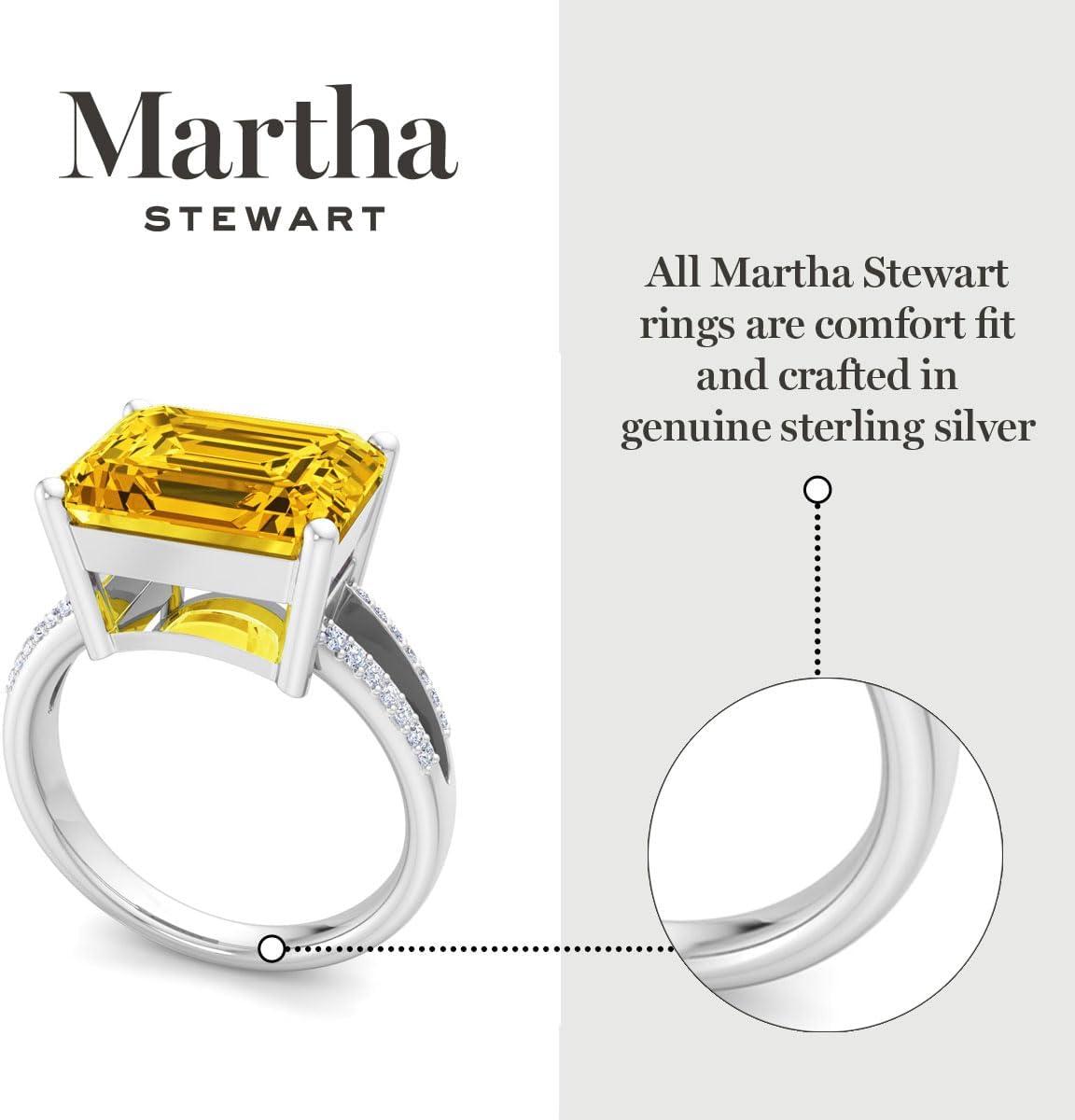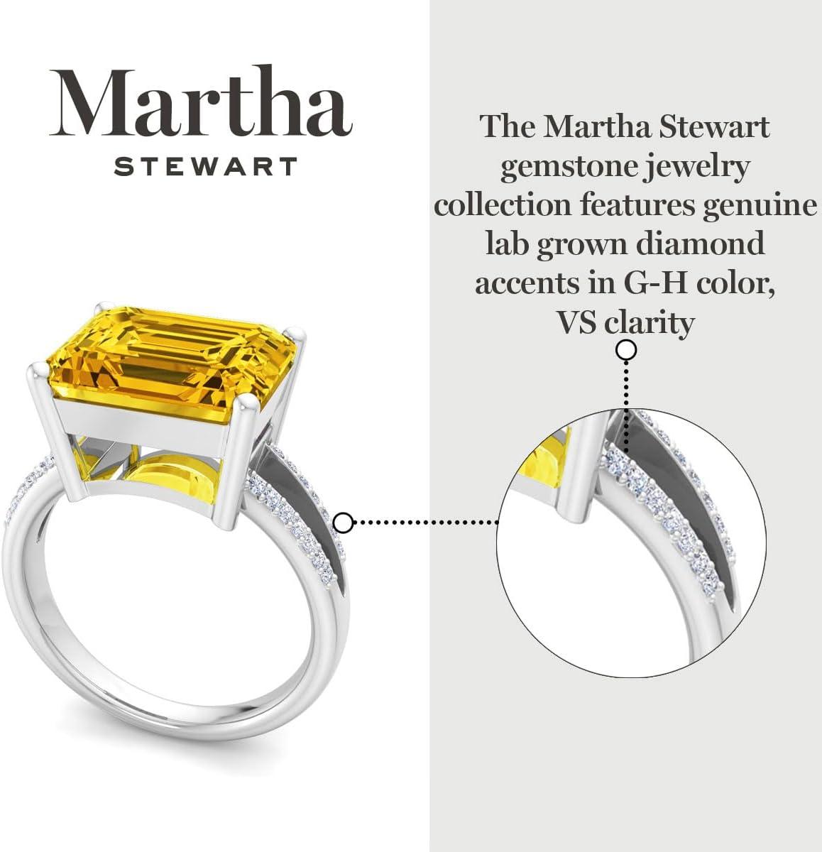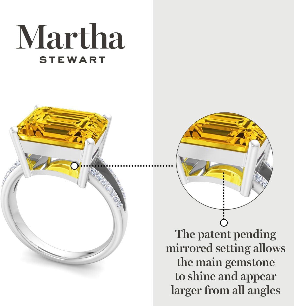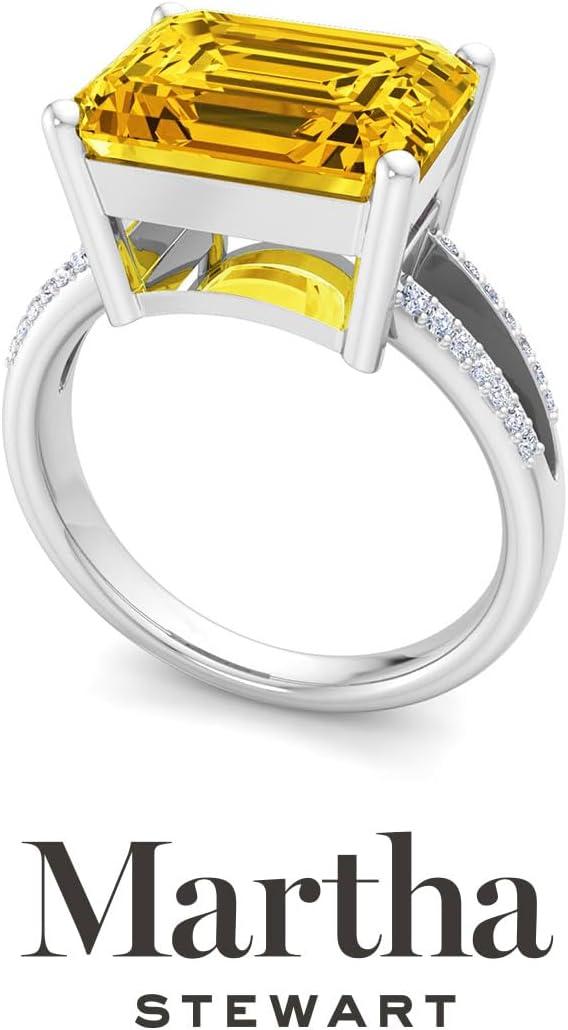 Martha Stewart 5 1/2 Carat Emerald Cut Gemstone Ring with Lab Grown Diamonds in Sterling Silver, Choose Your Gemstone(Citrine)