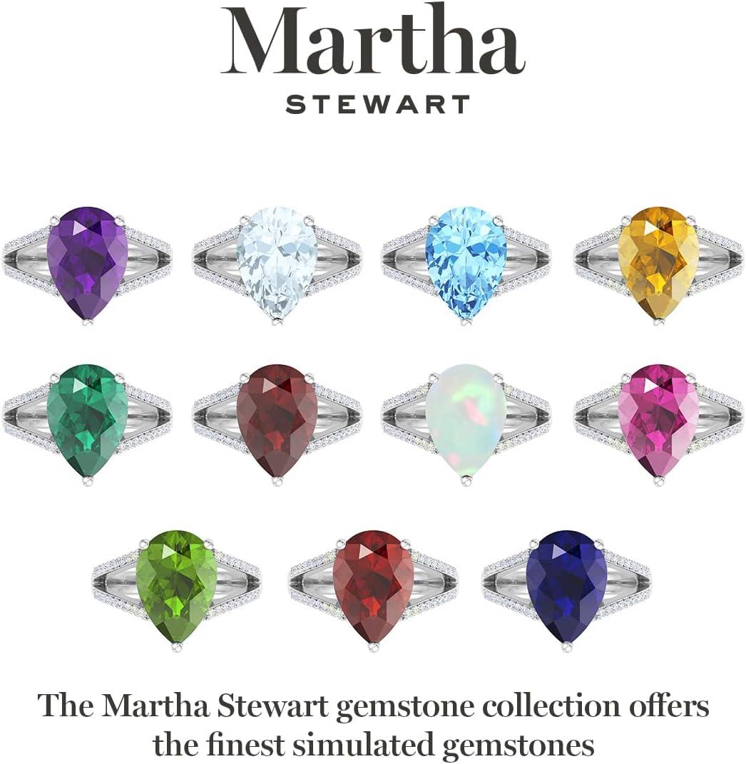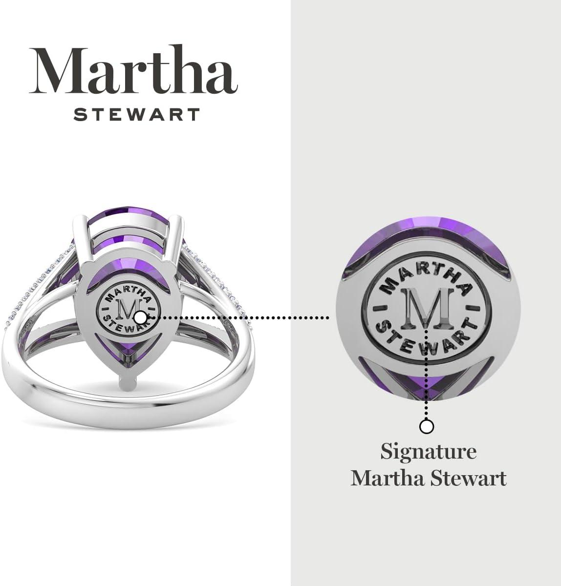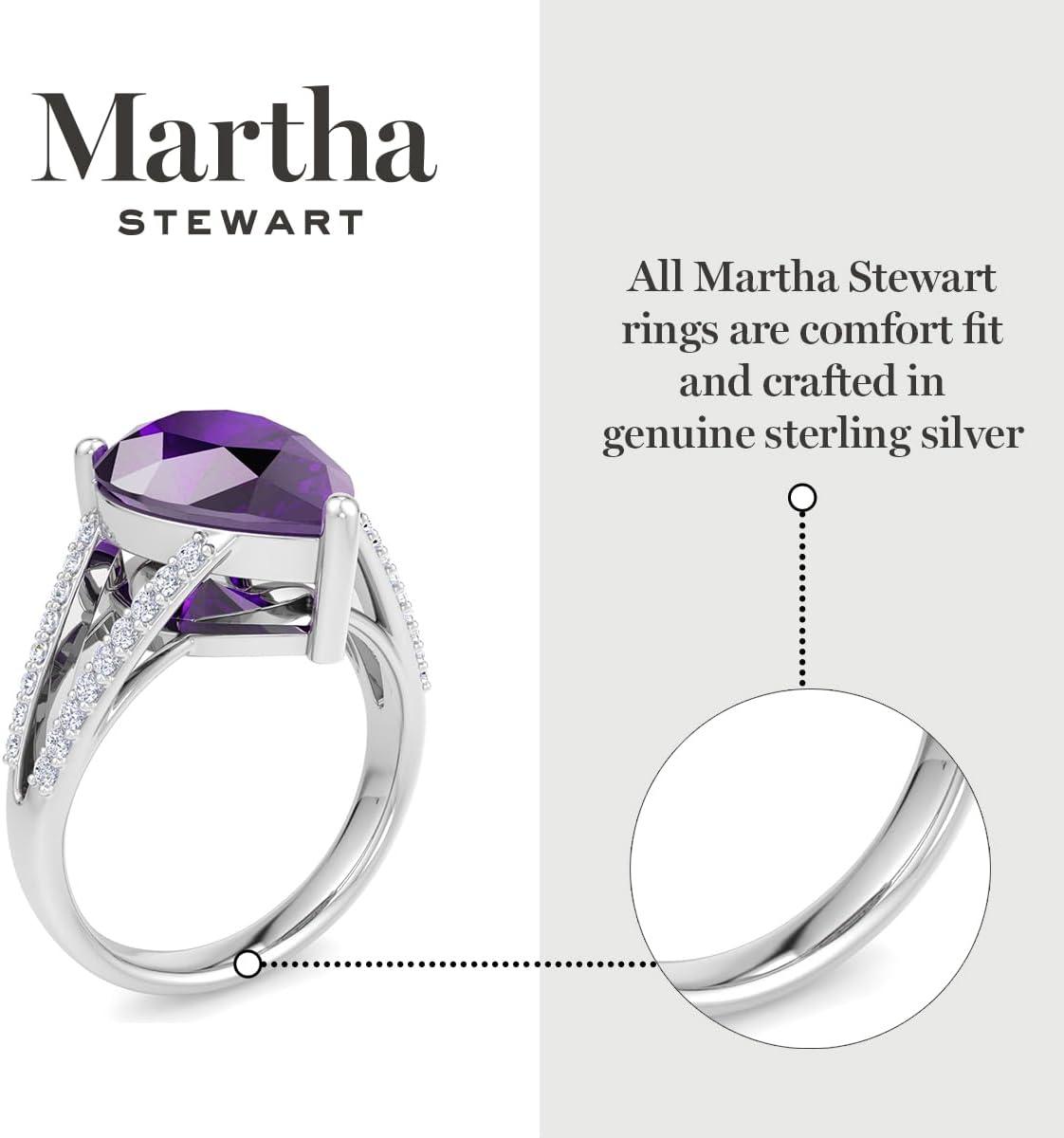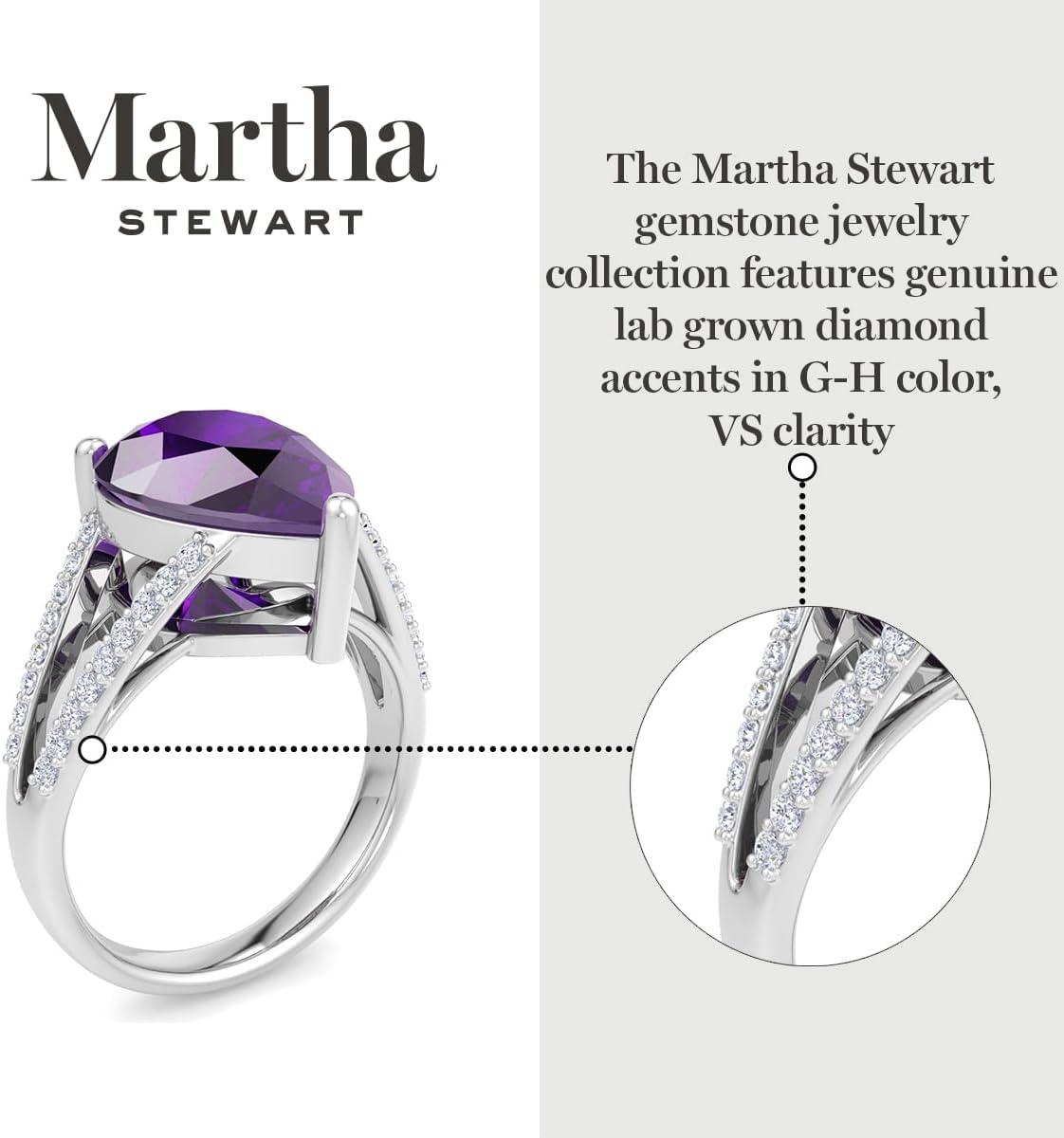 Martha Stewart 5 1/2 Carat Pear Shape Gemstone Ring with Lab Grown Diamonds in Sterling Silver, Choose Your Gemstone(Amethyst)