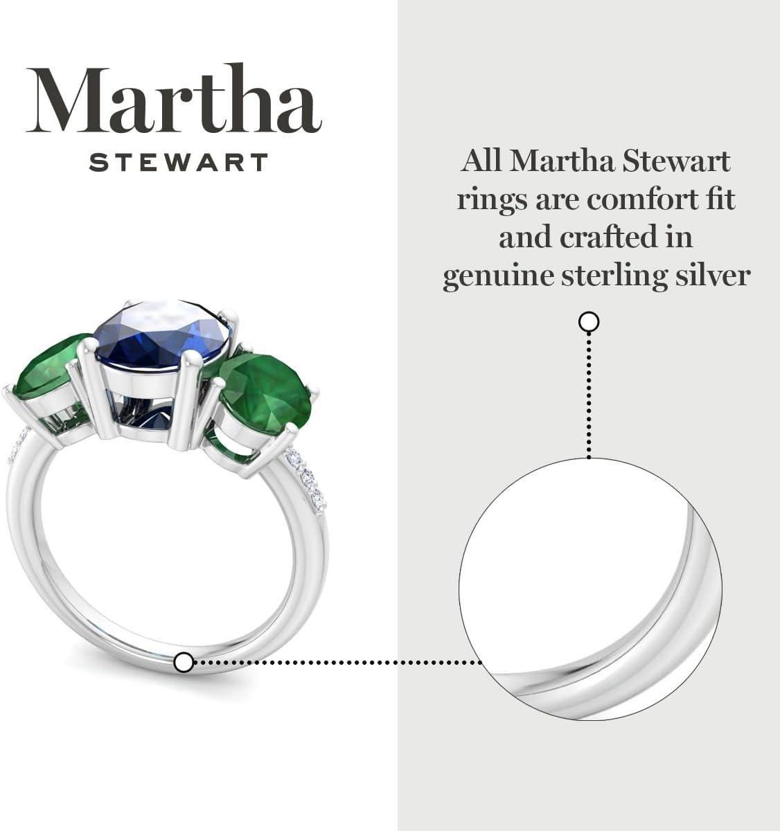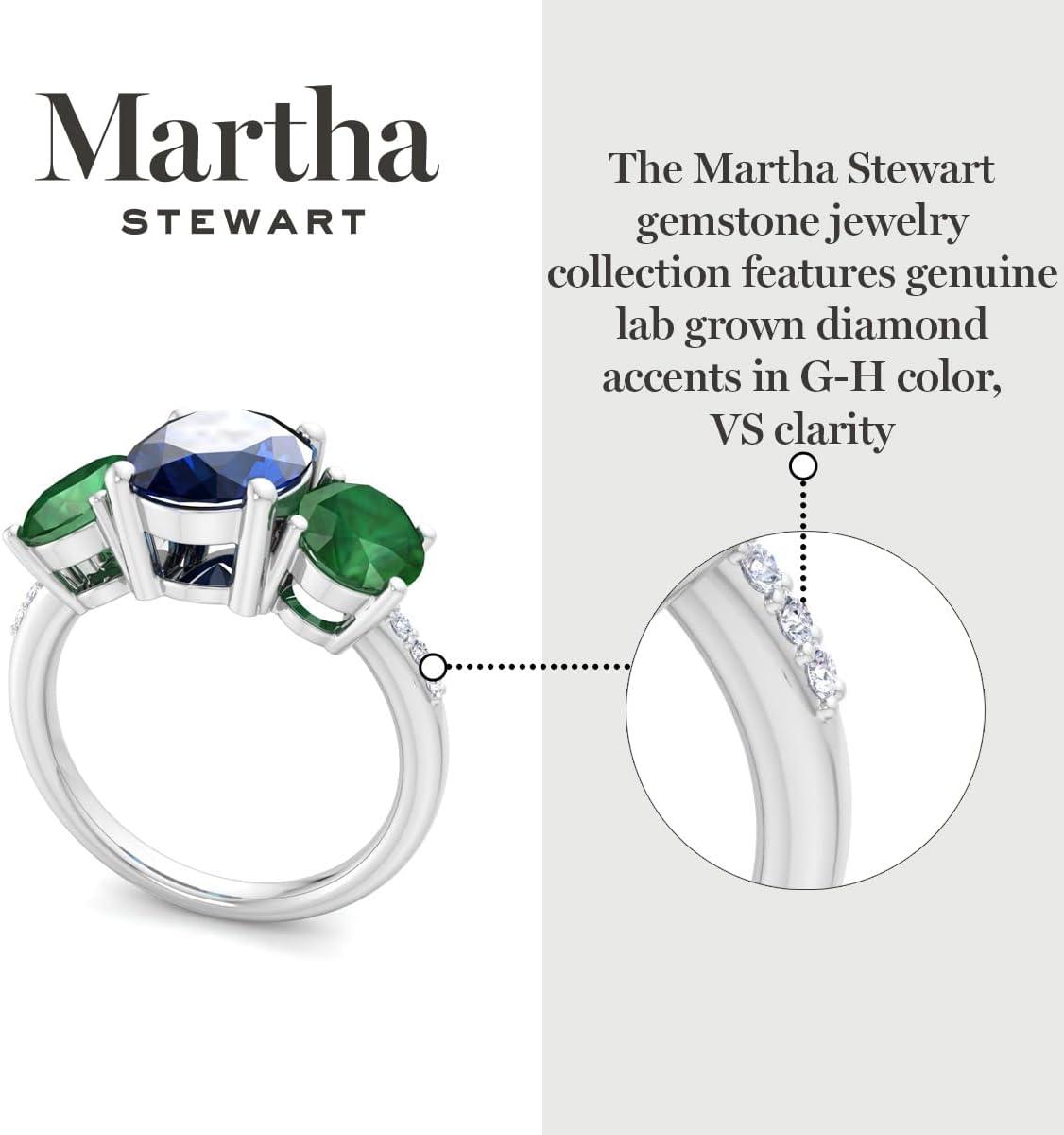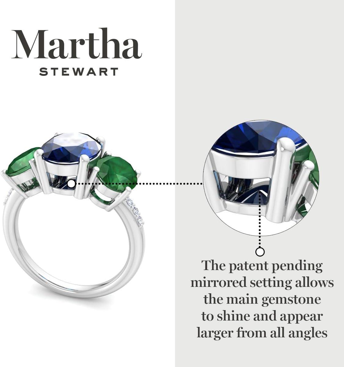 Martha Stewart 5 Carat Oval Shape Gemstone Three Stone Ring with Lab Grown Diamonds in Sterling Silver, Choose Your Gemstone(Option 10)