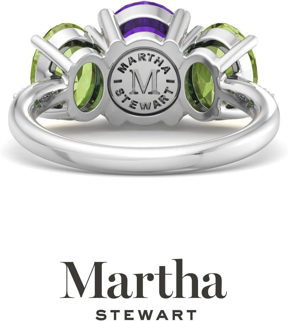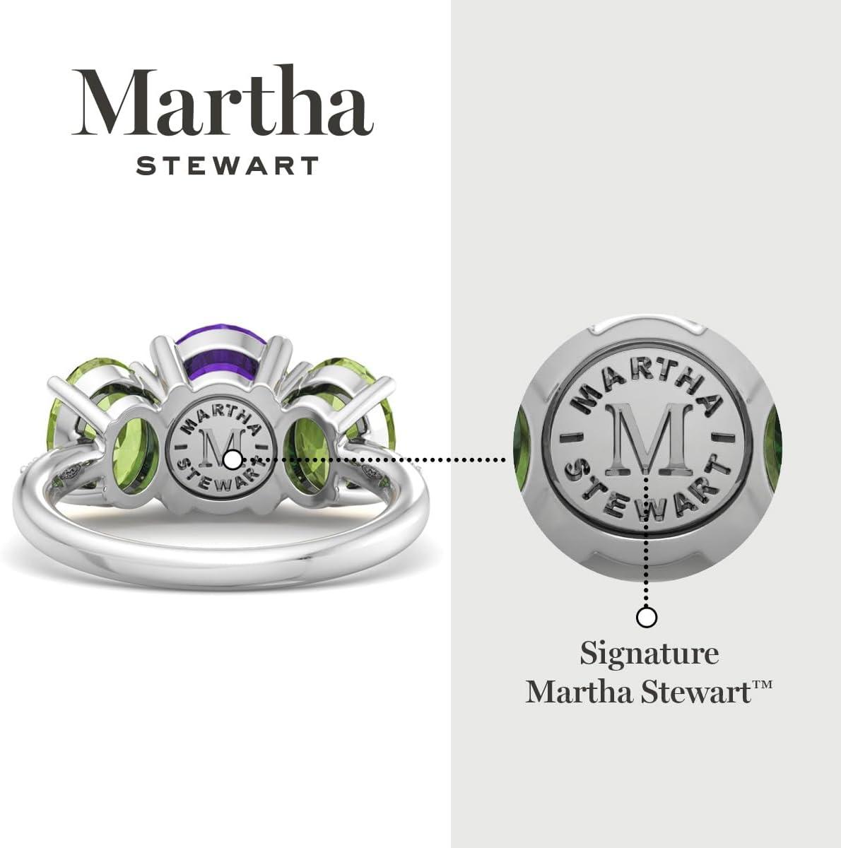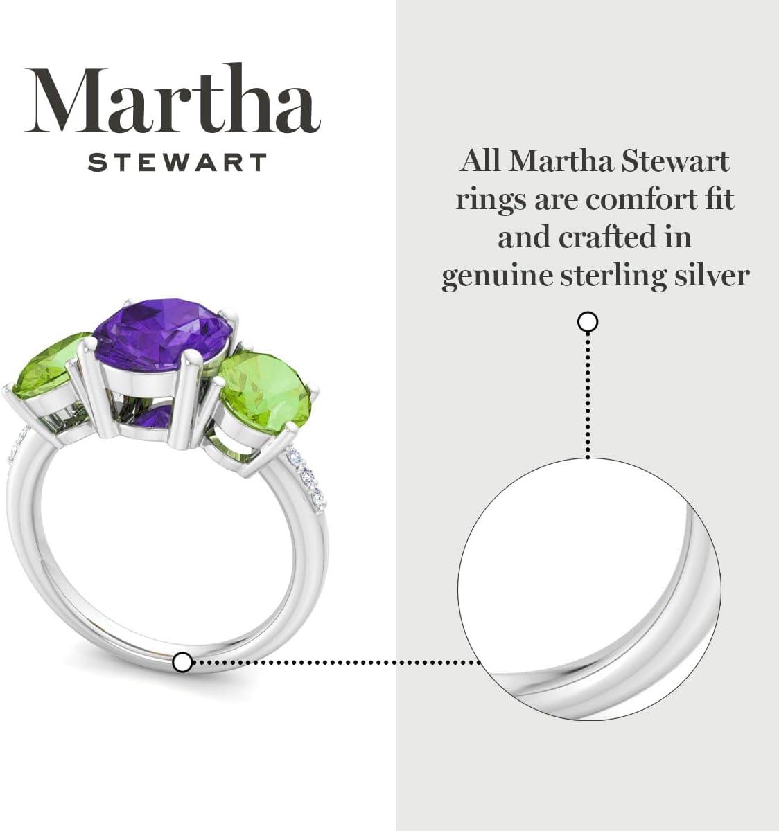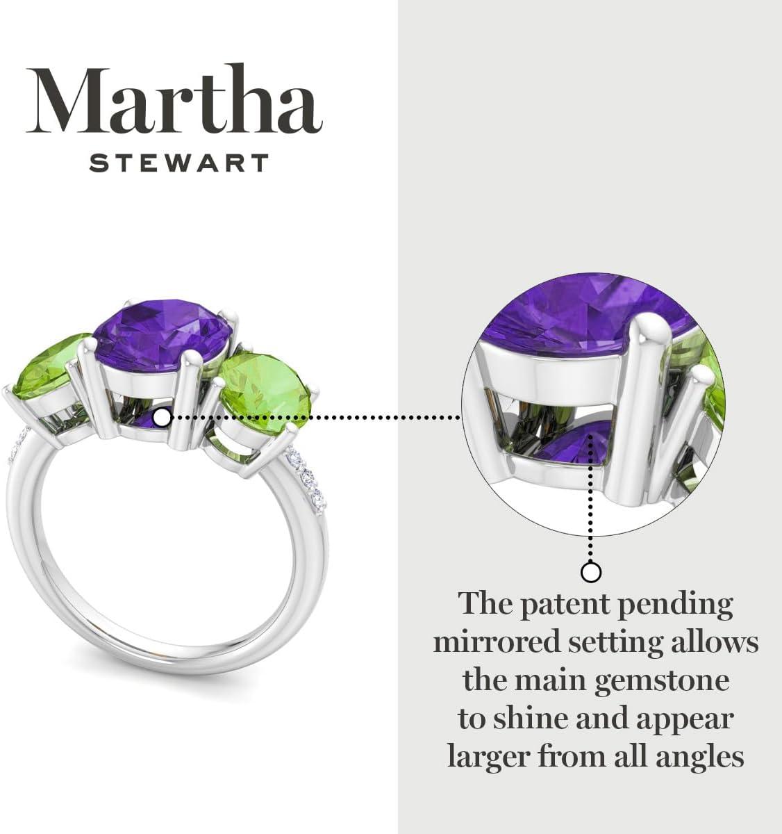 Martha Stewart 5 Carat Oval Shape Gemstone Three Stone Ring with Lab Grown Diamonds in Sterling Silver, Choose Your Gemstone(Option 2)
