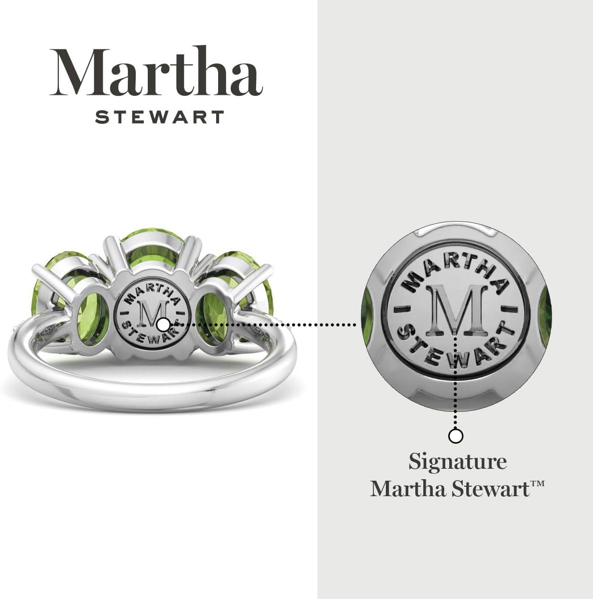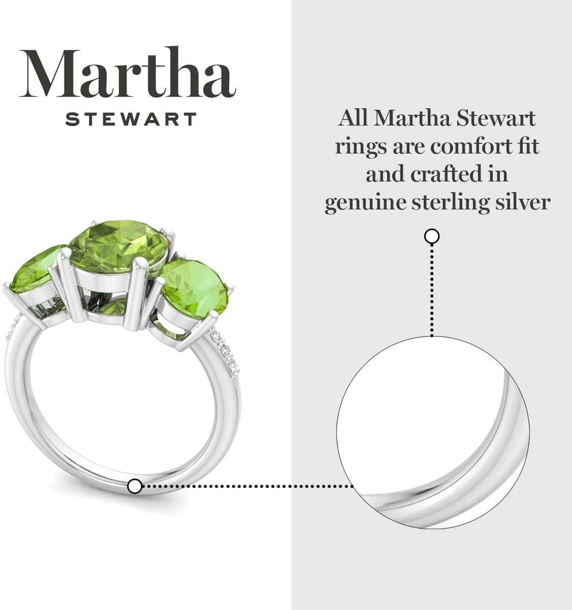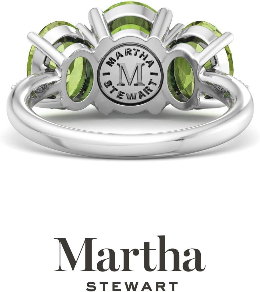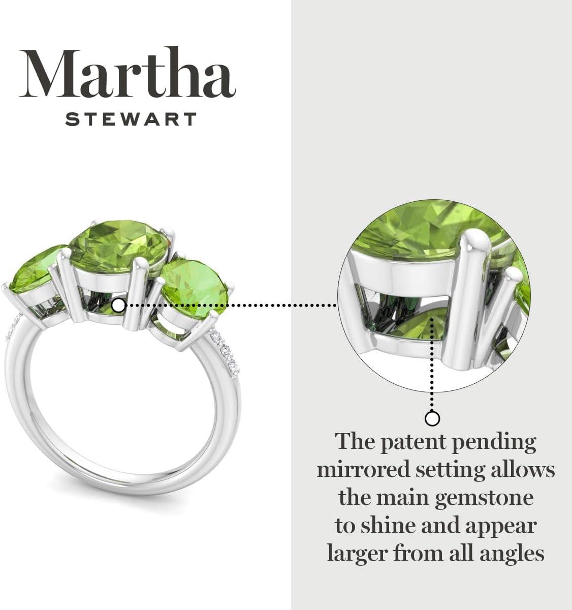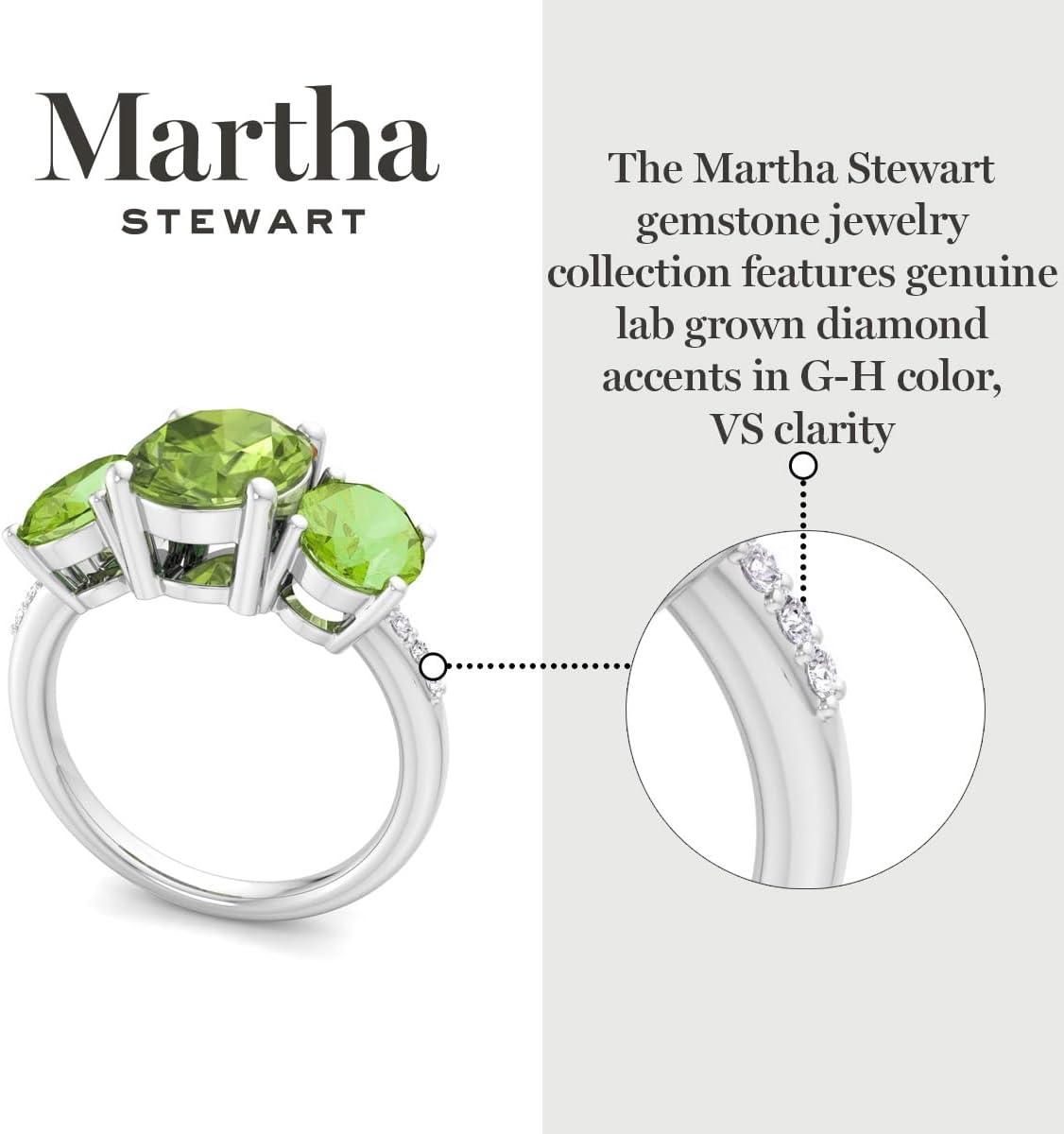 Martha Stewart 5 Carat Oval Shape Gemstone Three Stone Ring with Lab Grown Diamonds in Sterling Silver, Choose Your Gemstone(Option 5)
