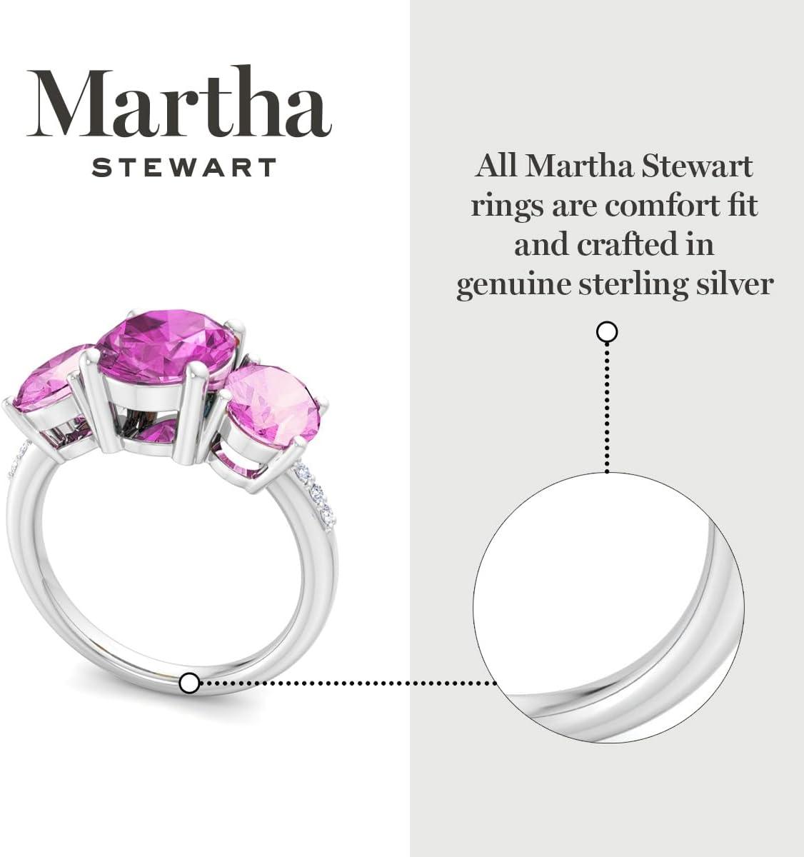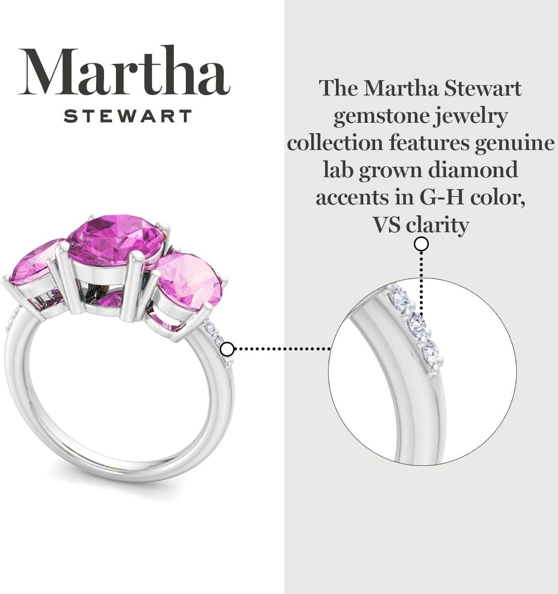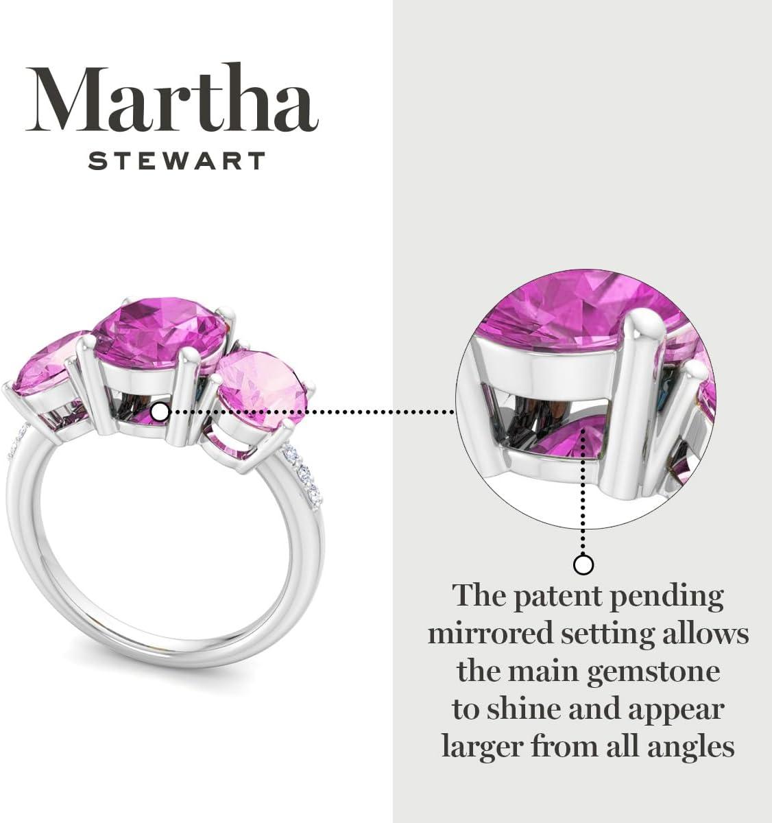 Martha Stewart 5 Carat Oval Shape Gemstone Three Stone Ring with Lab Grown Diamonds in Sterling Silver, Choose Your Gemstone(Option 6)