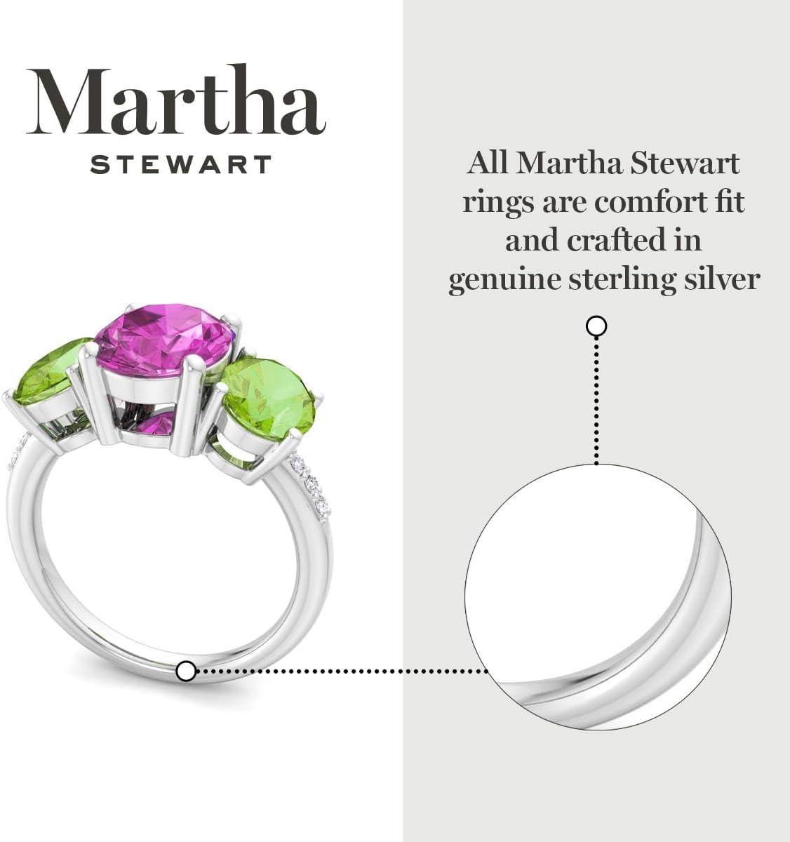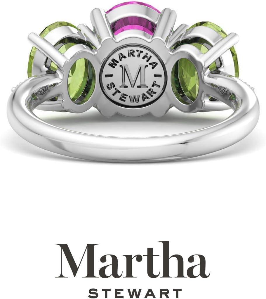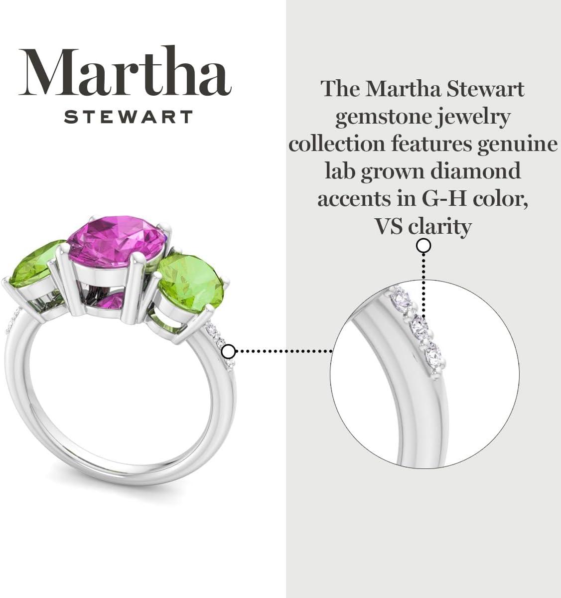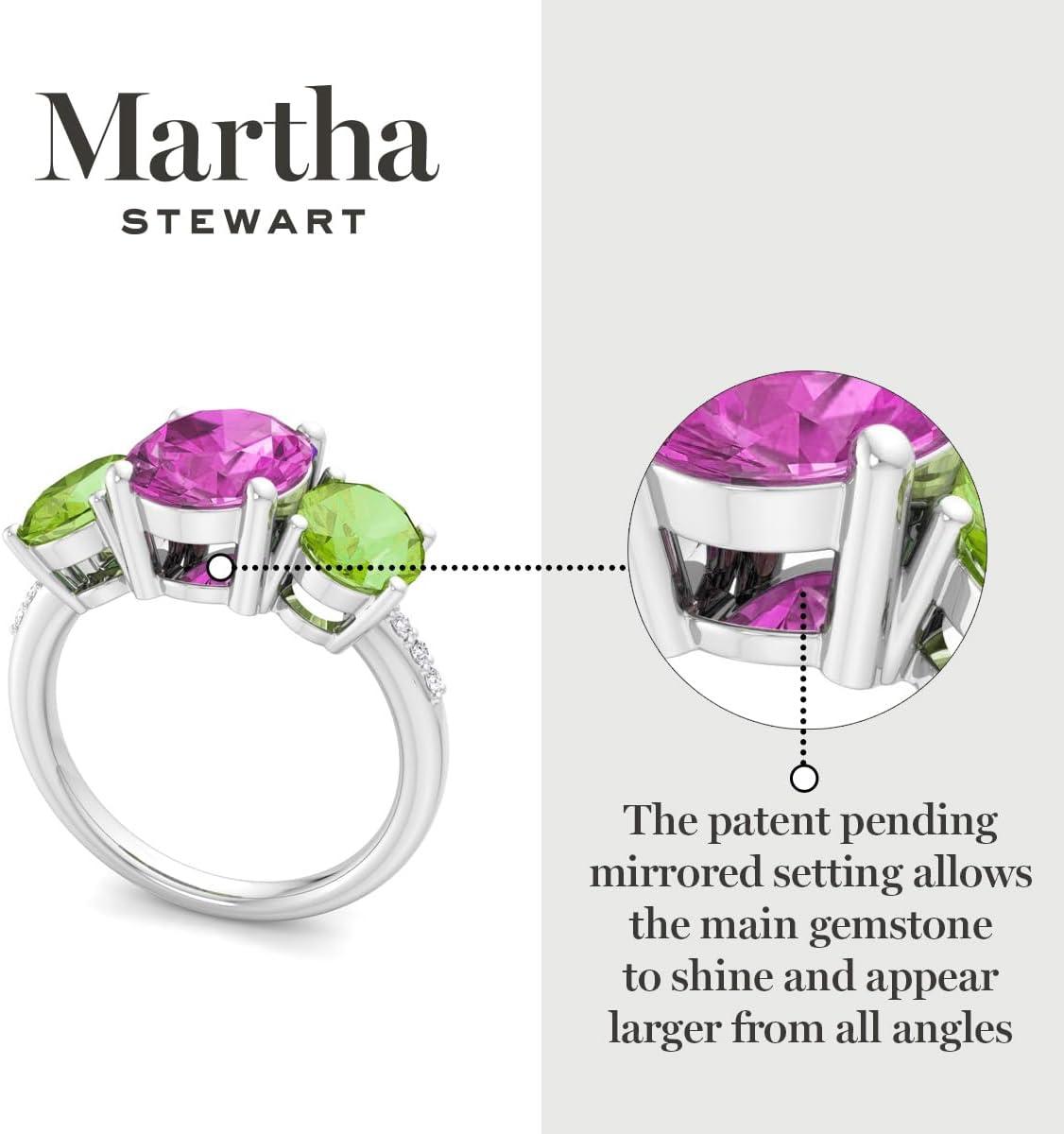 Martha Stewart 5 Carat Oval Shape Gemstone Three Stone Ring with Lab Grown Diamonds in Sterling Silver, Choose Your Gemstone(Option 7)