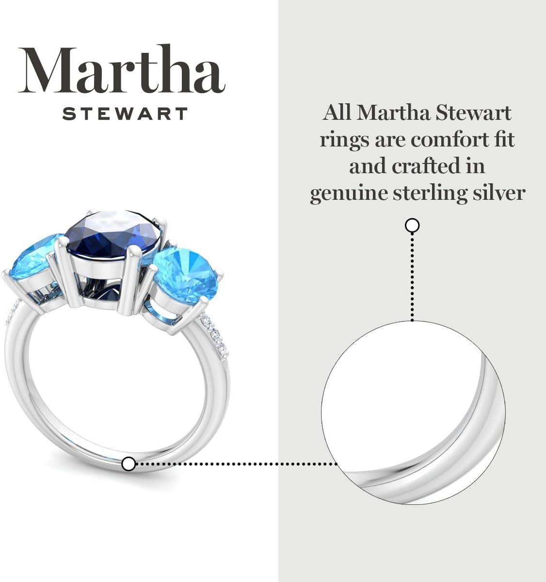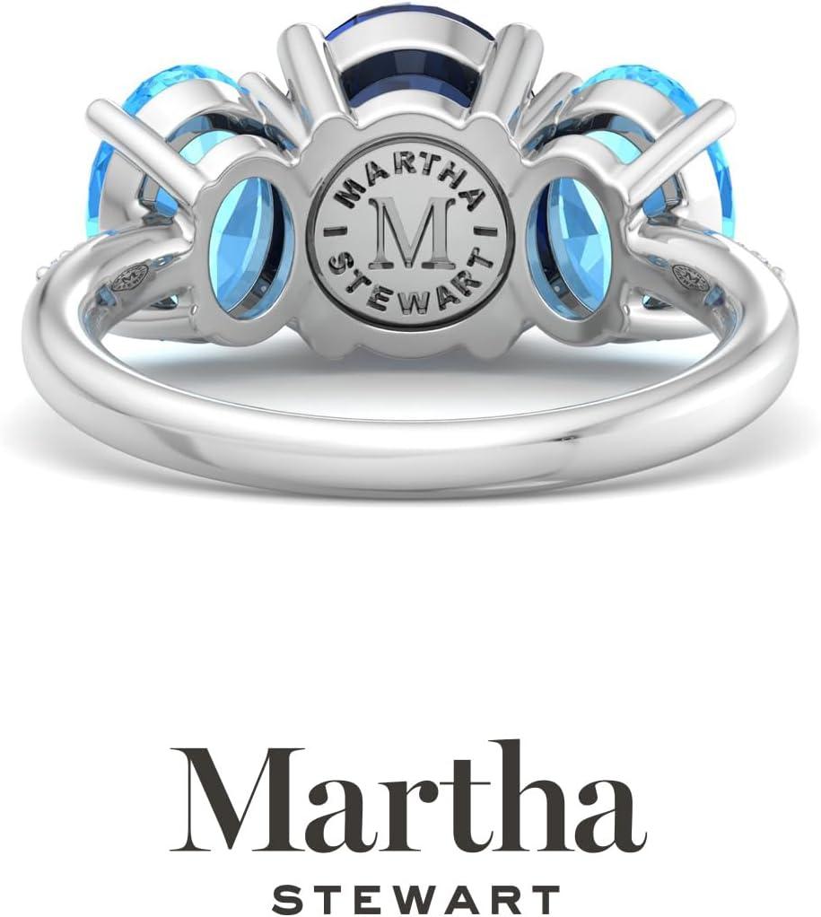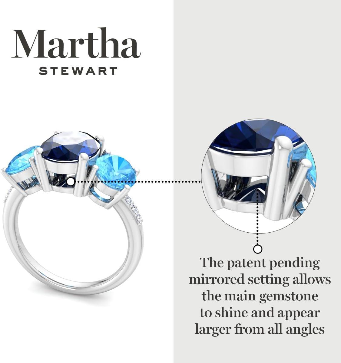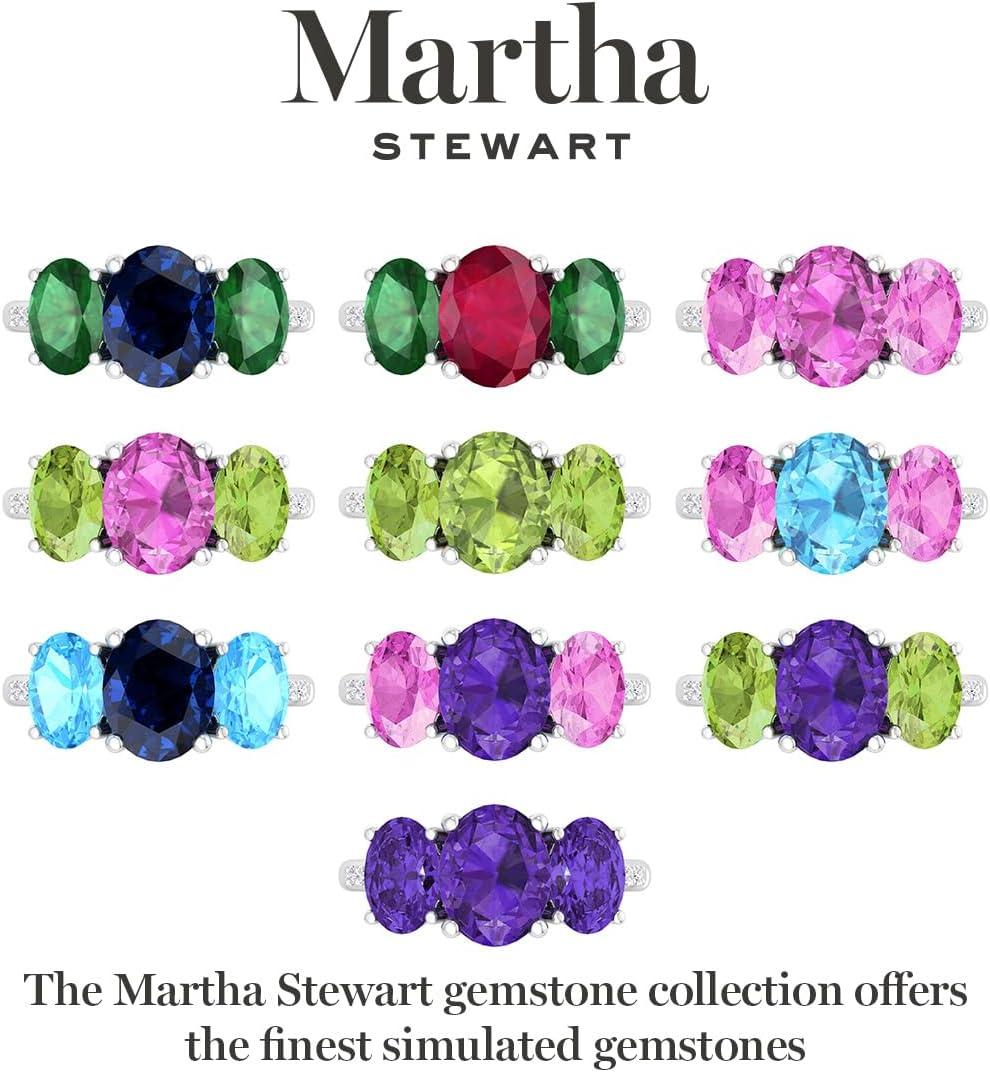 Martha Stewart 5 Carat Oval Shape Gemstone Three Stone Ring with Lab Grown Diamonds in Sterling Silver, Choose Your Gemstone(Option 9)