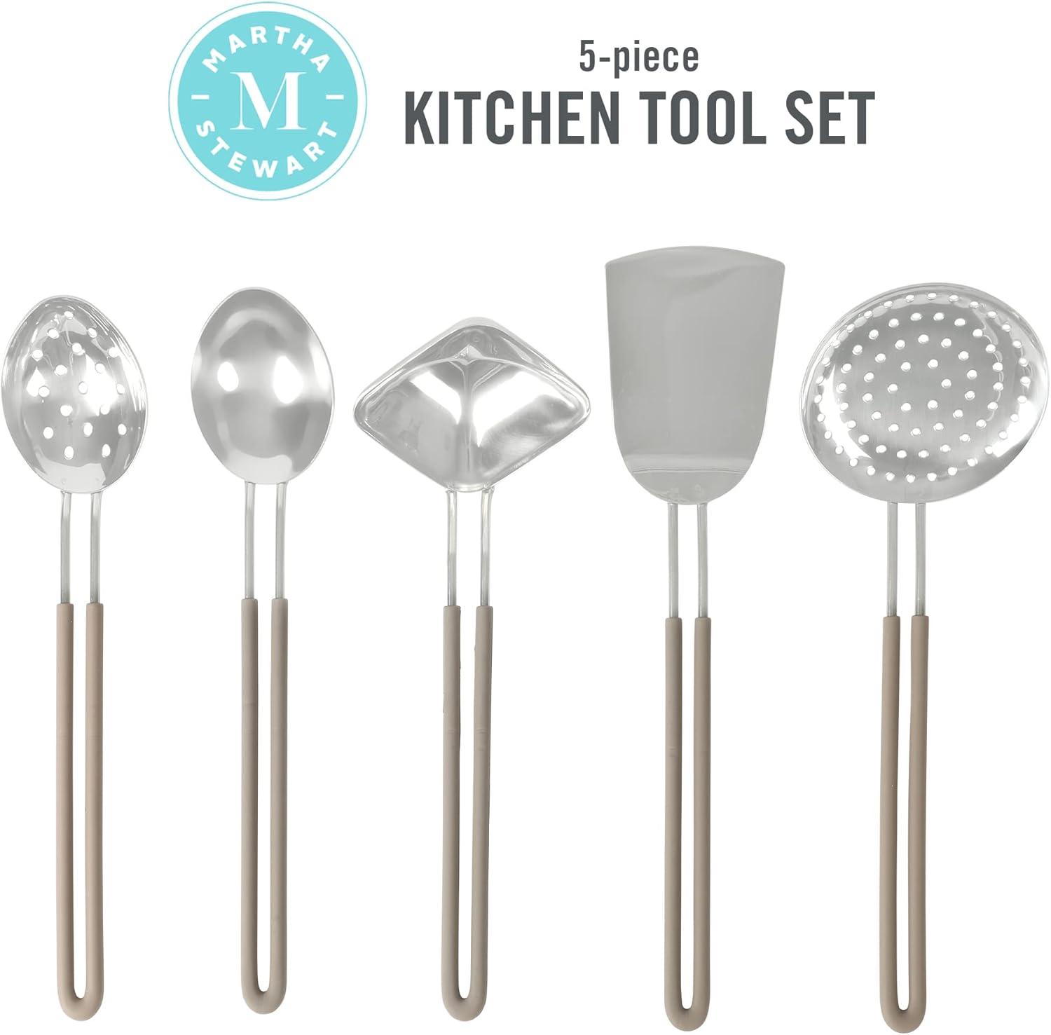 Martha Stewart 5 Piece Sprucedale Stainless Steel Kitchen Tools and Gadget Set – Dishwasher Safe