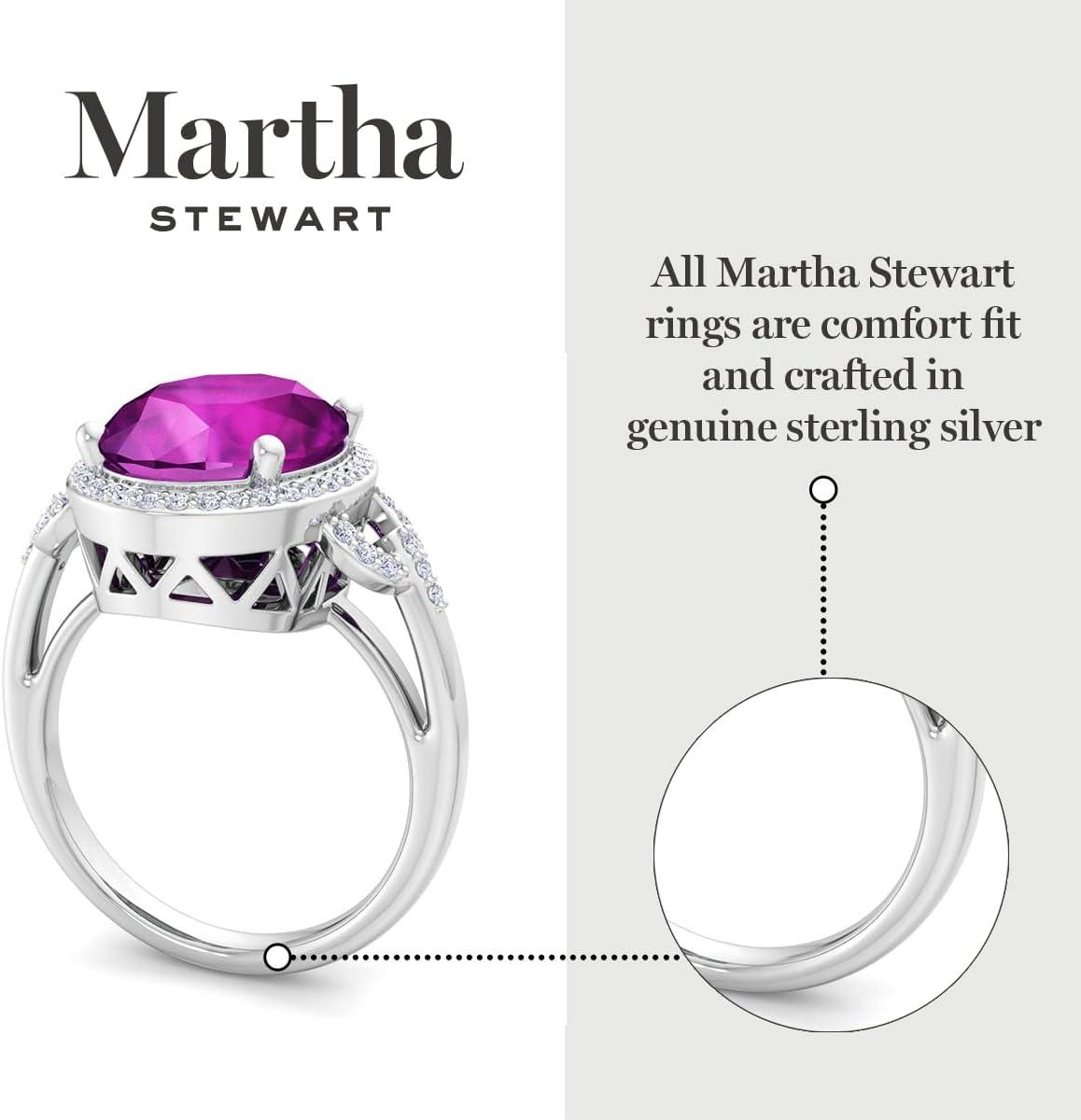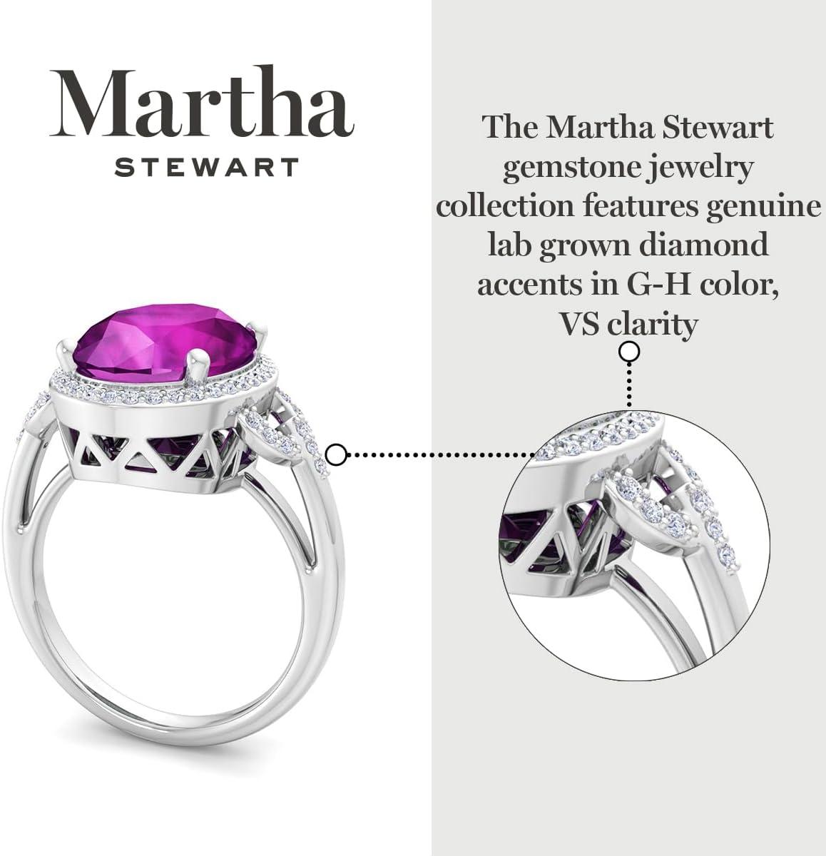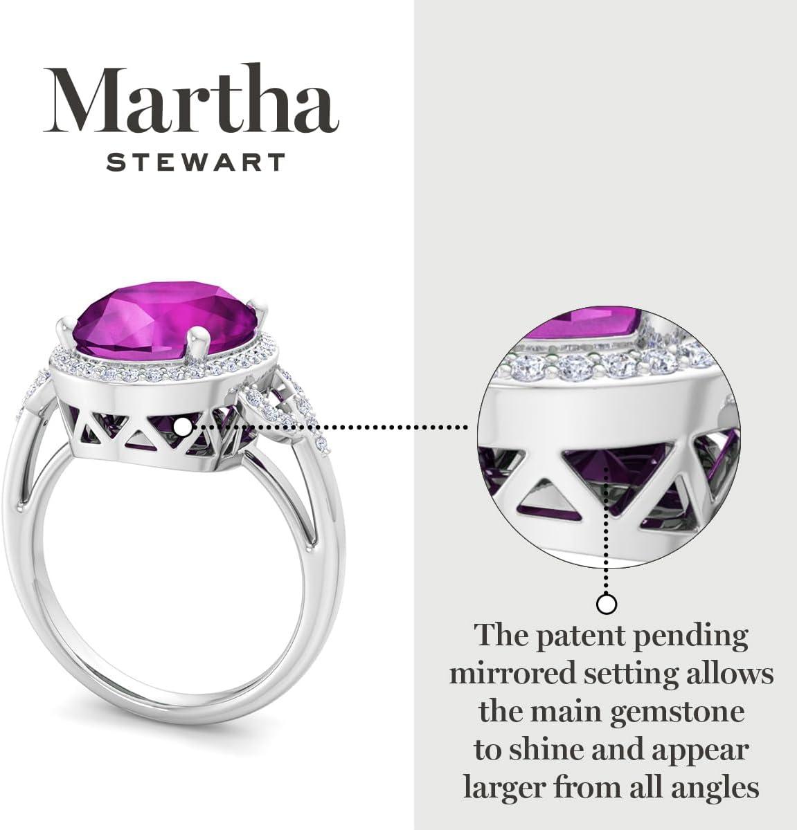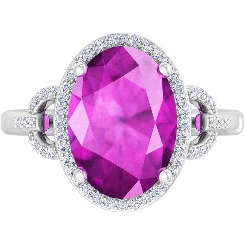 Martha Stewart 6 3/4 Carat Oval Shape Gemstone Halo Ring with Lab Grown Diamonds in Sterling Silver, Choose Your Gemstone(Pink Sapphire)