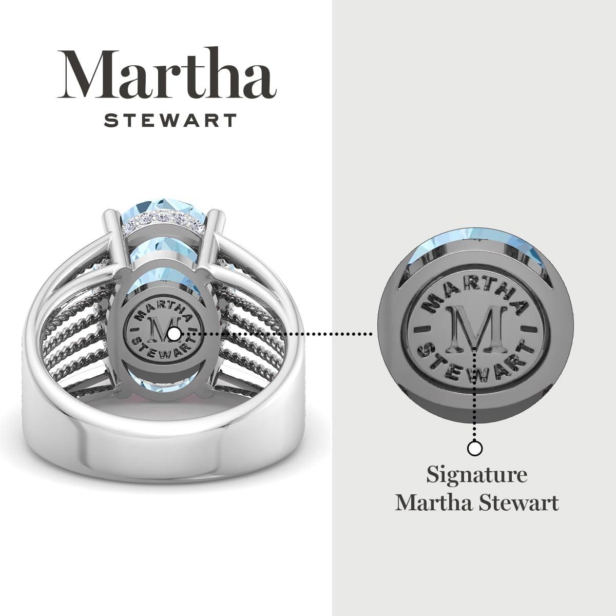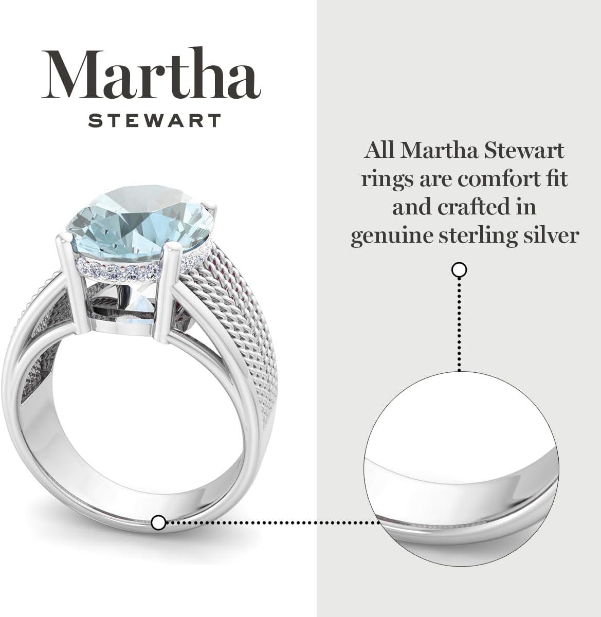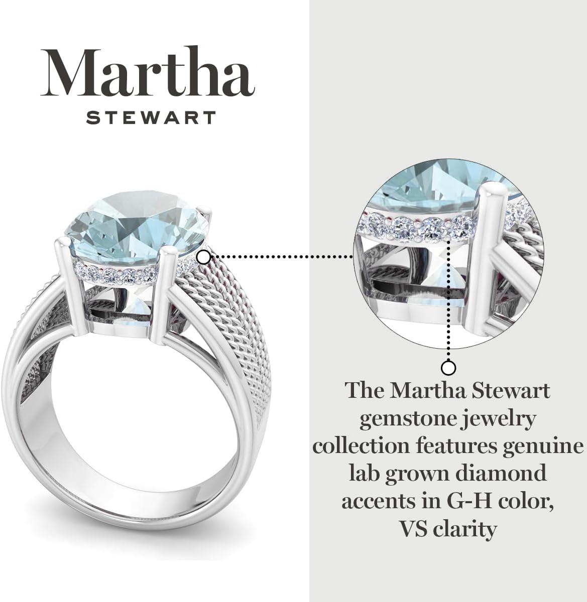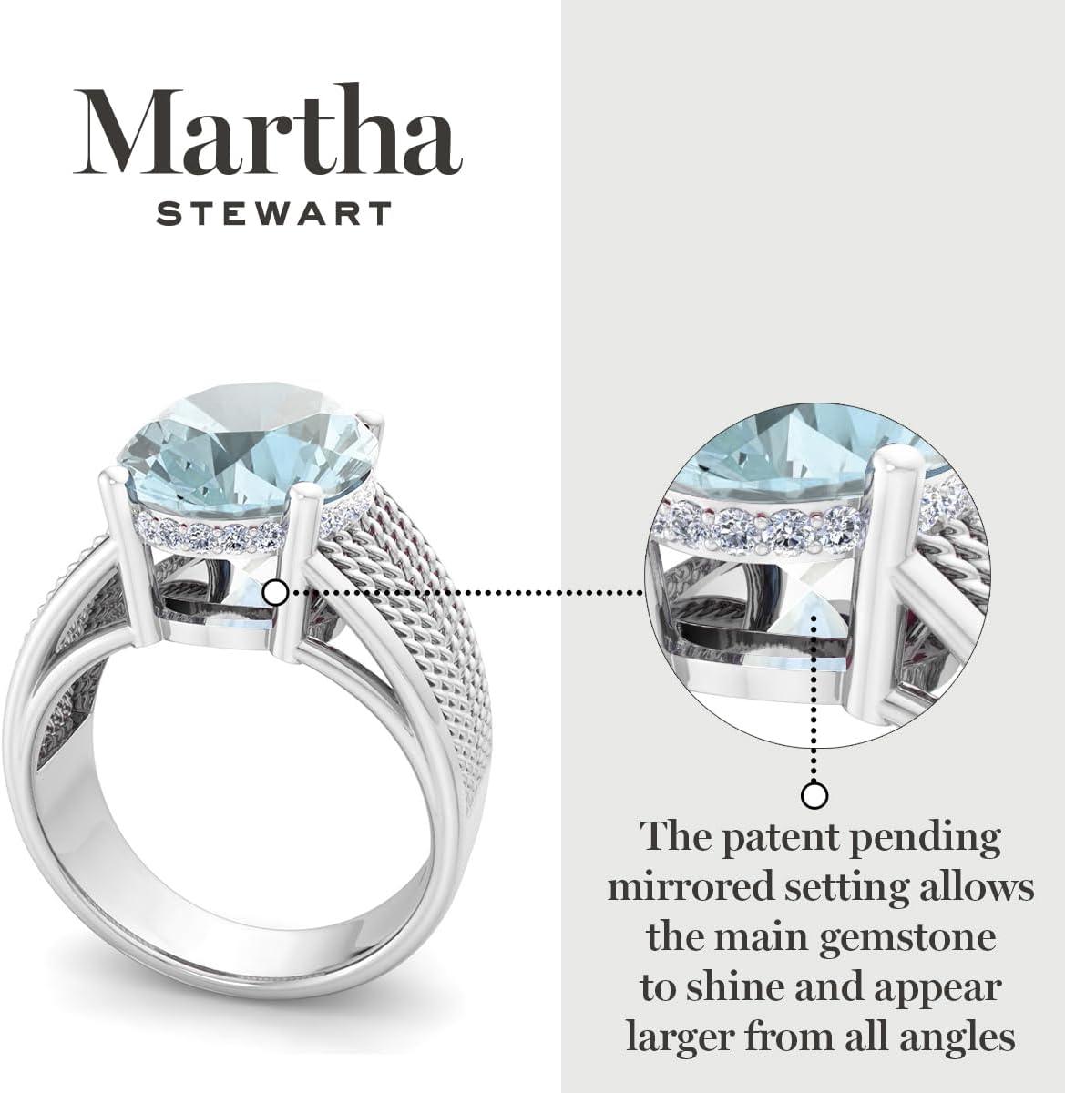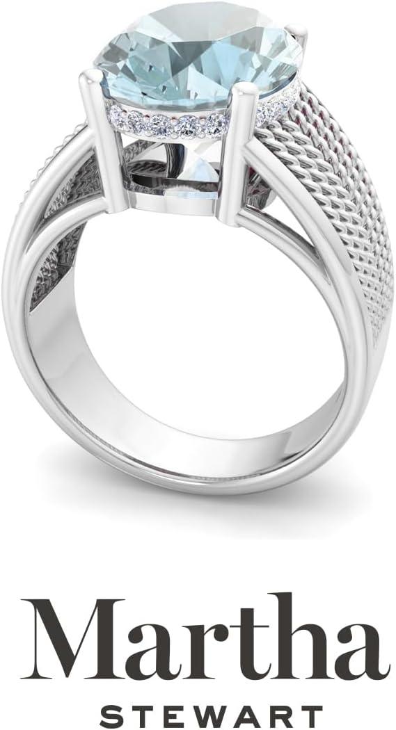 Martha Stewart 6 3/4 Carat Oval Shape Gemstone Hidden Halo Ring with Lab Grown Diamonds in Sterling Silver, Choose Your Gemstone(Aquamarine)