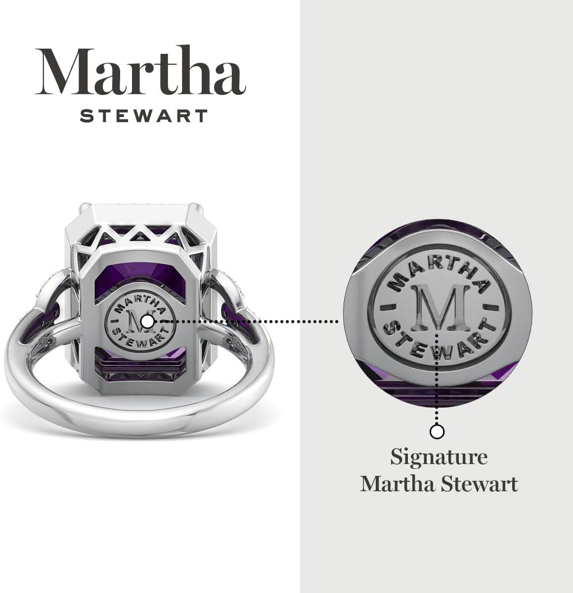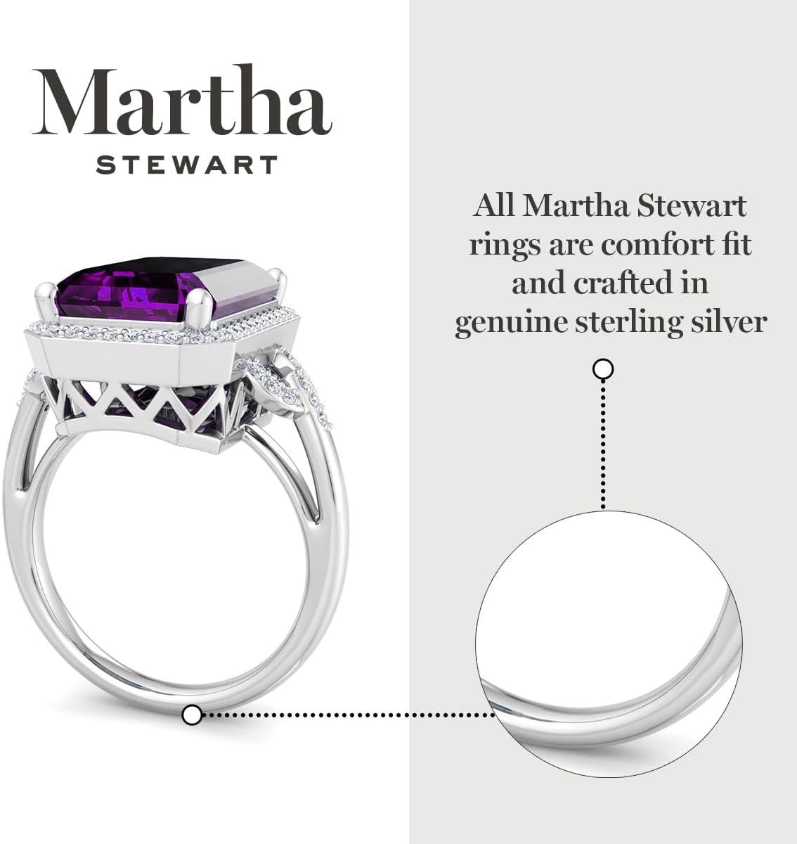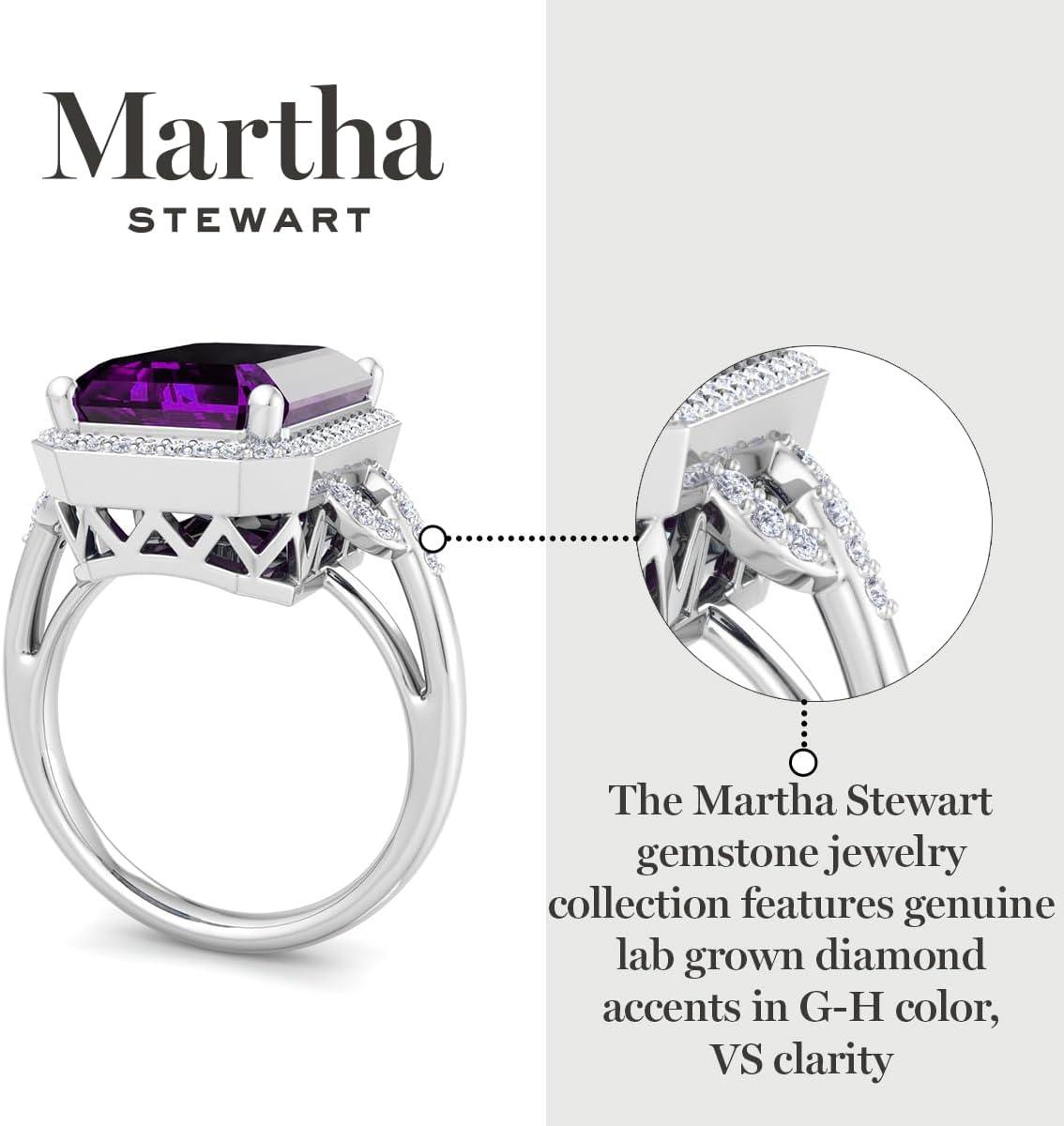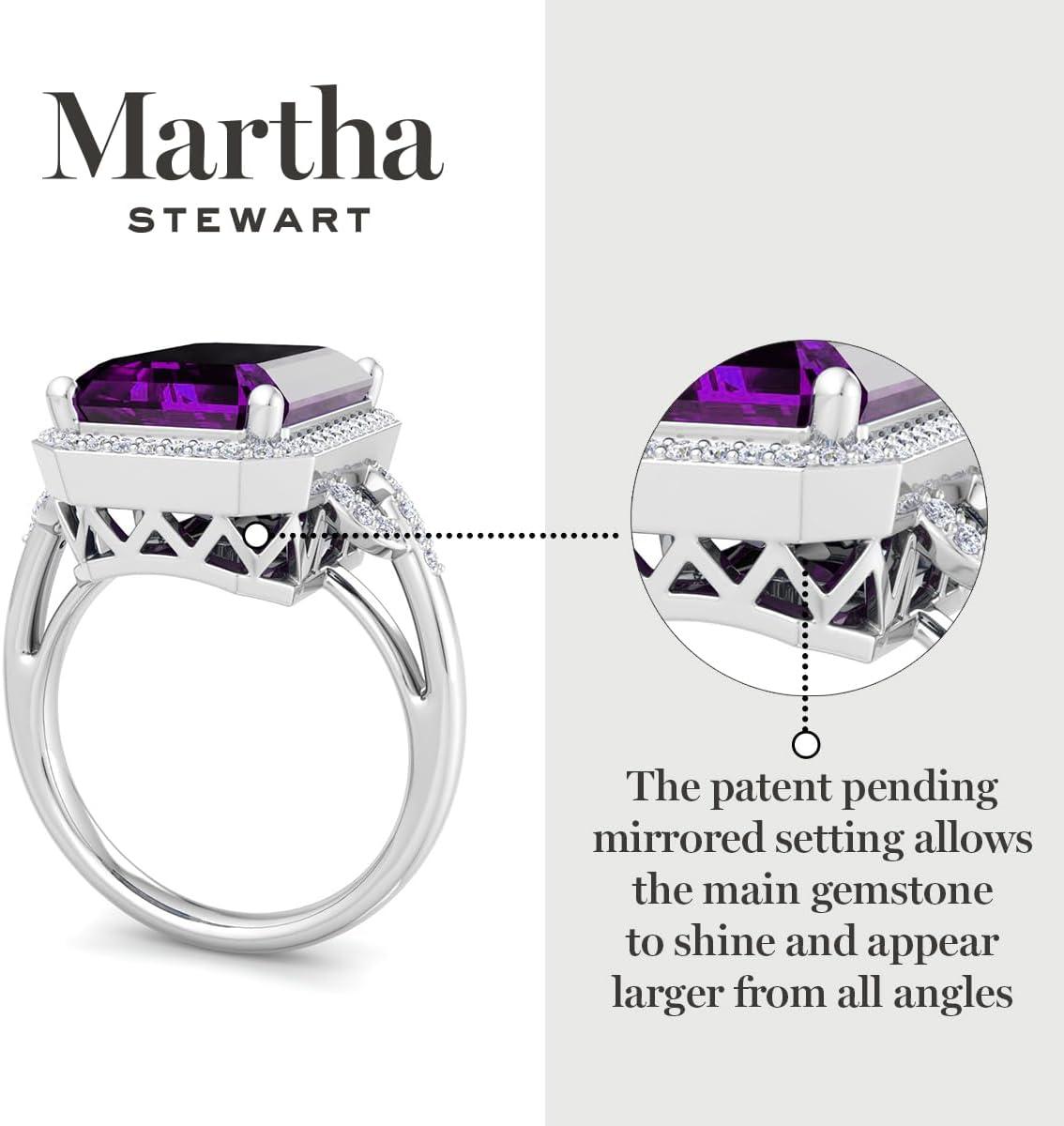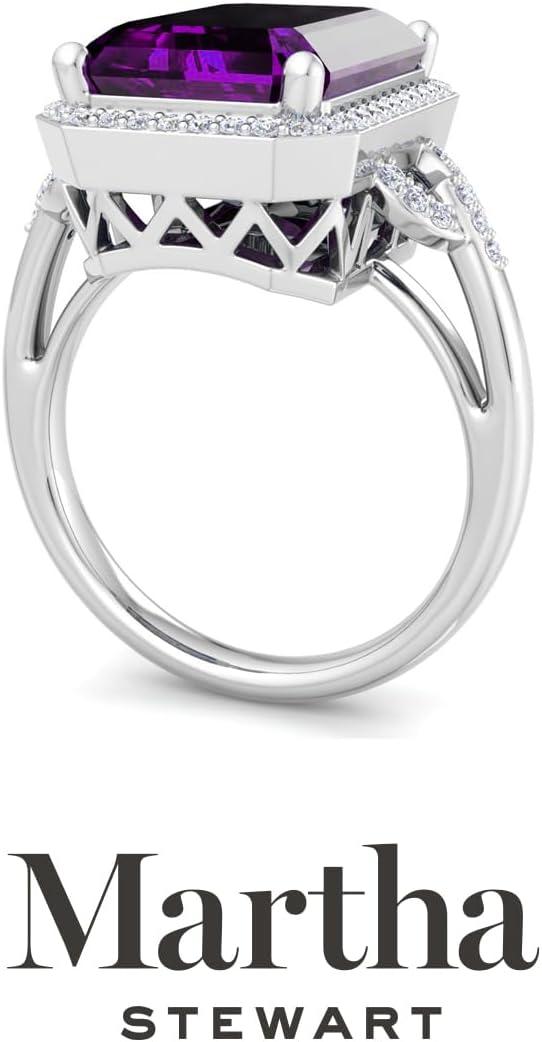 Martha Stewart 7 1/3 Carat Emerald Cut Gemstone Halo Ring with Lab Grown Diamonds in Sterling Silver, Choose Your Gemstone(Amethyst)