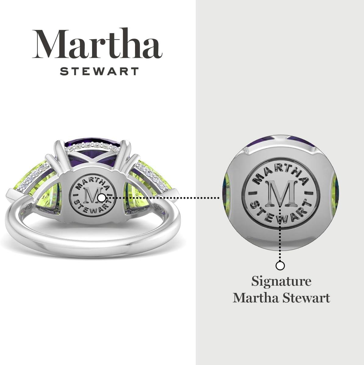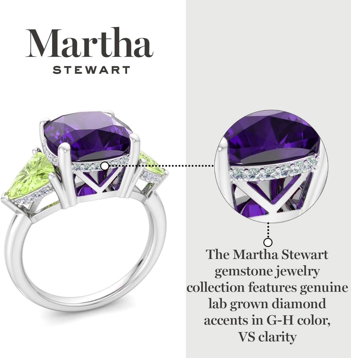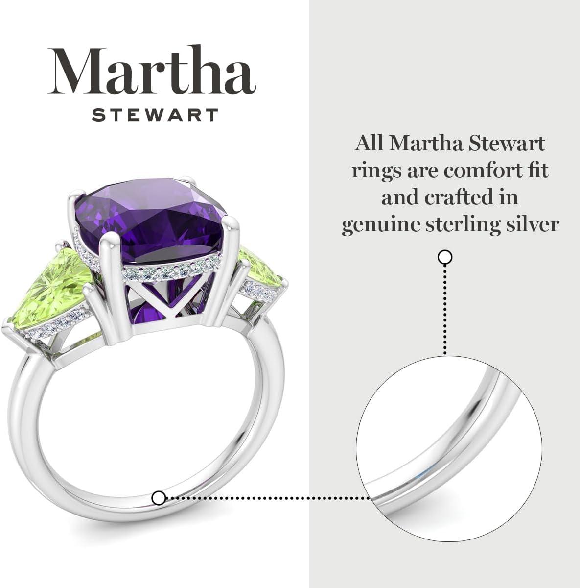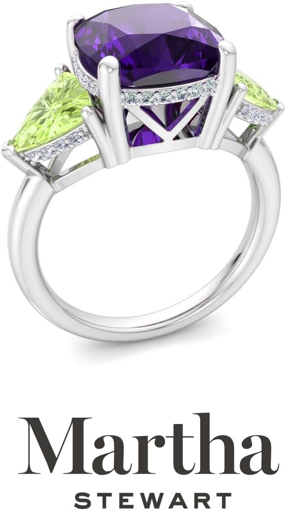 Martha Stewart 8 Carat Cushion Cut Gemstone Three Stone Ring with Lab Grown Diamonds in Sterling Silver, Choose Your Gemstone(Option 2)