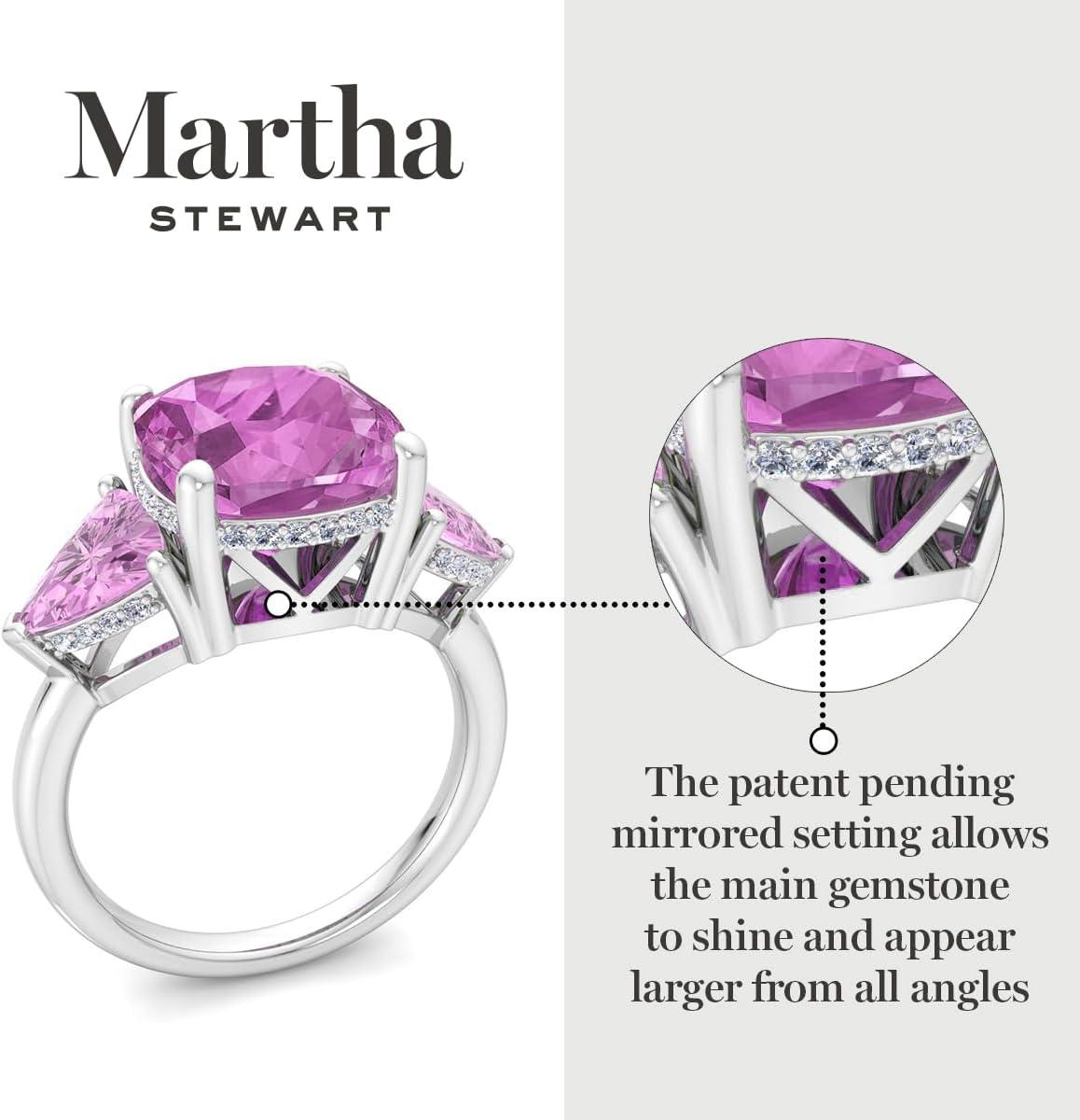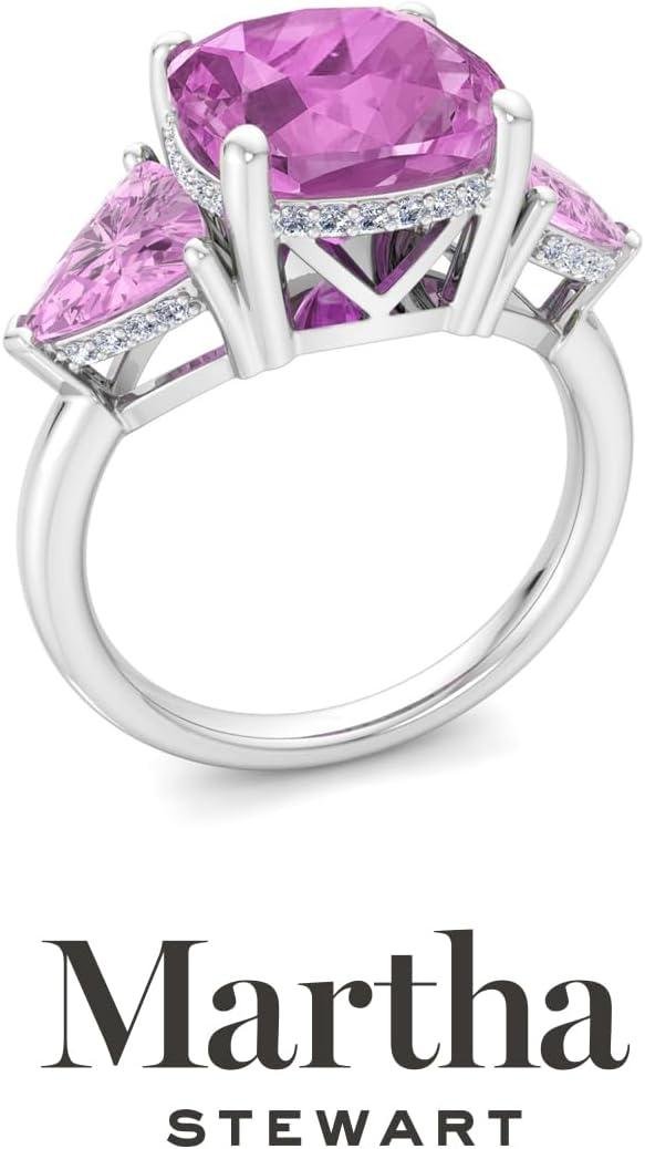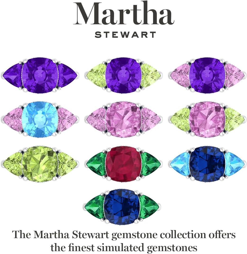 Martha Stewart 8 Carat Cushion Cut Gemstone Three Stone Ring with Lab Grown Diamonds in Sterling Silver, Choose Your Gemstone(Option 7)