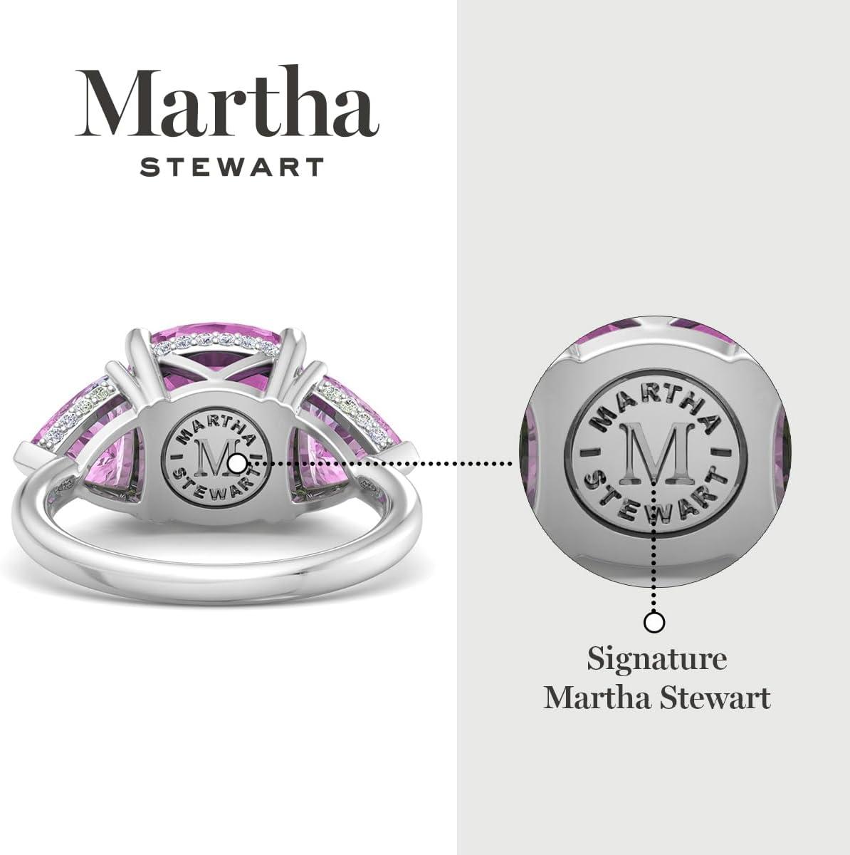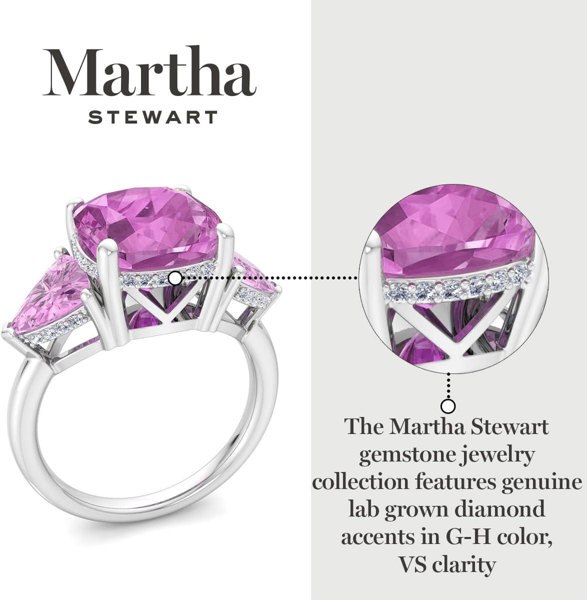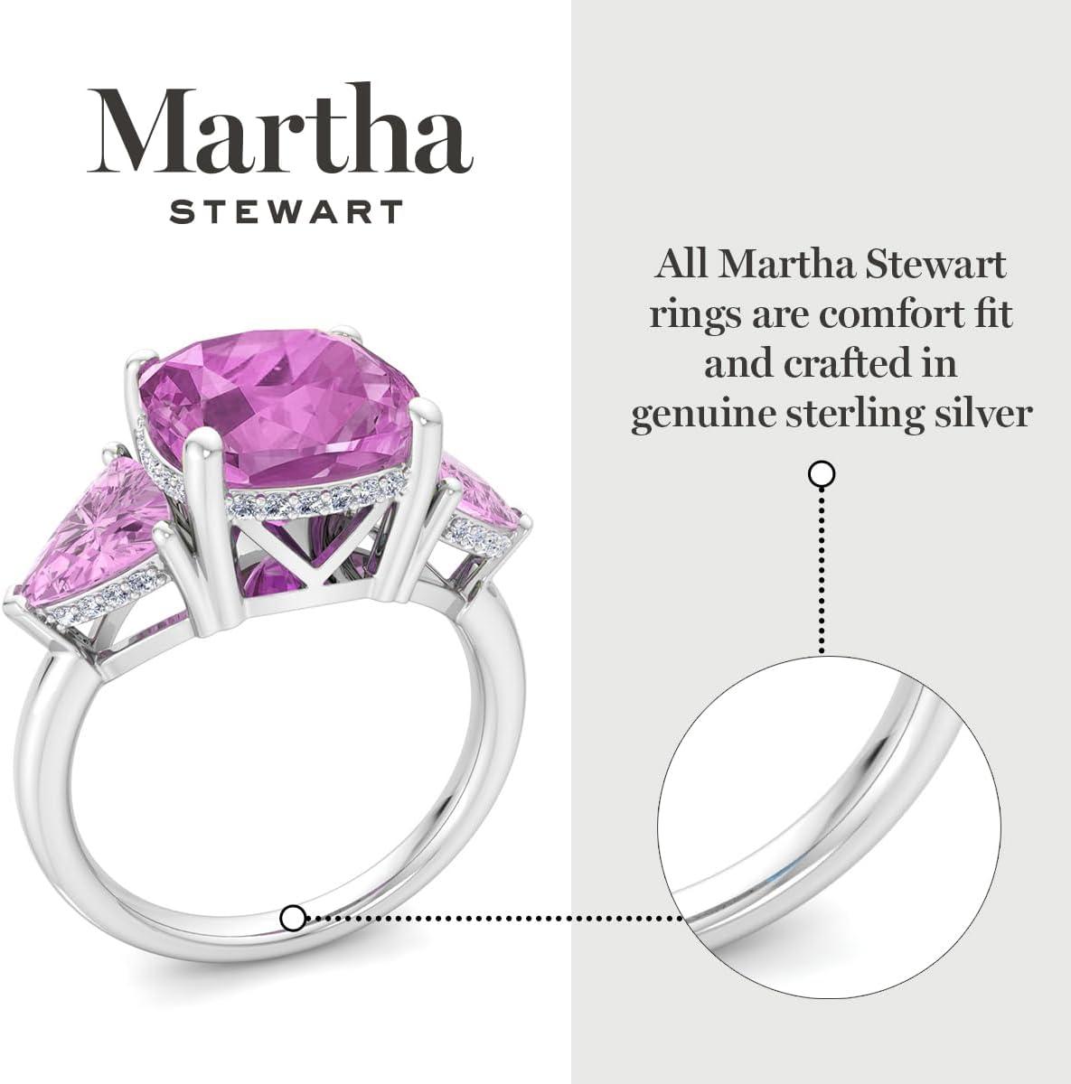 Martha Stewart 8 Carat Cushion Cut Gemstone Three Stone Ring with Lab Grown Diamonds in Sterling Silver, Choose Your Gemstone(Option 7)