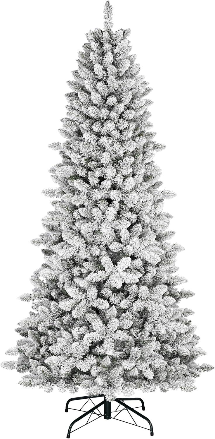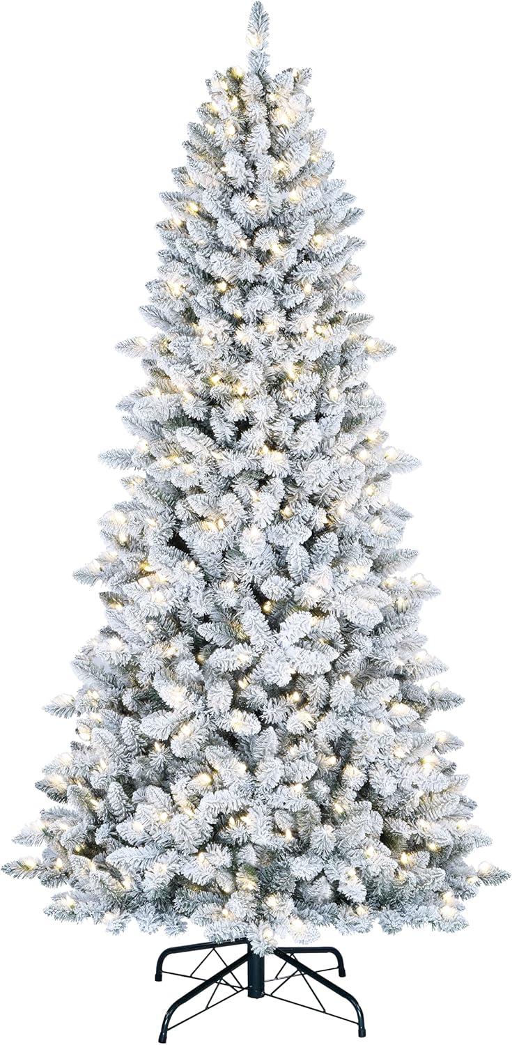 Designed by Martha Stewart exclusively for Amazon, this pre-lit natural looking Acadia Spruce Flocked Christmas tree measures 5 feet tall by 3 feet 2 inches wide, and includes a 17.5 inch wide stable metal base. Constructed with a look and feel that’s strikingly true-to-nature, this tree comes out of the box needing very little shaping thanks to our Memory Wire Branches. With a 1,240 tip-count, the flocked, snowy branches are a blend of both PE and PVC for a full and fluffy fresh-cut-tree look. Our hinged branches are permanently affixed as opposed to dated and tedious individually attached branches found on most artificial trees. Vertical internal branches and a garland-wrapped pole make for minimal gaps and spaces, and the secure, self-centering one-screw-stand makes for easy set up. Skip right to the fun of hanging your ornaments! The tree comes prestrung with 200 clear LED lights to create a festive glow that remains lit even if a bulb is removed or broken. No more hunting for one light that shuts the whole tree down! This tree turns off and on easily with a discreet inline foot pedal, and our patented “power in the pole” Instant Power Technology means that only one plug is needed to send power from the wall all the way through the tree- no messy extension cords! This tree is a must-have for the holiday season!