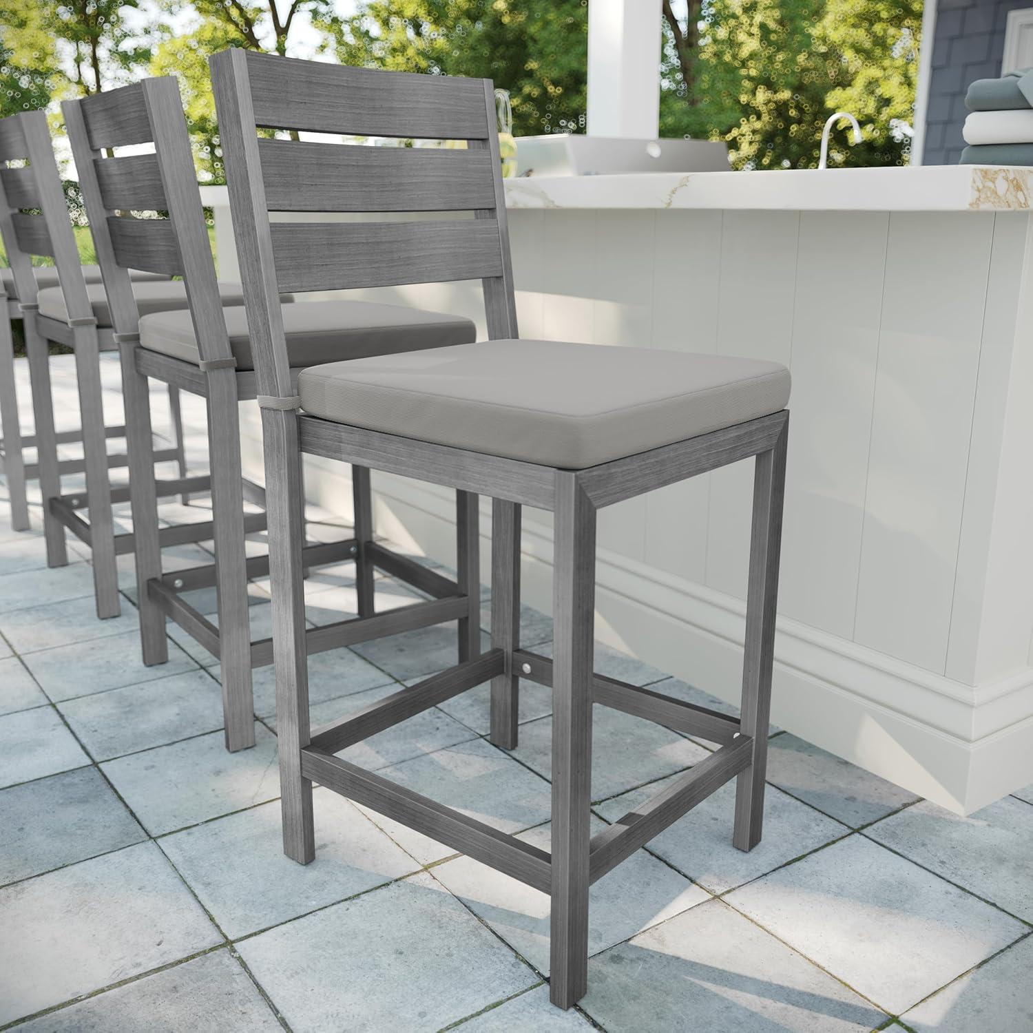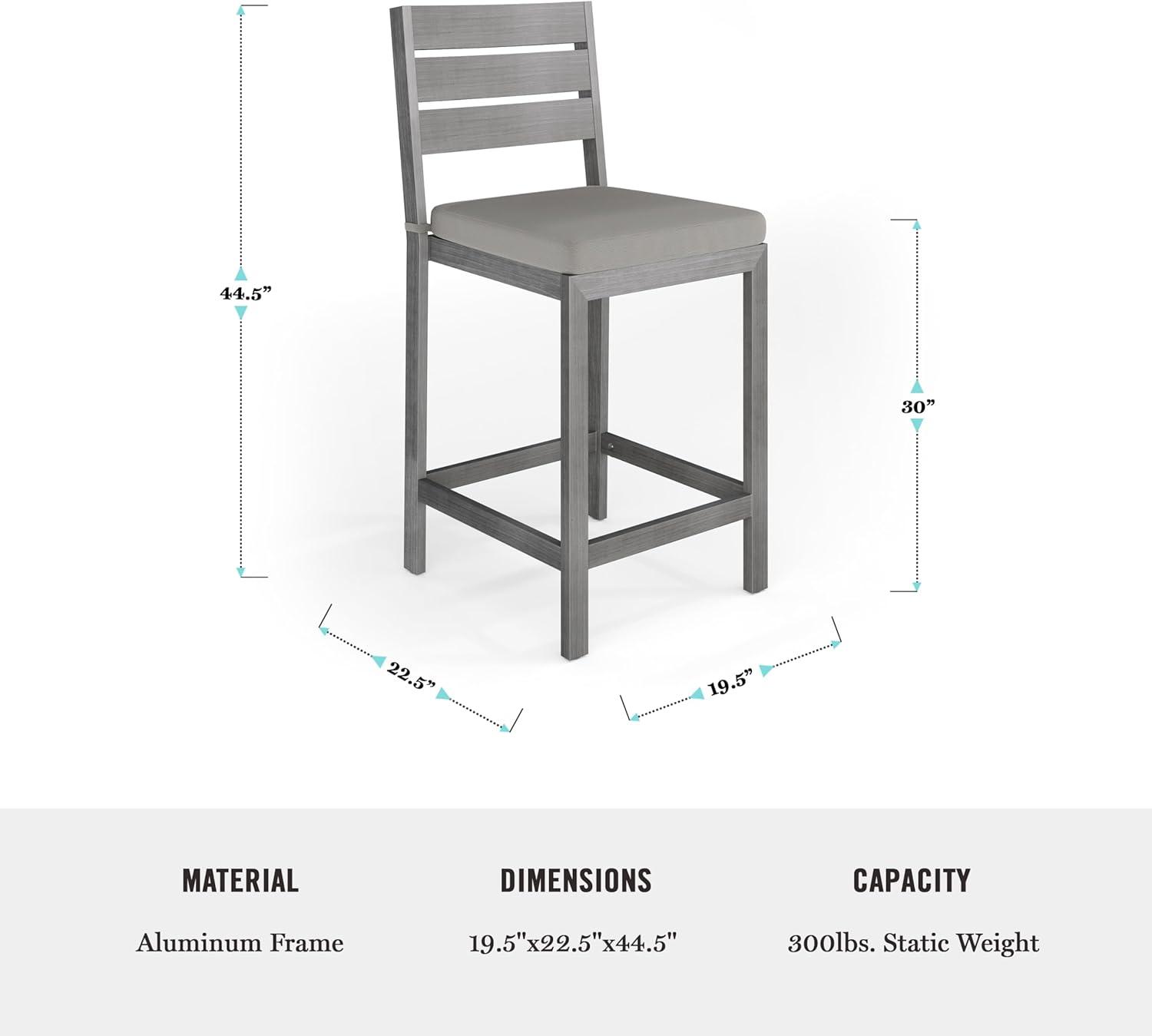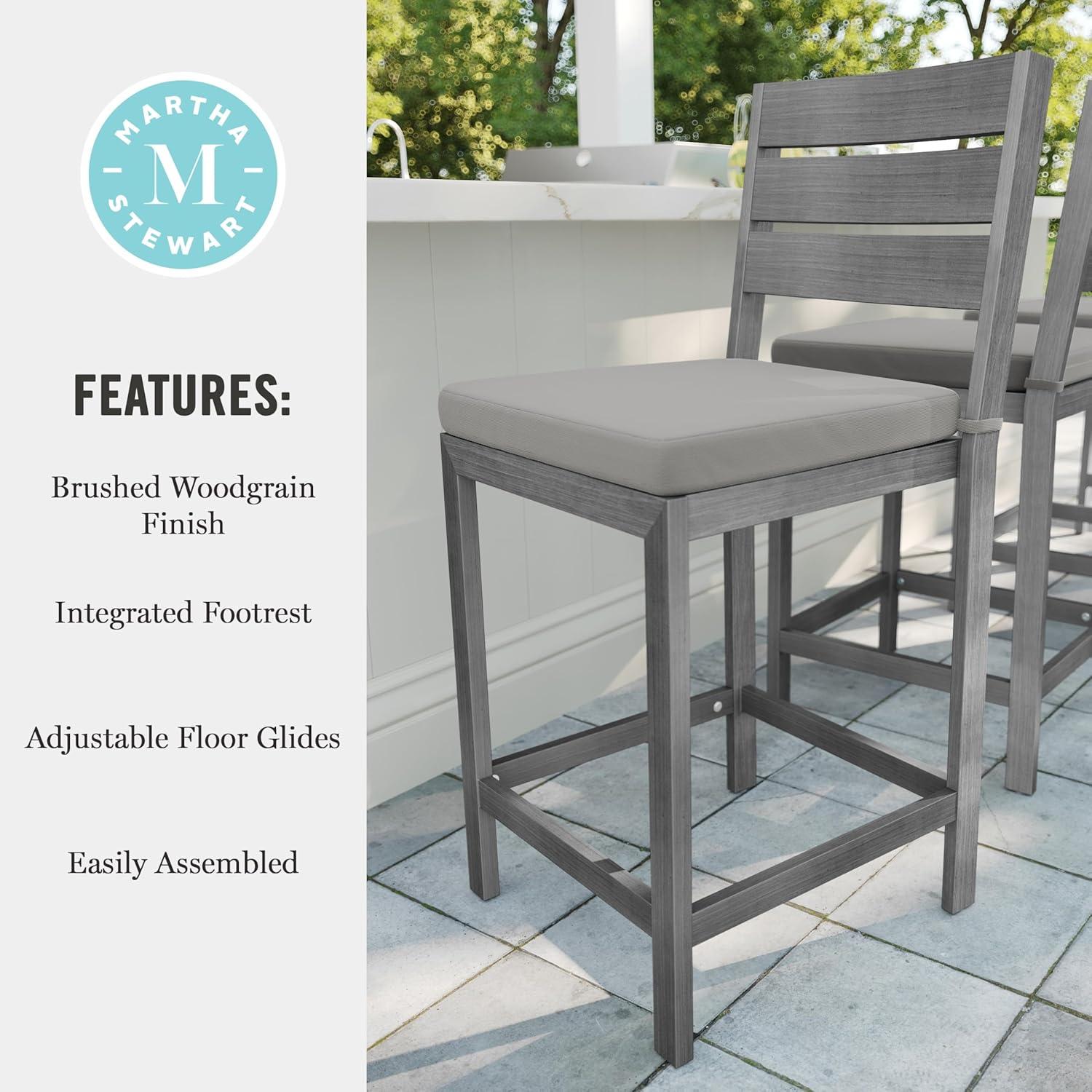 Martha Stewart Bedford Indoor-Outdoor Aluminum Patio Bar Stools with Brushed Woodgrain Finish in Brown and Cream All-Weather Cushions, Set of 2(Grey)