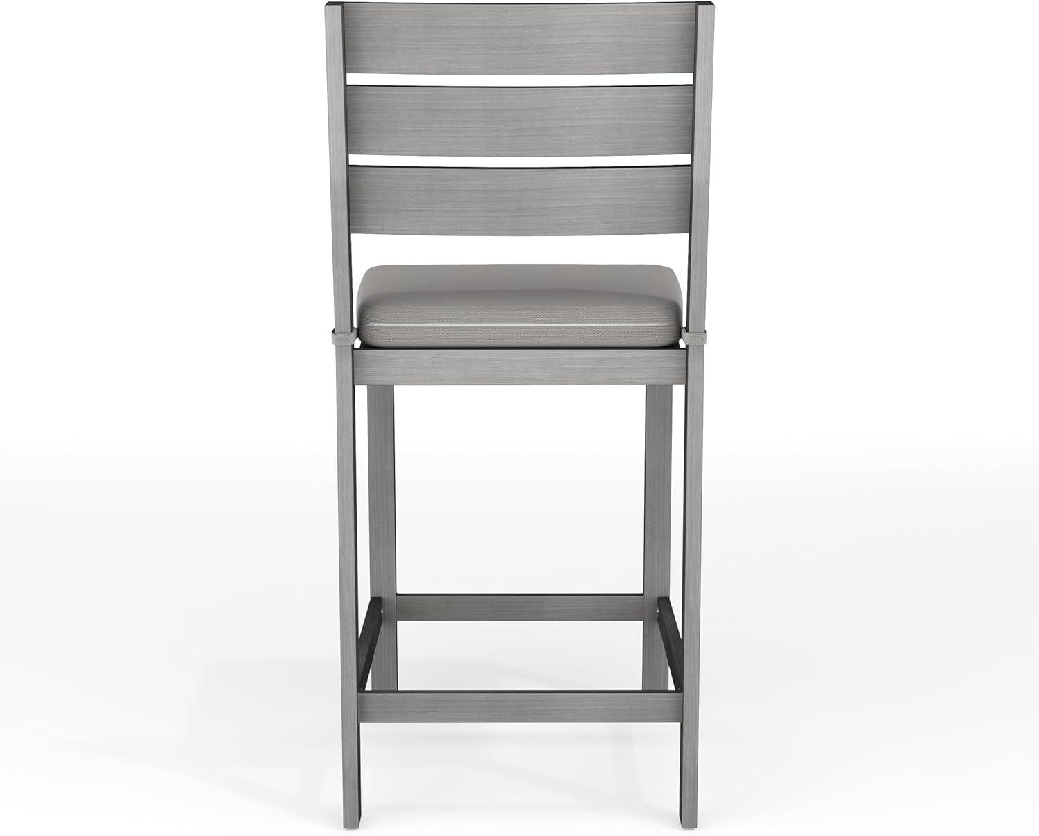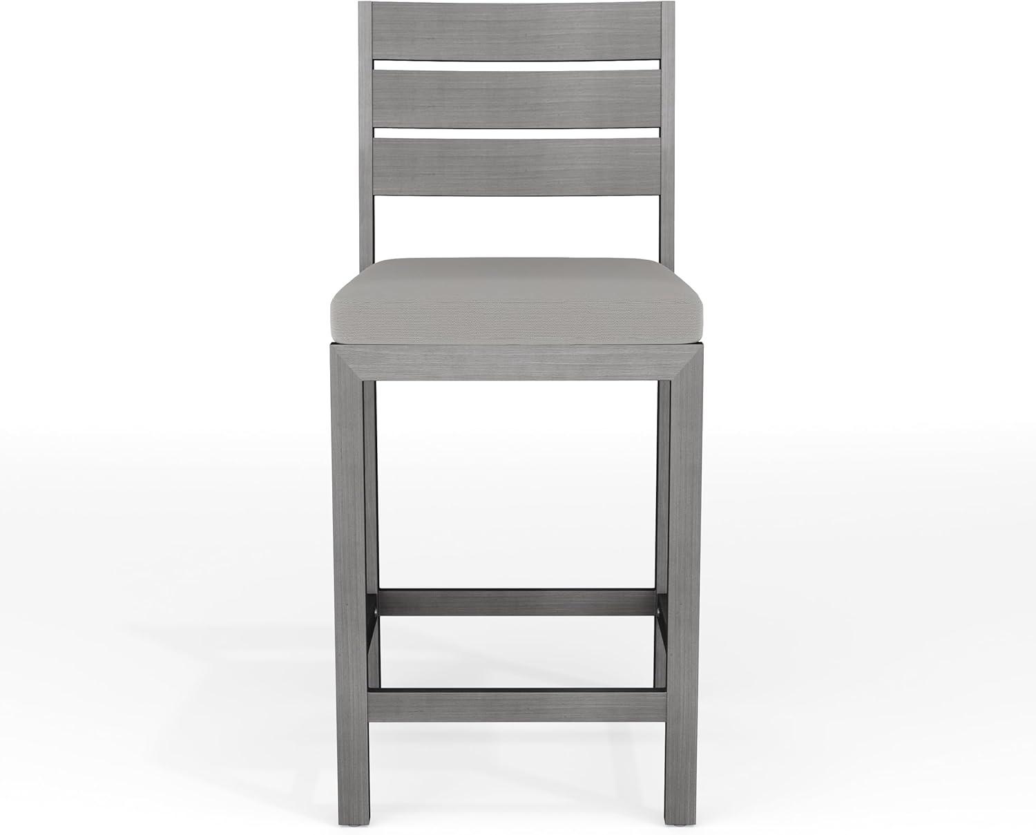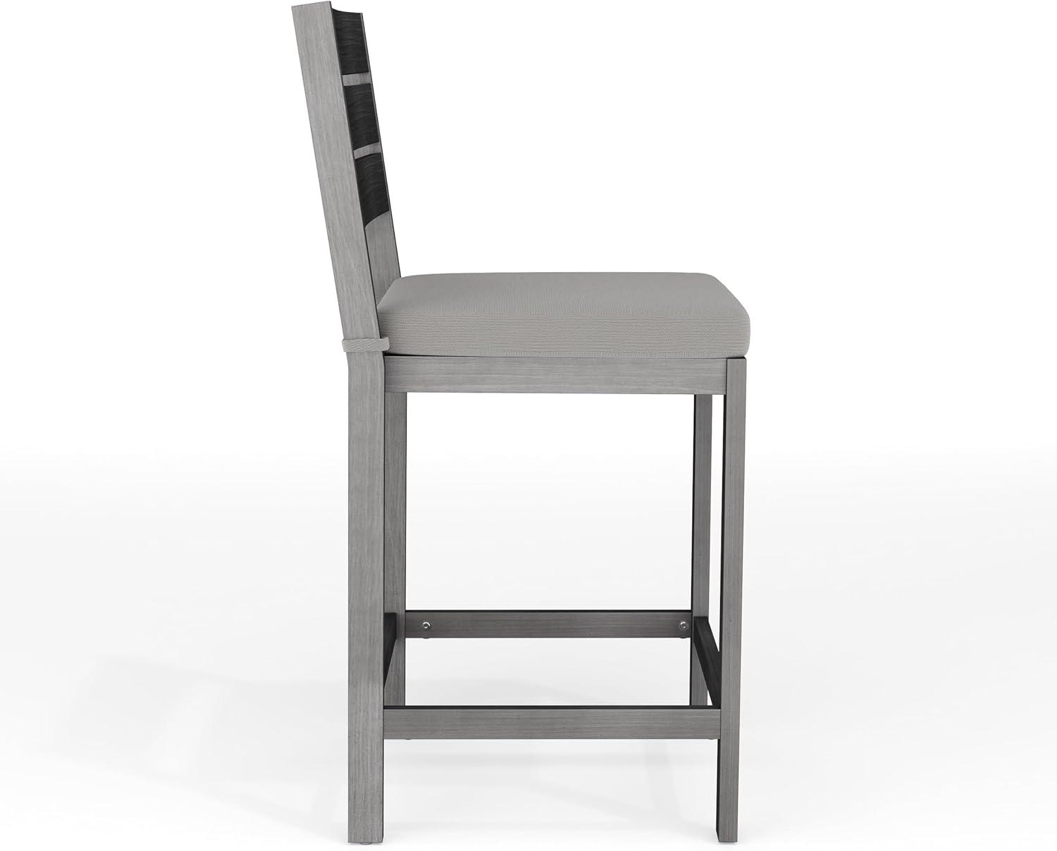 Martha Stewart Bedford Indoor-Outdoor Aluminum Patio Bar Stools with Brushed Woodgrain Finish in Brown and Cream All-Weather Cushions, Set of 2(Grey)