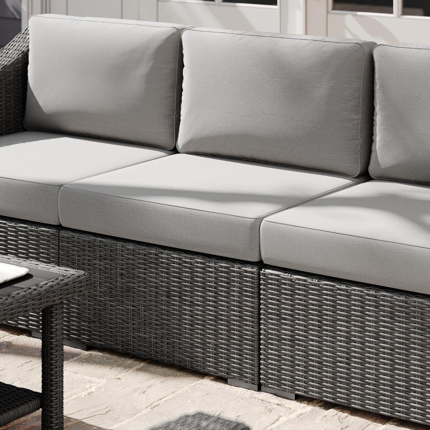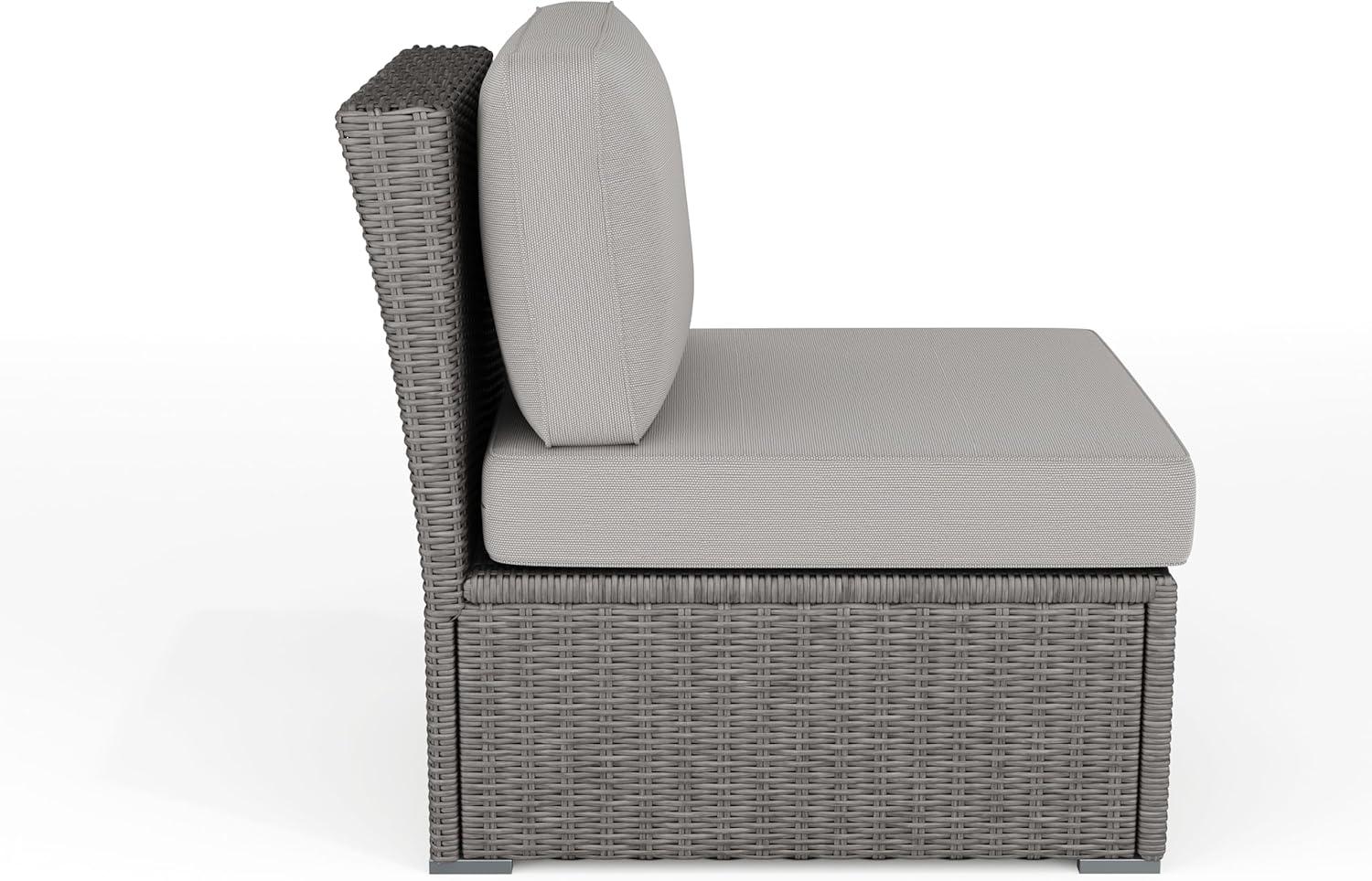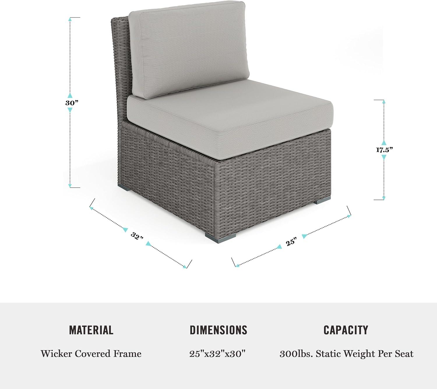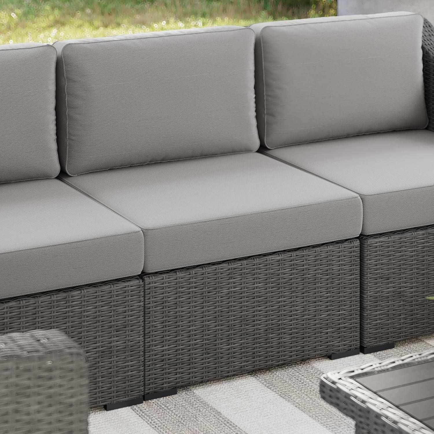 Martha Stewart Bedford Indoor-Outdoor Modular Patio Sectional Sofa Center Seat with Rattan Wicker Finish in Gray with Gray All-Weather Cushions(Gray Cushions/Gray Frame)