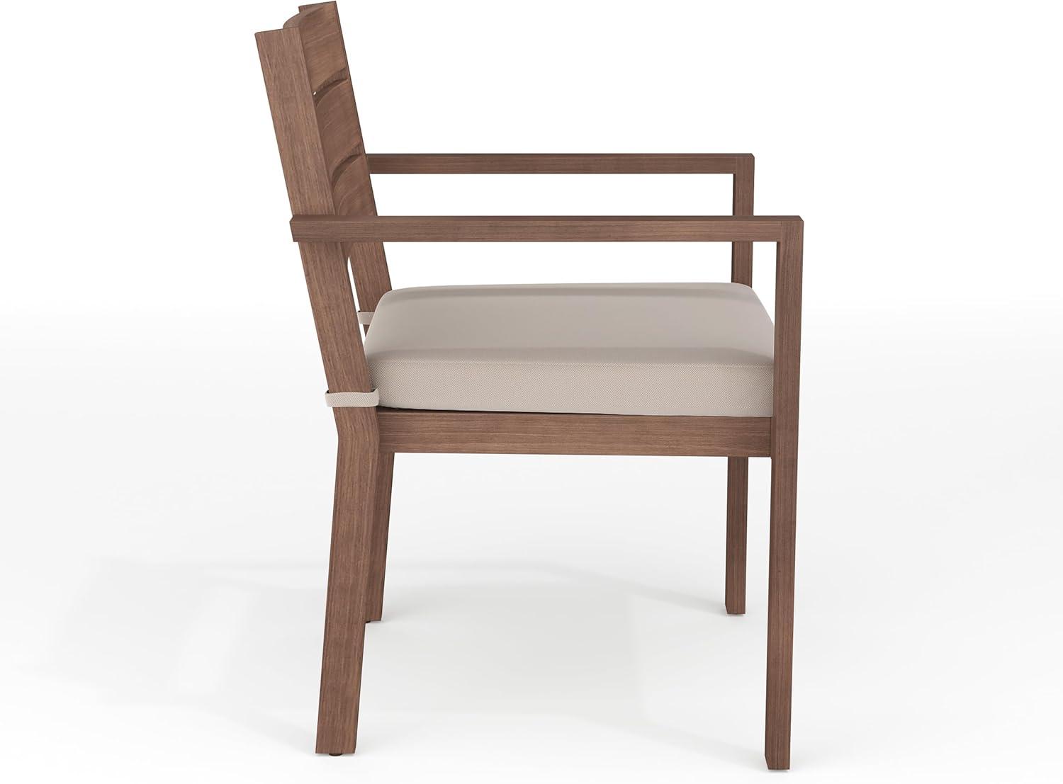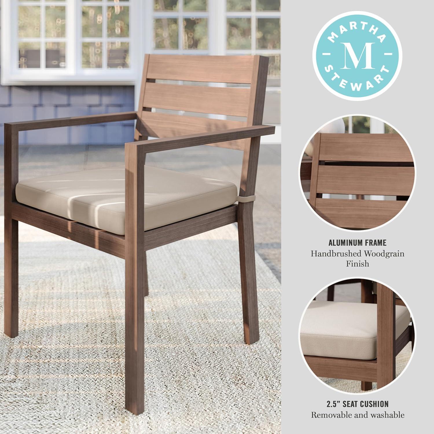 Martha Stewart Bedford Indoor-Outdoor Stackable Aluminum Patio Armchairs with Brushed Woodgrain Finish in Brown and Cream All-Weather Cushions, Set of 2(Brown)