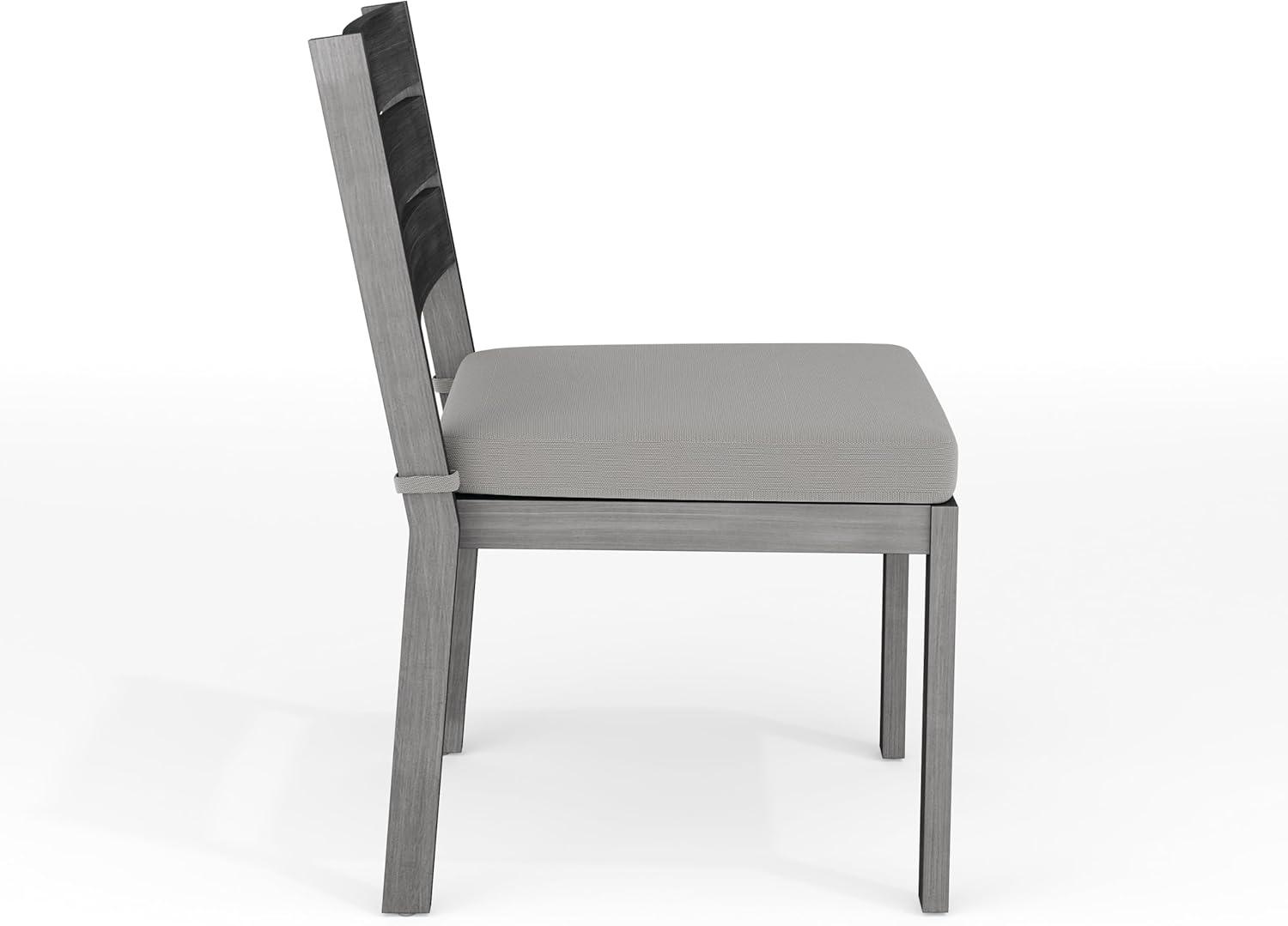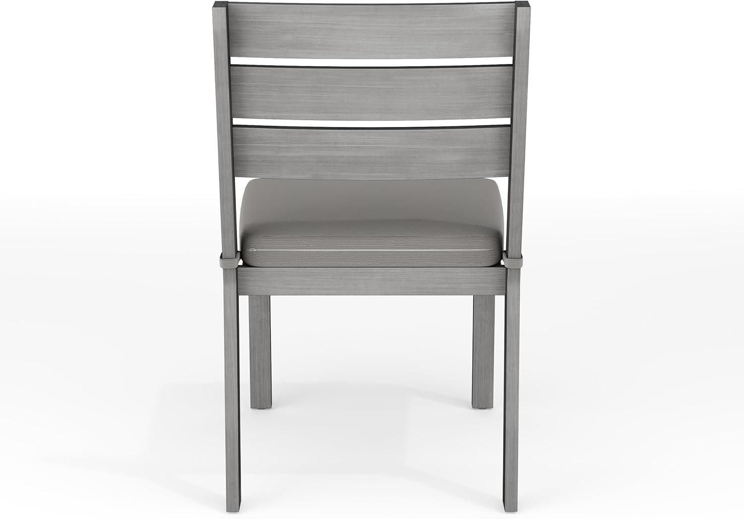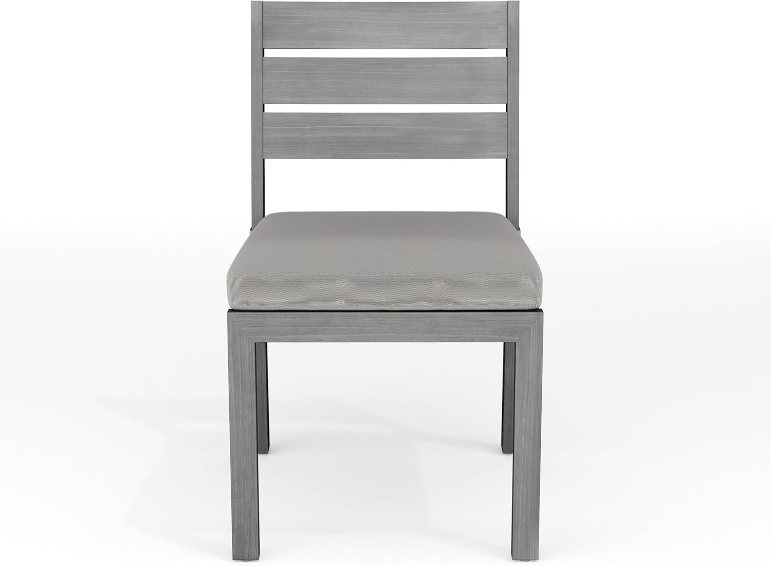 Elevate your indoor-outdoor sanctuary with the set of two Martha Stewart Bedford Patio Side Dining Chairs. Masterfully crafted with durable, rustproof aluminum frames in a beautiful hand-brushed woodgrain finish, these pieces lend elegance to any occasion. All-weather materials and a recommended stack quantity up to eight chairs high deliver peace of mind and welcome convenience by making it easy to store multiple chairs and save space when not in use. The addition of 2.5 thick seat cushions grant gracefully comfortable seating to pair with your morning coffee or a favorite novel. Part of our Bedford collection, these armless chairs pair wonderfully with the coordinating armchairs, accent chairs, barstools, and dining tables, perfect for crafting a custom collection that fits your entertaining needs. Arriving conveniently ready for use and requiring only minimal maintenance, these dining chairs are a must have for everyday use as well as special occasions.