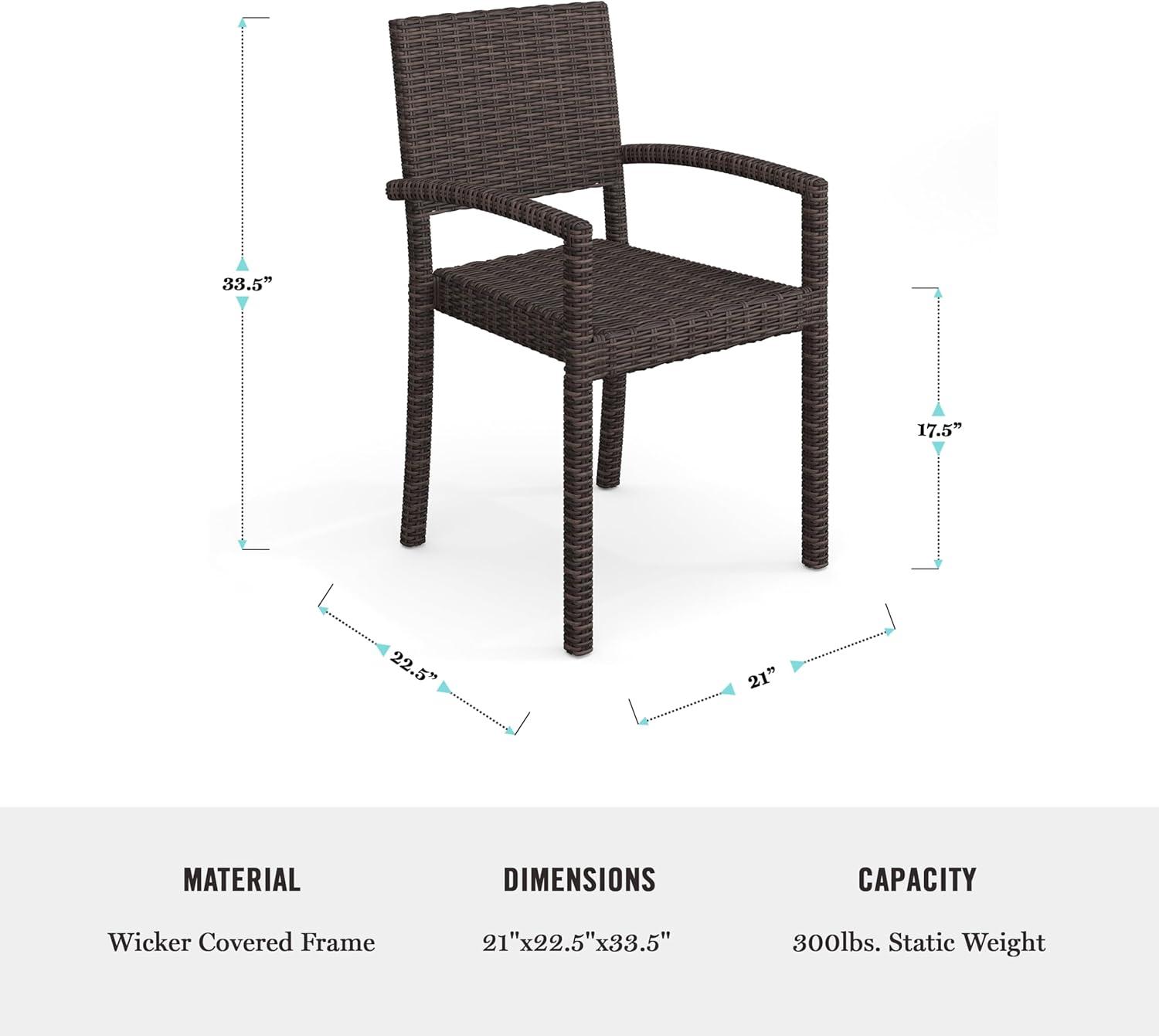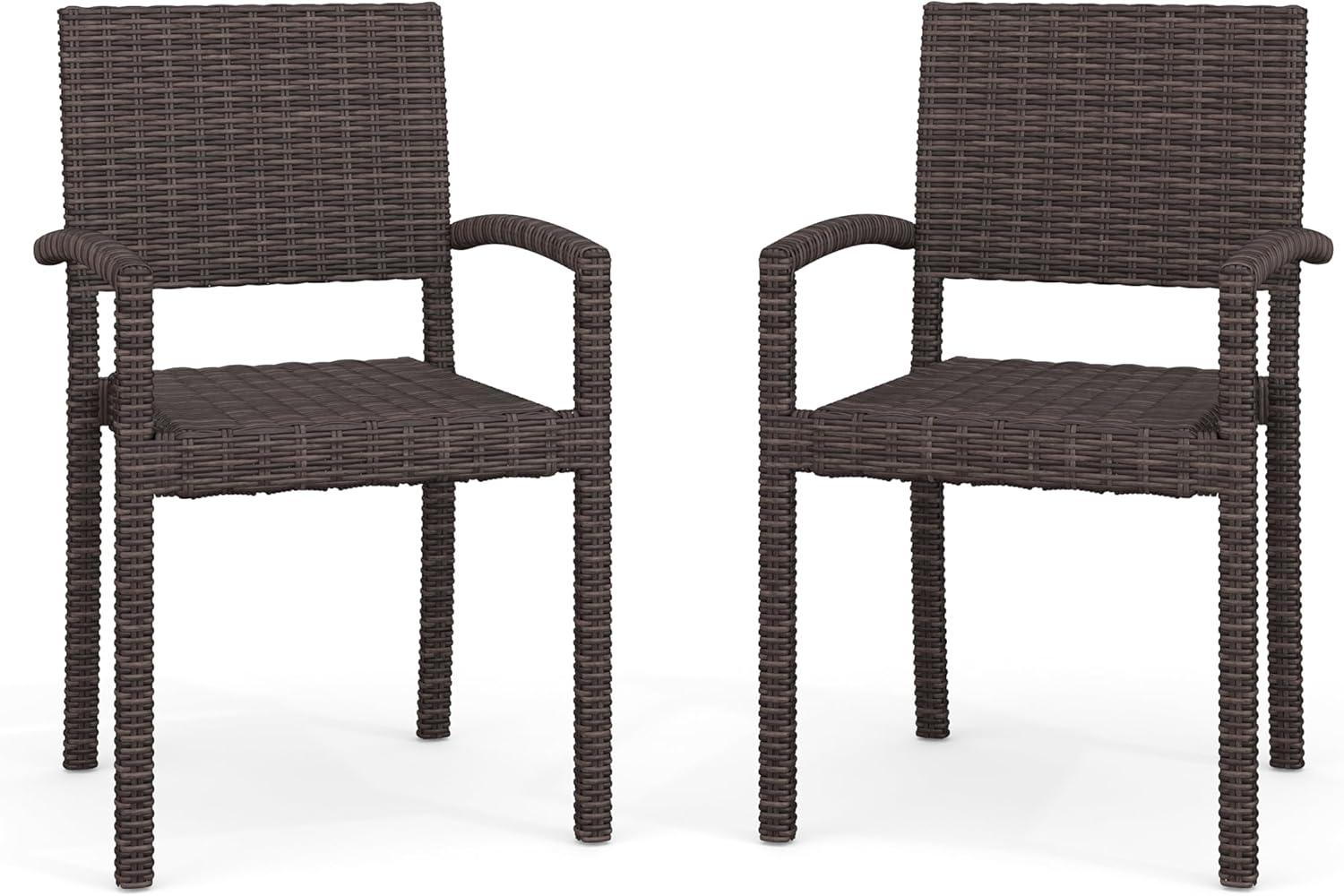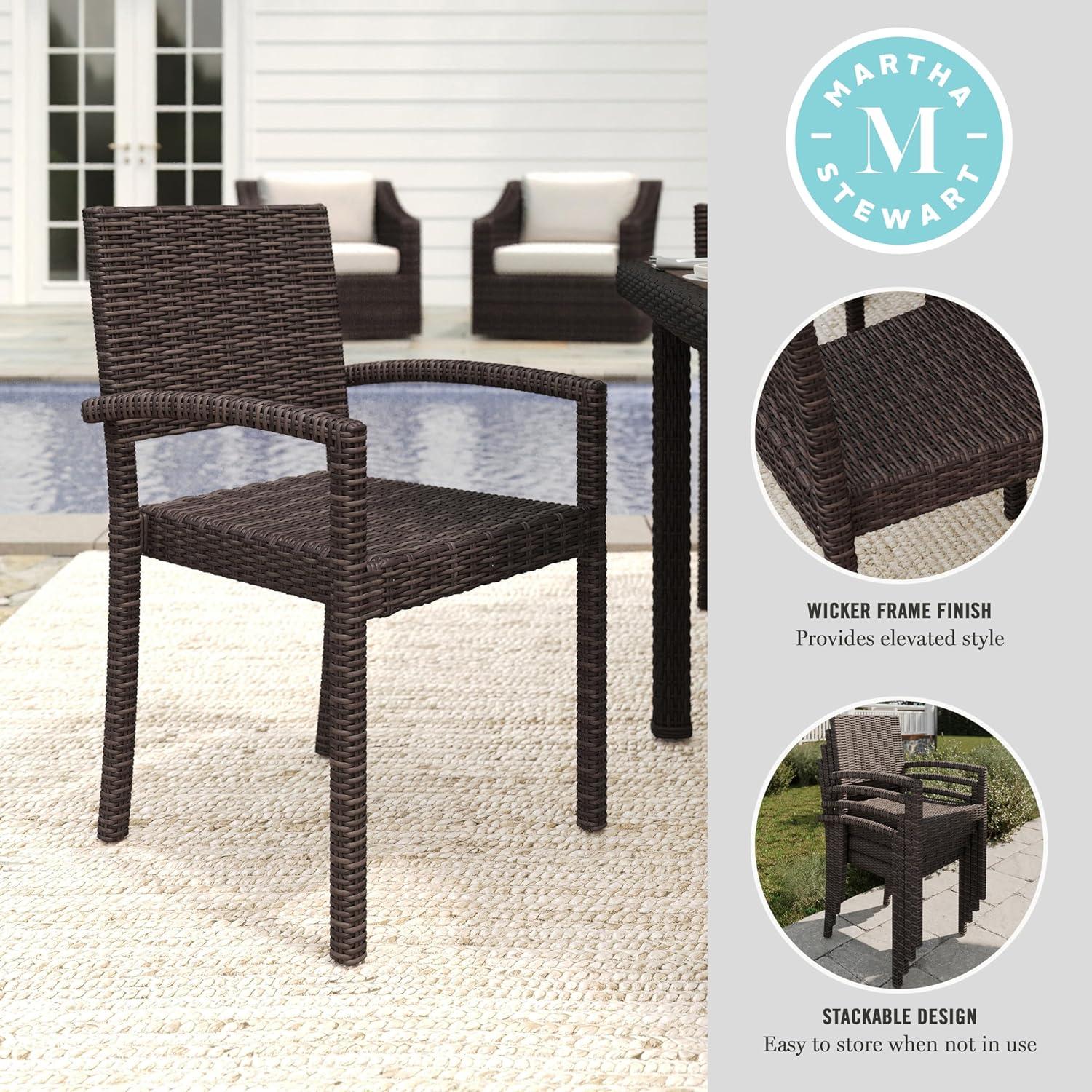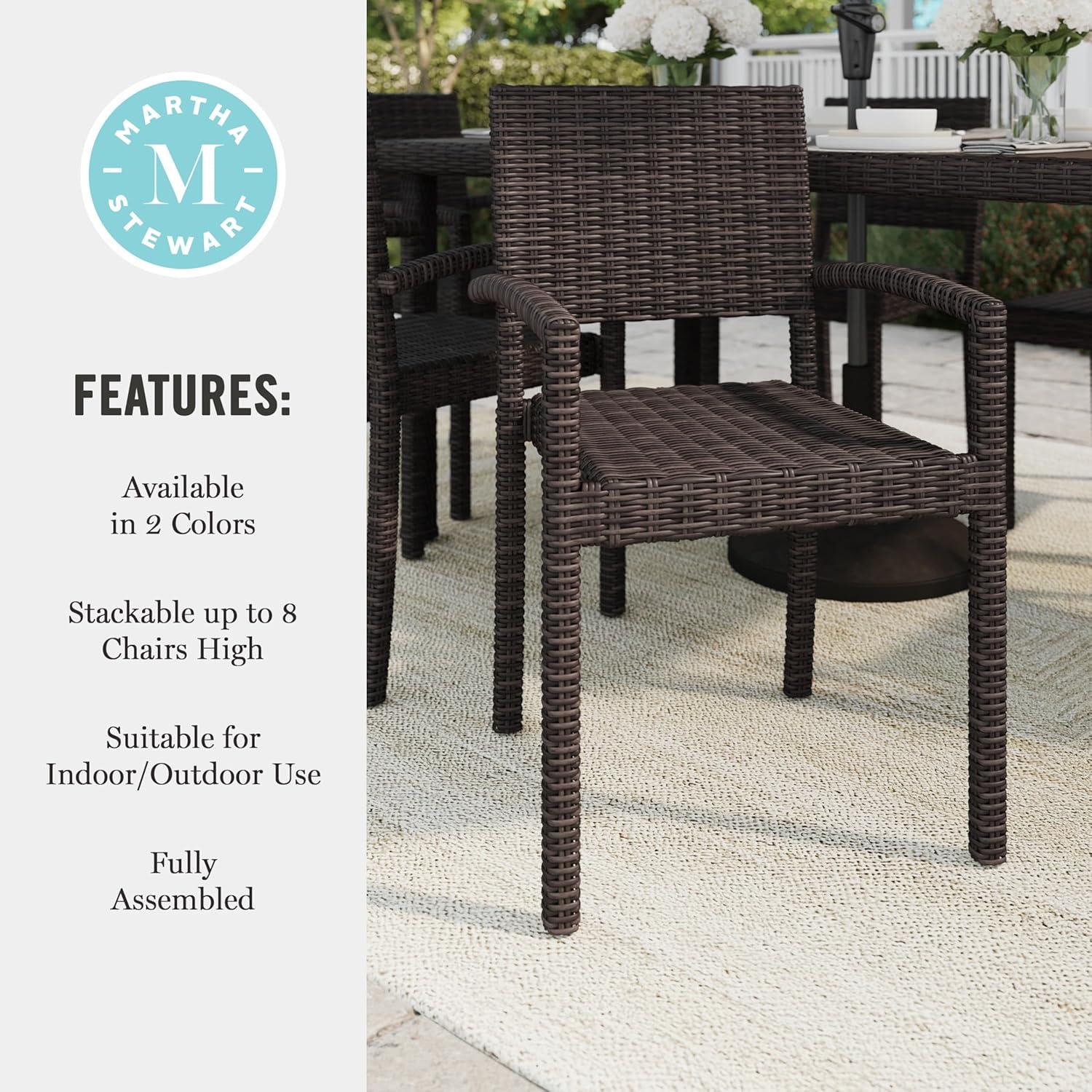 Martha Stewart Bedford Indoor-Outdoor Stackable Patio Armchairs with Rattan Wicker Finish in Gray, Set of 2(Brown)