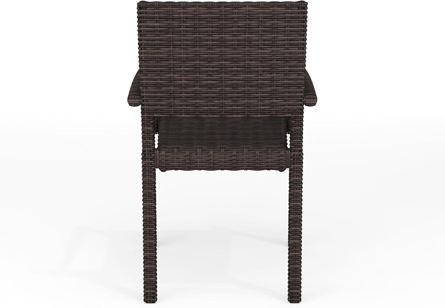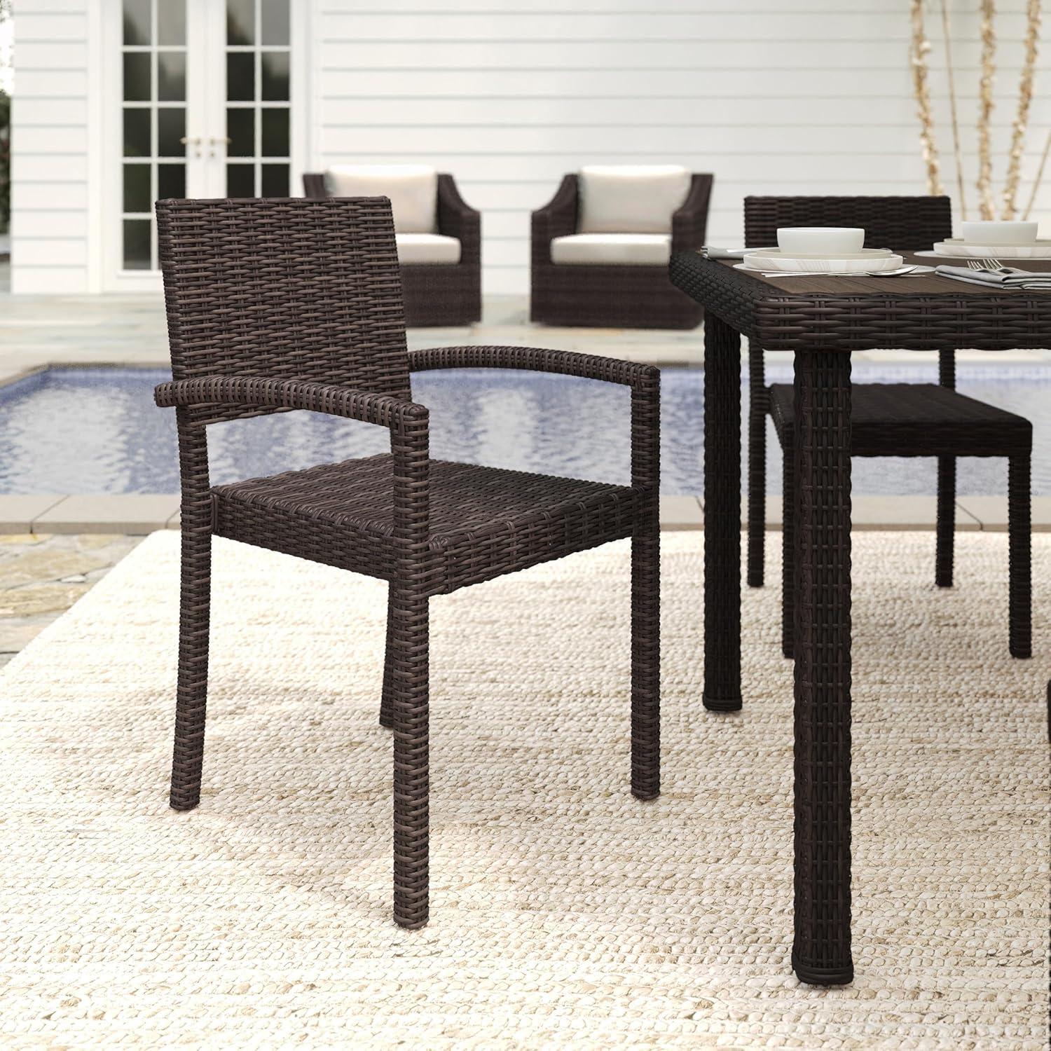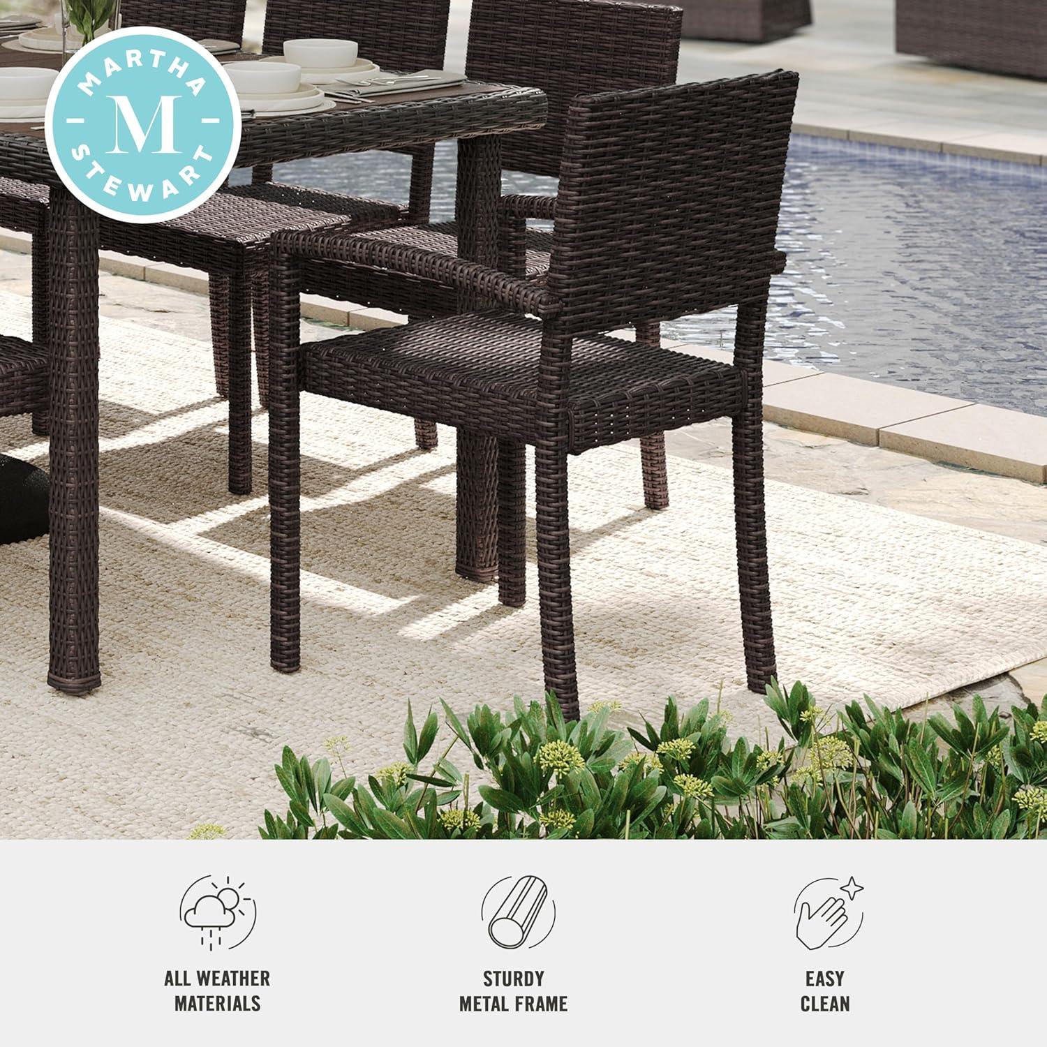 Refresh your patio space with the chic style and cozy comfort of this set of two Martha Stewart Bedford Patio Dining Armchairs. Sturdily built, these versatile patio chairs are ideal for reading al fresco, enjoying cocktails with friends, or simply relaxing. With an efficient design boasting a recommended stack quantity up to eight chairs high, you can effortlessly store multiple chairs and save space when not in use. Graced with integrated armrests, these wicker chairs will cradle you in comfort while you make the most of those gorgeous, sunny days or starlit evenings. Adjustable floor glides on the front legs allow for level seating. Part of our Bedford collection, these chairs pair wonderfully with the coordinating pieces allowing you to craft a custom collection that fits your entertaining needs. For your convenience, your chairs arrive with no assembly required, while upkeep is quick and easy.