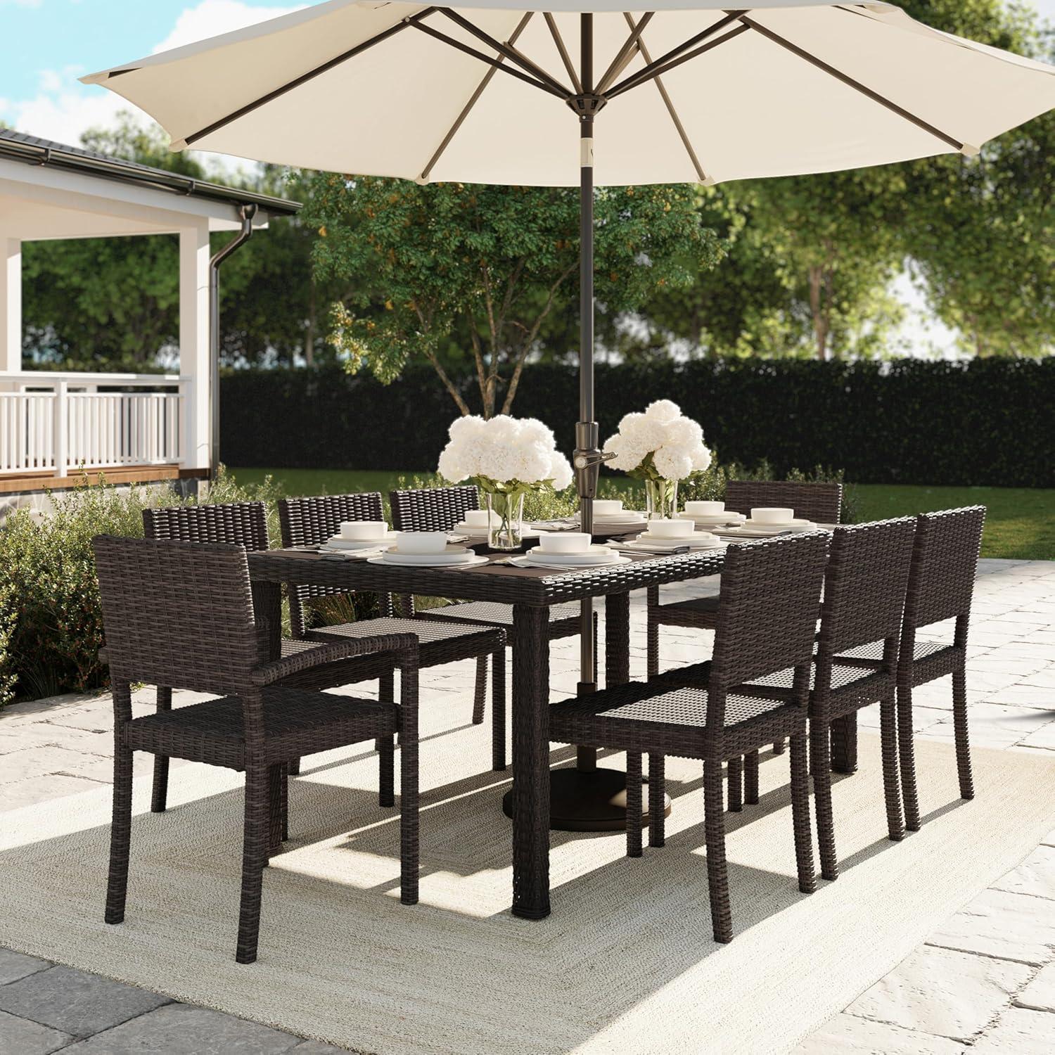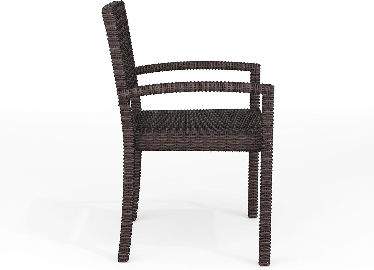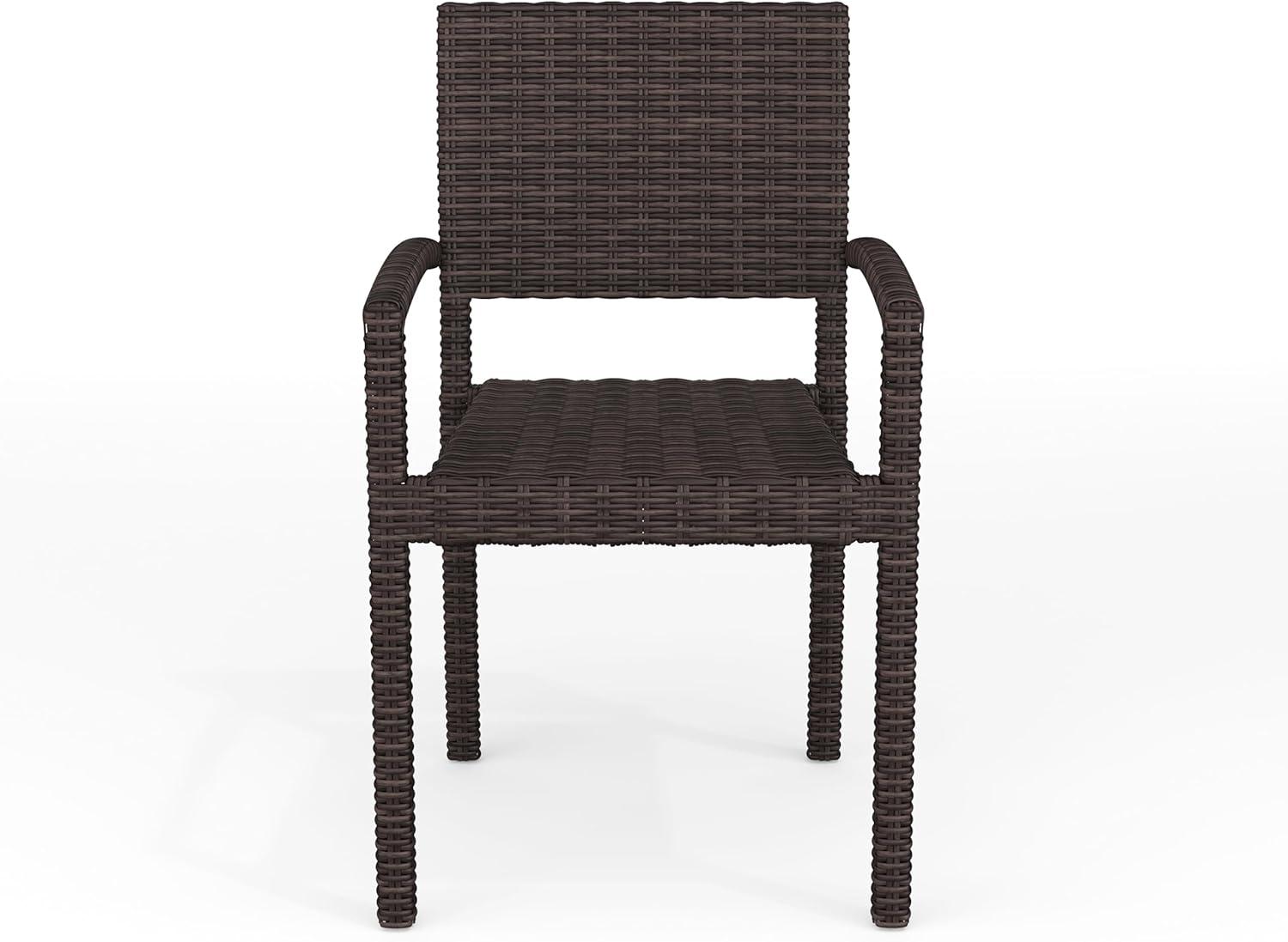 Refresh your patio space with the chic style and cozy comfort of this set of two Martha Stewart Bedford Patio Dining Armchairs. Sturdily built, these versatile patio chairs are ideal for reading al fresco, enjoying cocktails with friends, or simply relaxing. With an efficient design boasting a recommended stack quantity up to eight chairs high, you can effortlessly store multiple chairs and save space when not in use. Graced with integrated armrests, these wicker chairs will cradle you in comfort while you make the most of those gorgeous, sunny days or starlit evenings. Adjustable floor glides on the front legs allow for level seating. Part of our Bedford collection, these chairs pair wonderfully with the coordinating pieces allowing you to craft a custom collection that fits your entertaining needs. For your convenience, your chairs arrive with no assembly required, while upkeep is quick and easy.