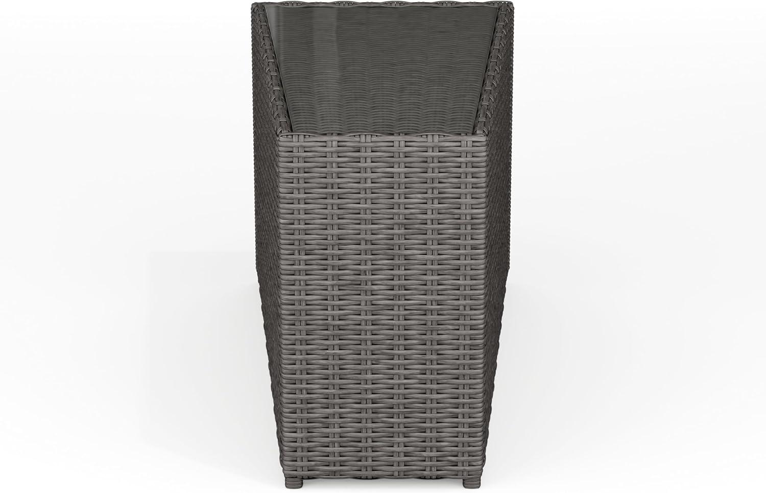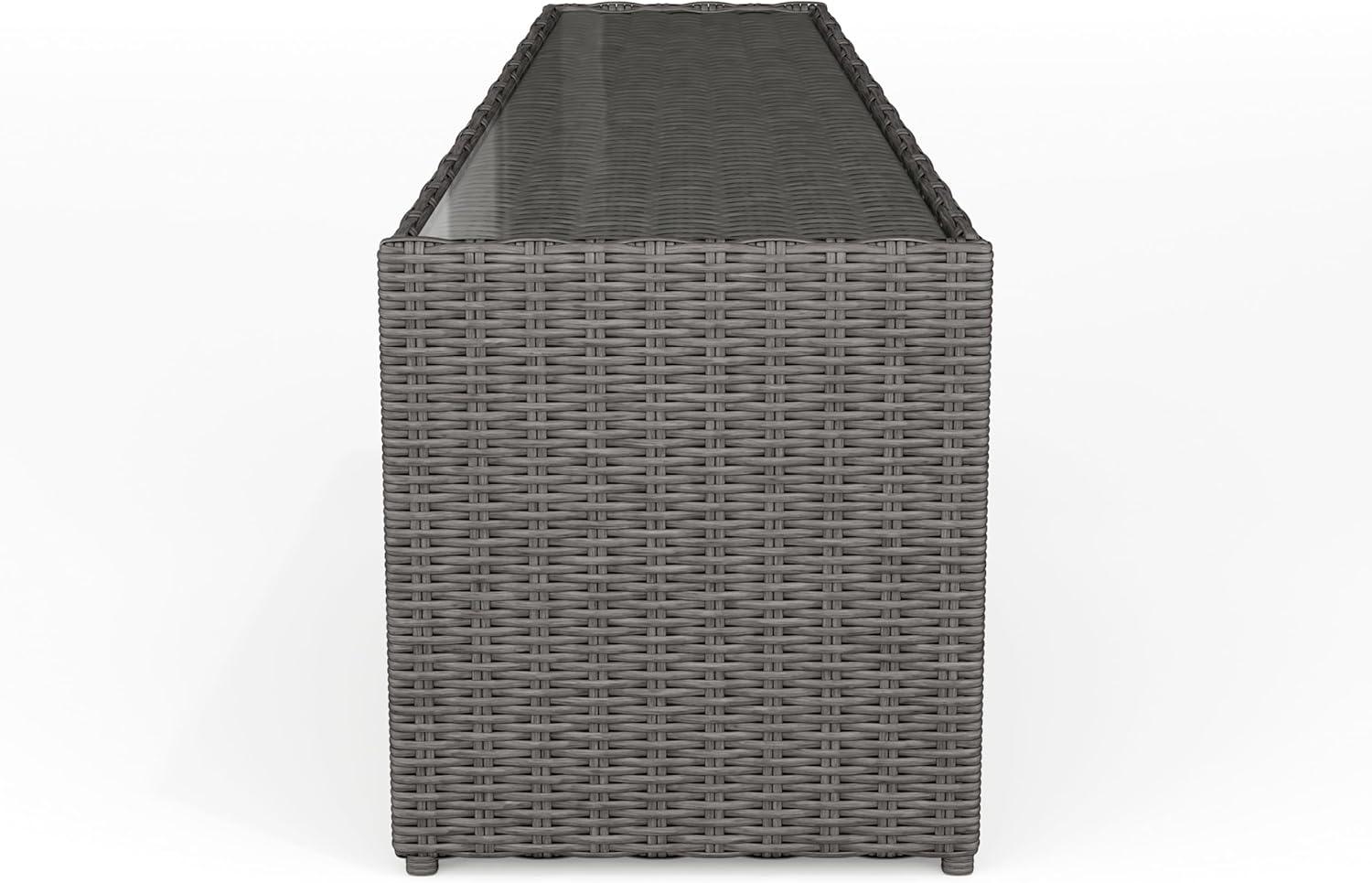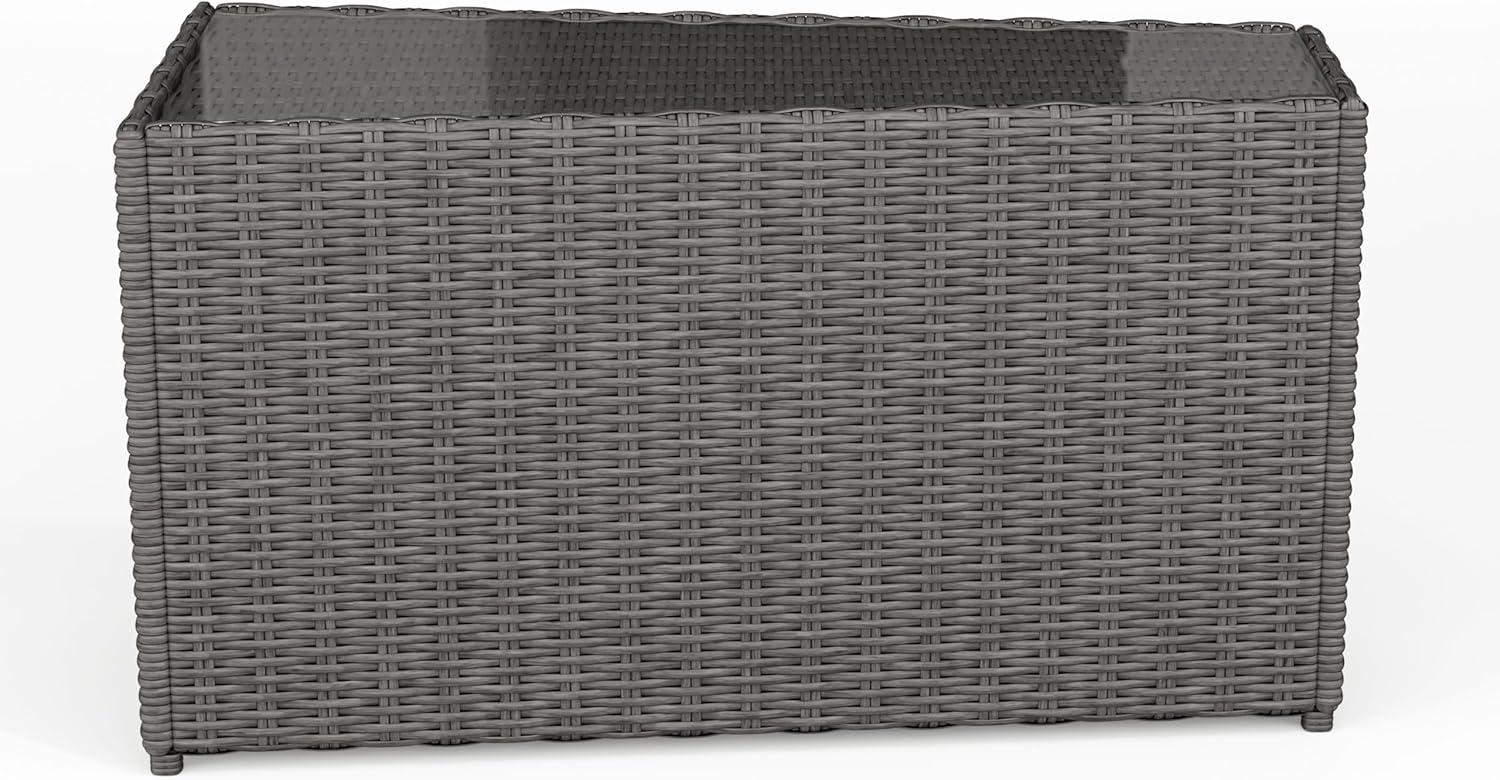 Martha Stewart Bedford Indoor-Outdoor Tapered Patio Side Table with Inset Tempered Glass Top and Rattan Wicker Finish in Gray(Grey)