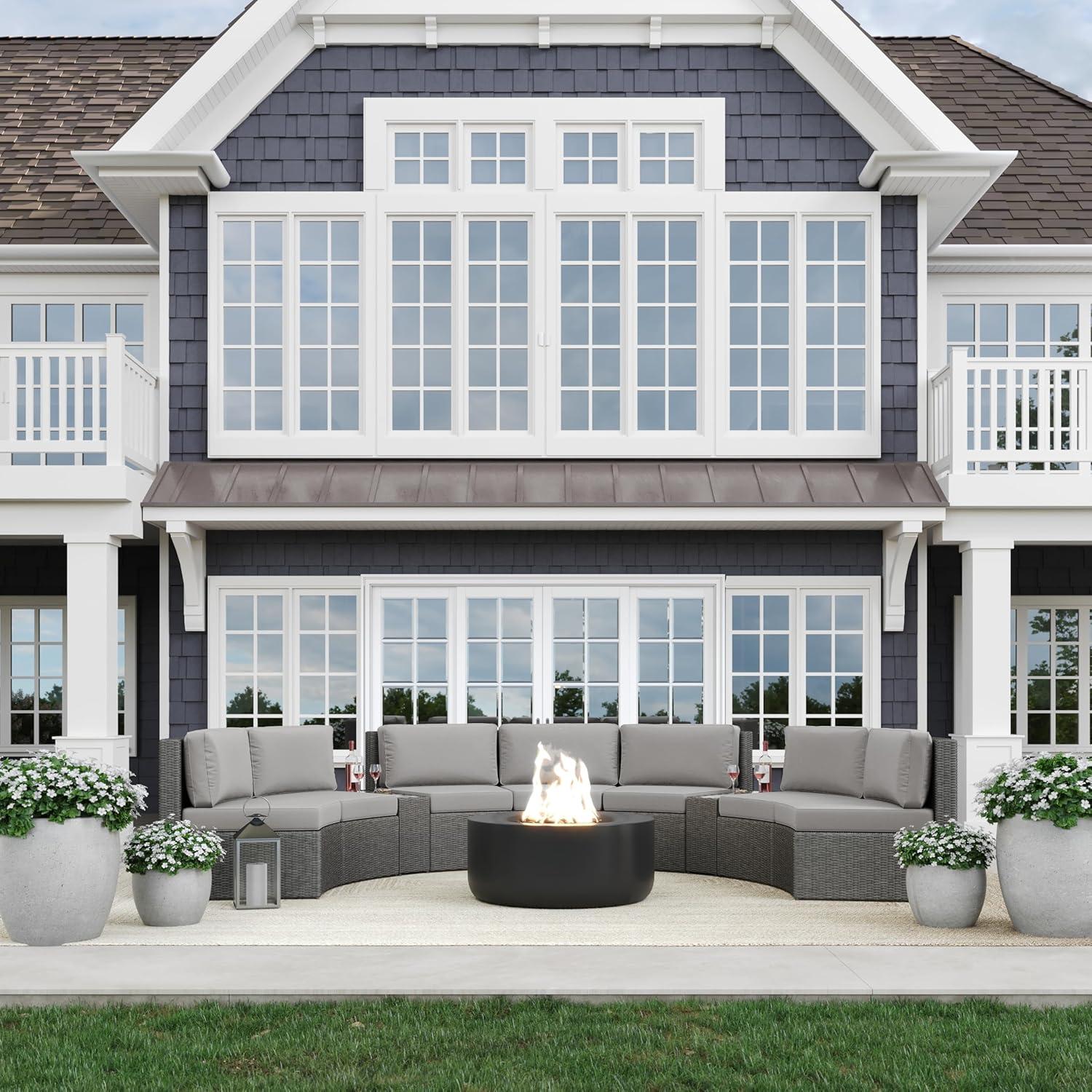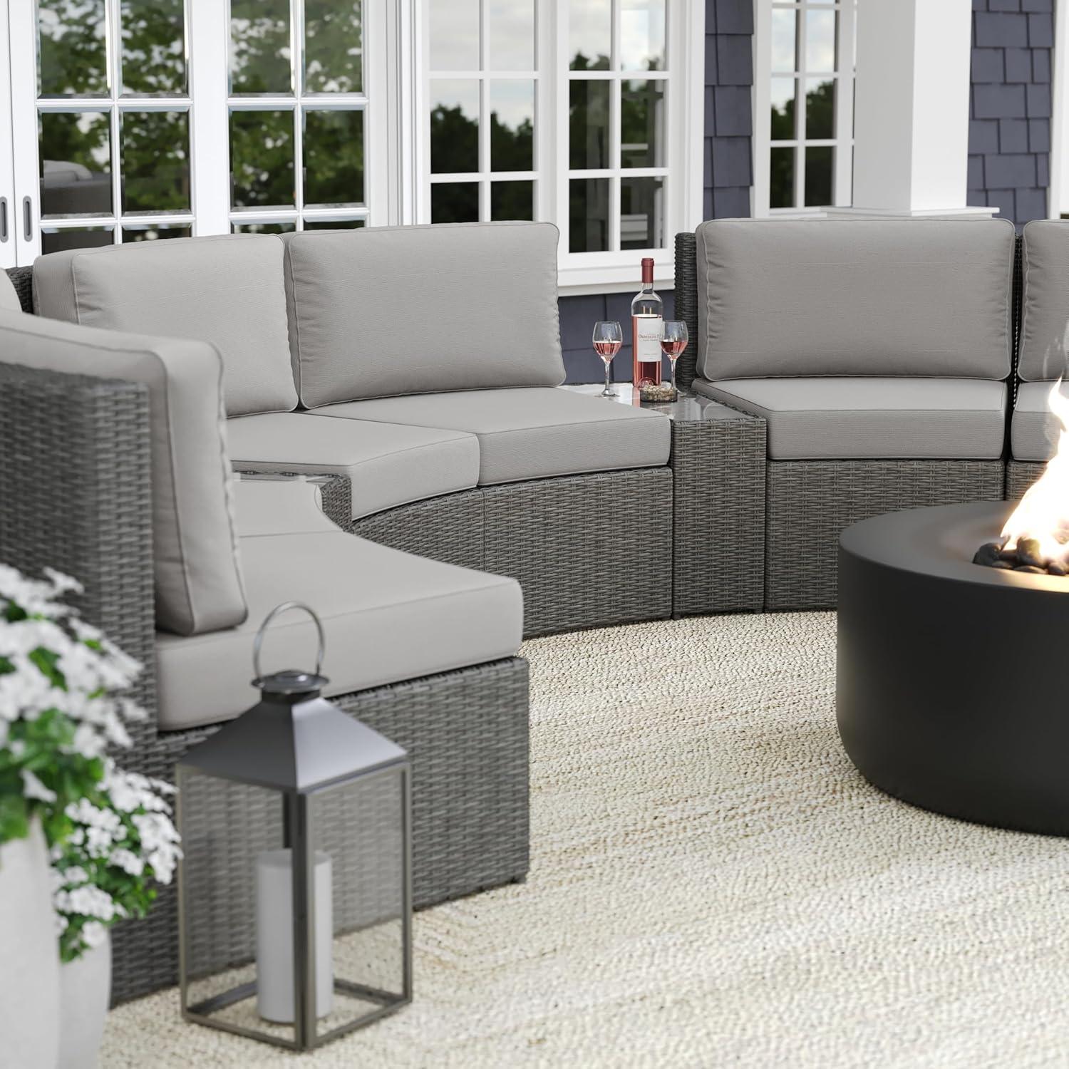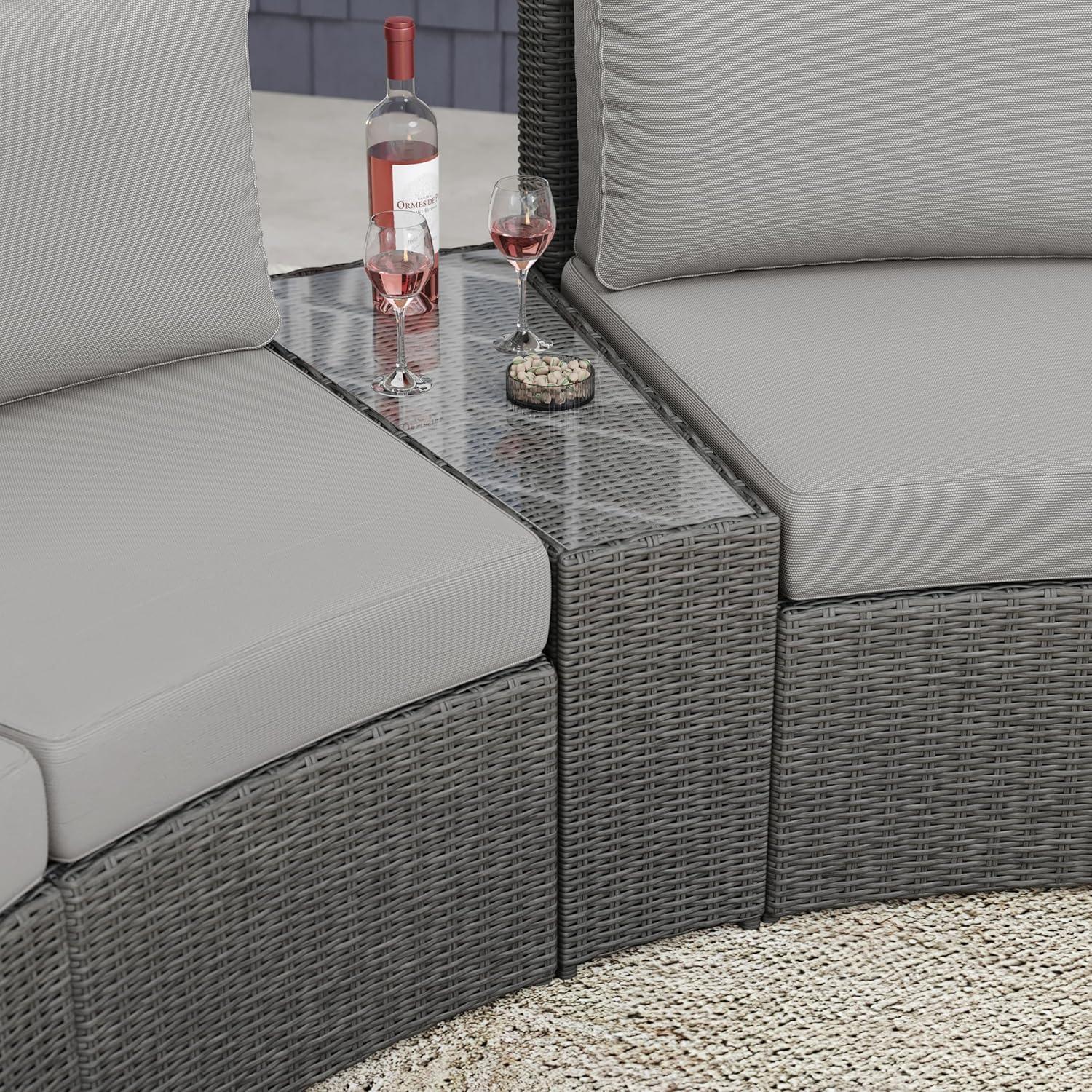 Martha Stewart Bedford Indoor-Outdoor Tapered Patio Side Table with Inset Tempered Glass Top and Rattan Wicker Finish in Gray(Grey)