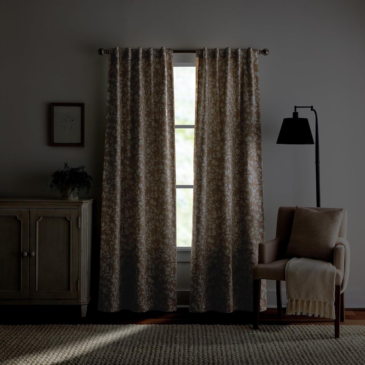 Martha Stewart Beige Floral Blackout Window Curtains for Living Room or Bedroom – 37″ x 84″ – Set of 2 – Linen Cream Flowers(Linen)