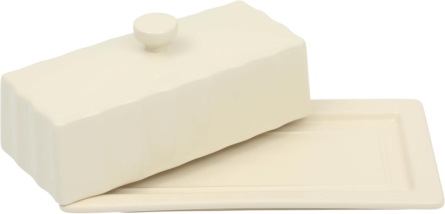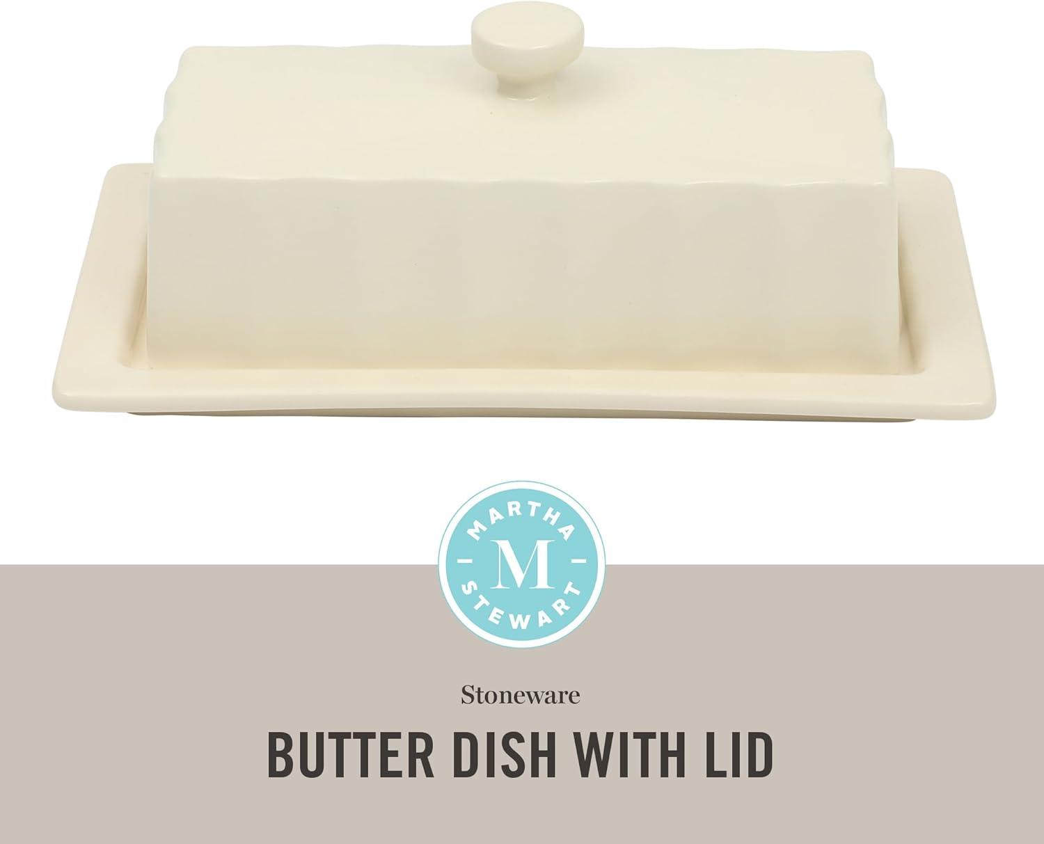 Martha Stewart Broadbrook Stoneware Butter Dish with Lid, Rectangular Covered Butter Keeper, 8.1 x 4.4 x 3 Inches, Classic Cream Glaze, Dishwasher Safe Ceramic Storage for Counter or Table
