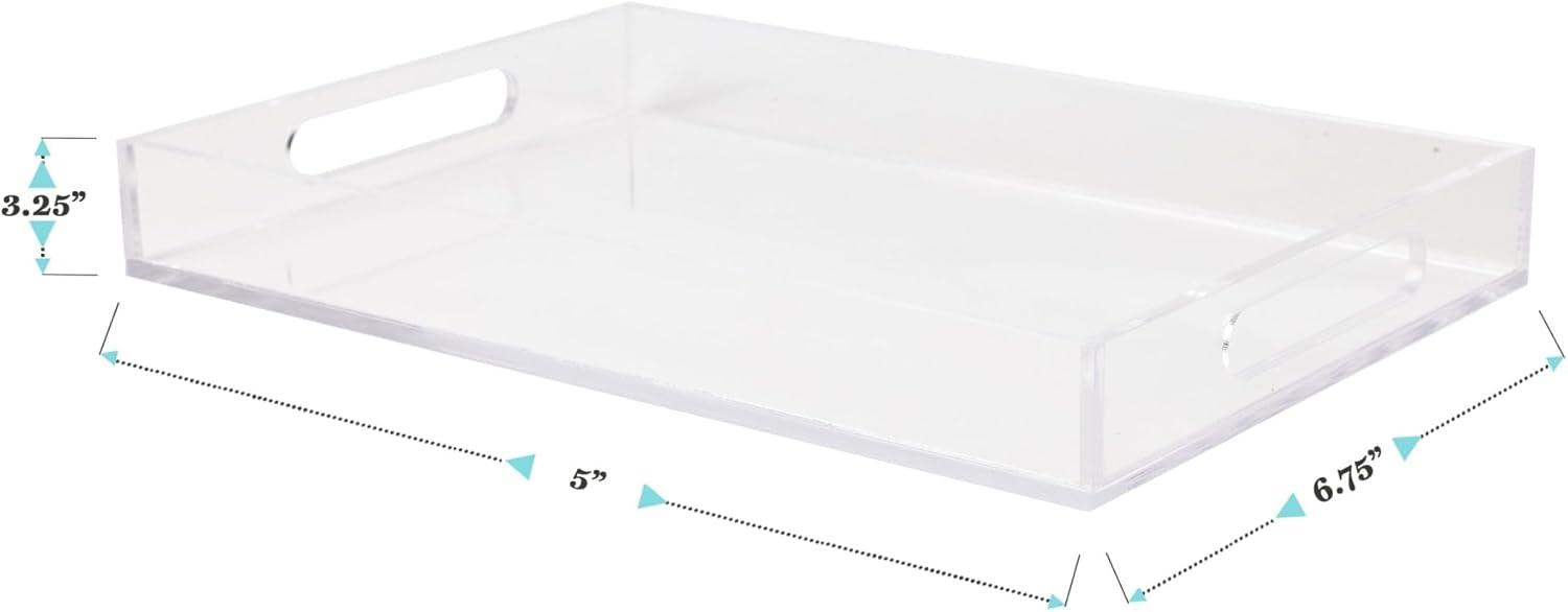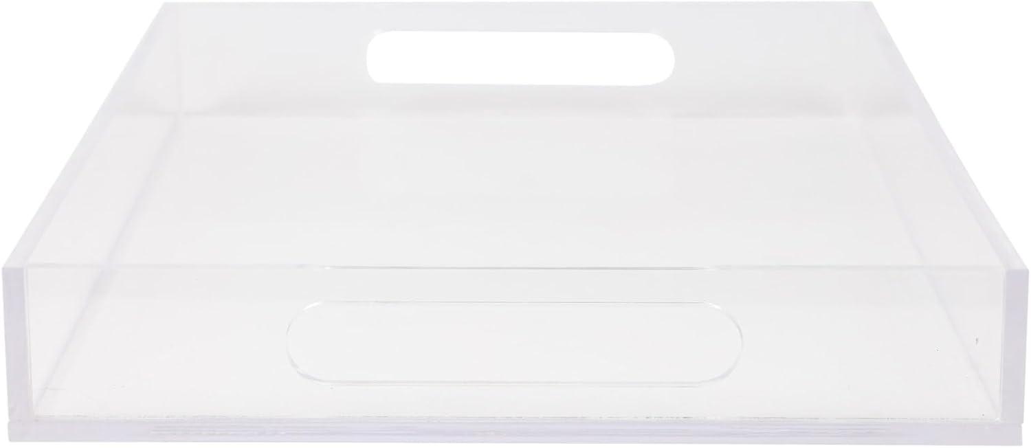 Maintain the perfect carrier for letters, magazines, or personal items that you want to easily transport from one place to another with the Martha Stewart Acrylic Letter Tray with Handles. Comprised of premium acrylic that is waterproof and odor resistant, the transparent body adds an airy, open feel to any room making it ideal for smaller spaces. Clean lines and smooth edges lend elevated elegance to your desktop, ottoman, or bathroom vanity while the anti-slip feet ensure your tray stays put to safekeep your stored items. Wipe clean with a soft, dry cloth to maintain the freshly unboxed appearance.