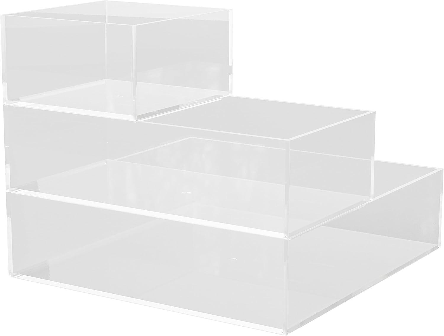 Martha Stewart Brody Desktop Storage Organizer, Stack and Slide Plastic Organizer Tray, Organizer for Office, Kitchen, or Vanity, 3″ x 7.5″, Clear(1-S 1-M 1-L (Pack of 2))