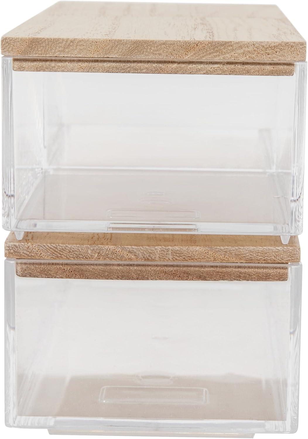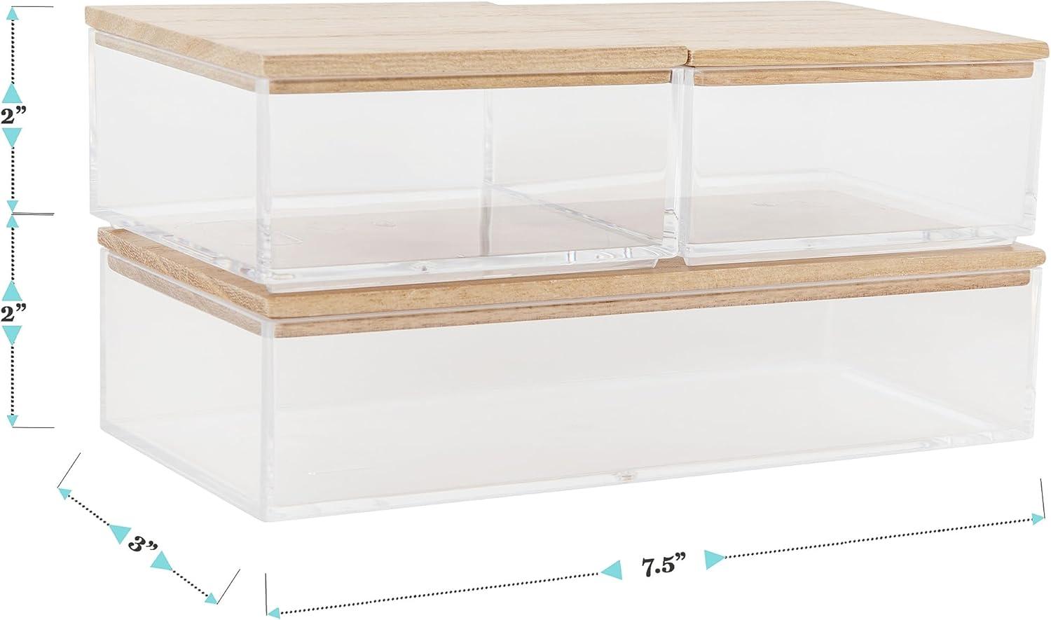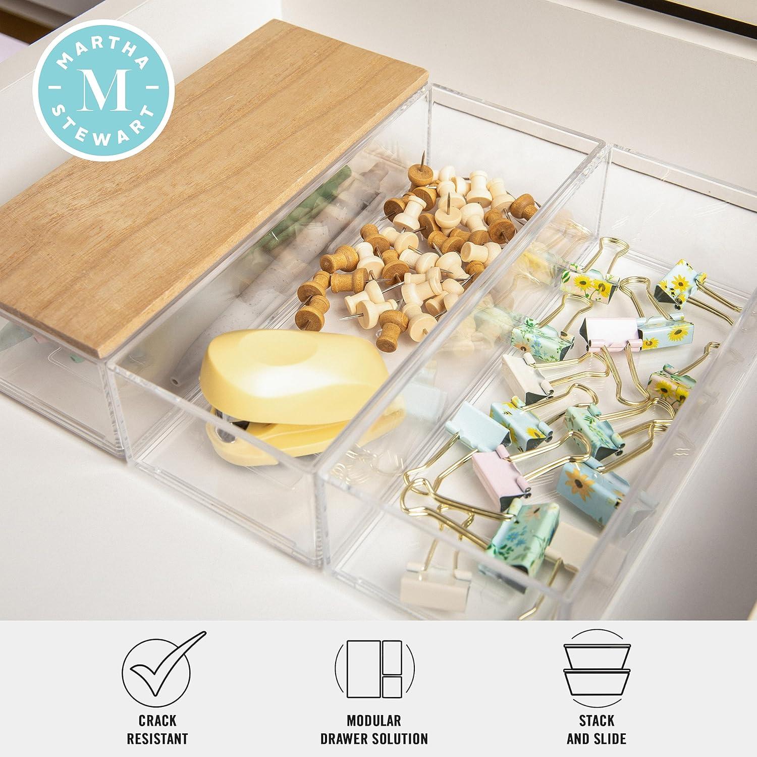 Martha Stewart Brody Plastic Storage Organizer Bins with Engineered Wood Lids for Home Office,-Kitchen, or-Bathroom, 3 Pack 1-Small/1-Medium/1-Large, Clear/White(Clear/Light Natural)