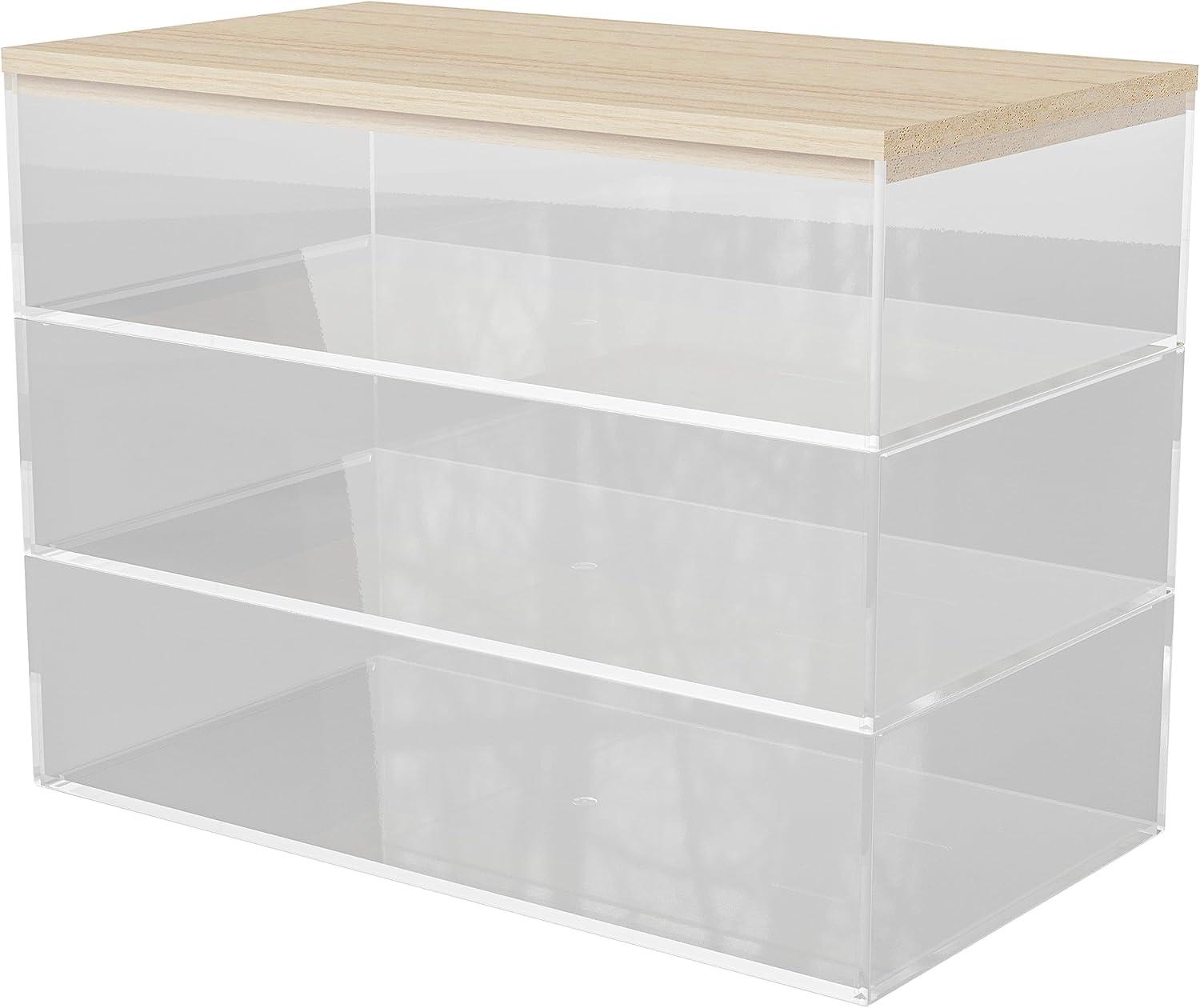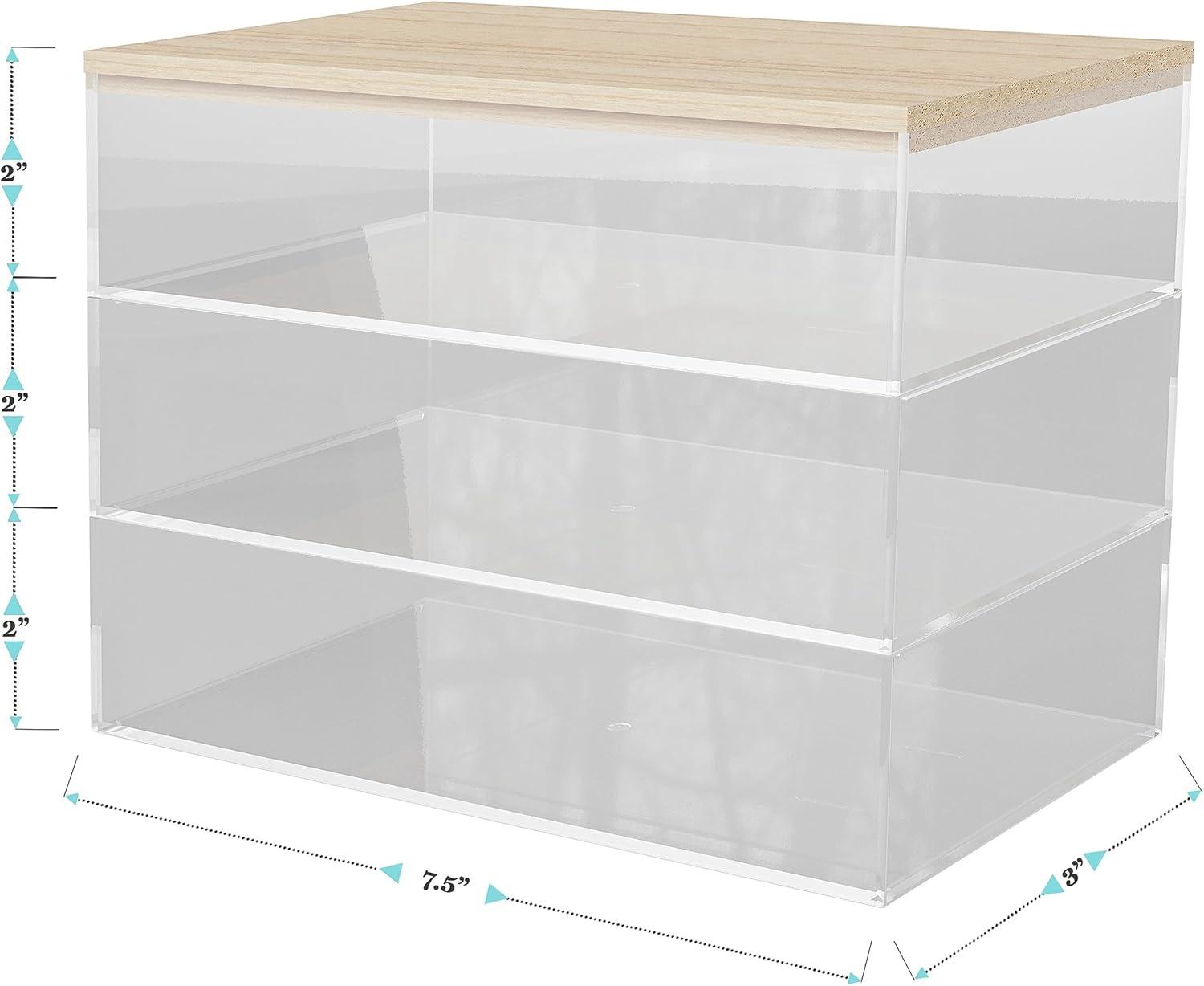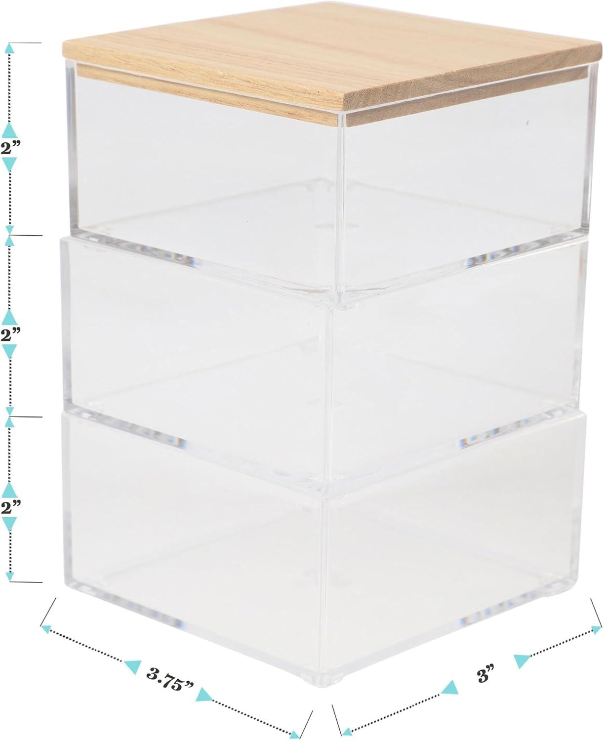 Martha Stewart Brody Plastic Storage Organizer Bins with Engineered Wood Lids for Home Office,-Kitchen, or-Bathroom, 3 Pack 1-Small/1-Medium/1-Large, Clear/White(Clear/Light Natural)
