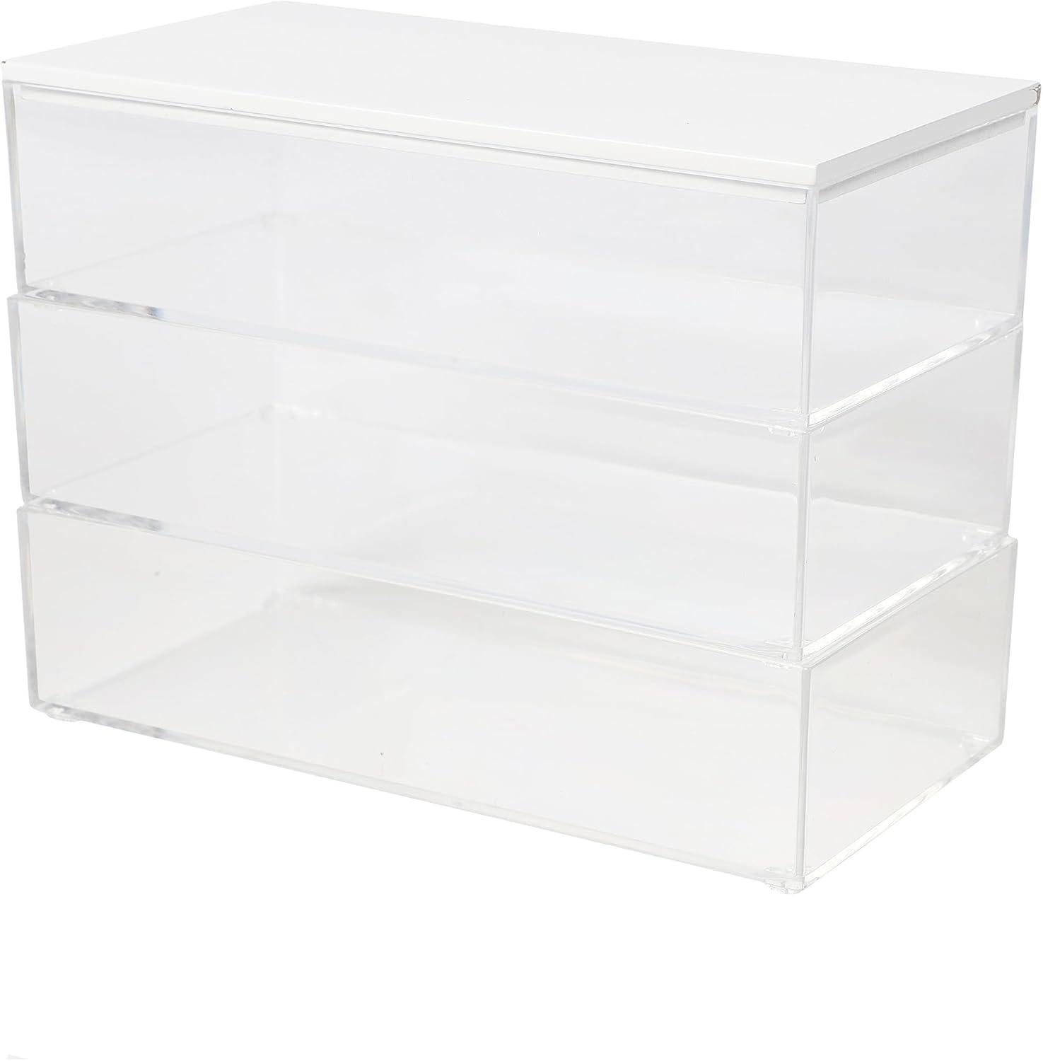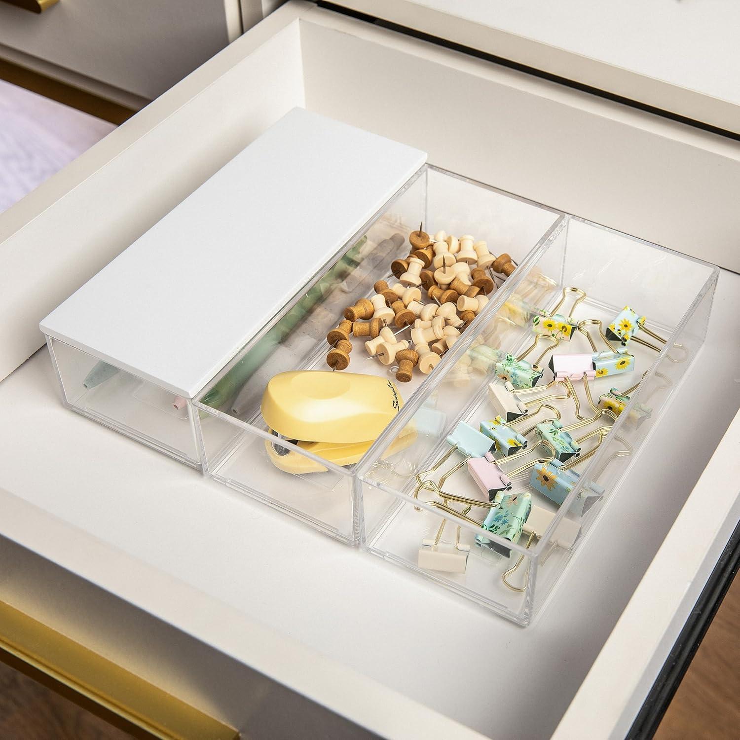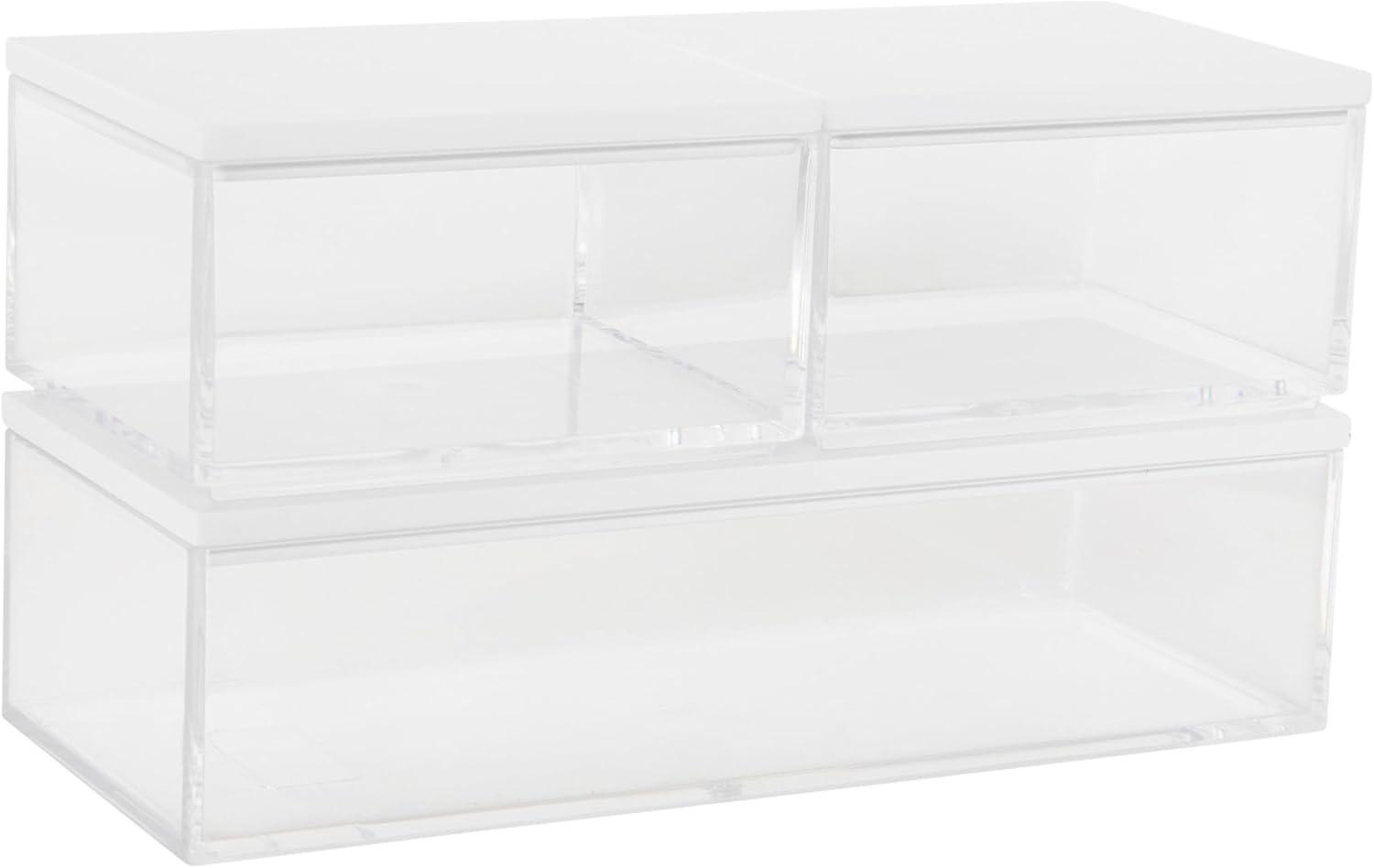 Martha Stewart Brody Plastic Storage Organizer Bins with Engineered Wood Lids for Home Office,-Kitchen, or-Bathroom, 3 Pack 1-Small/1-Medium/1-Large, Clear/White(Clear/White)
