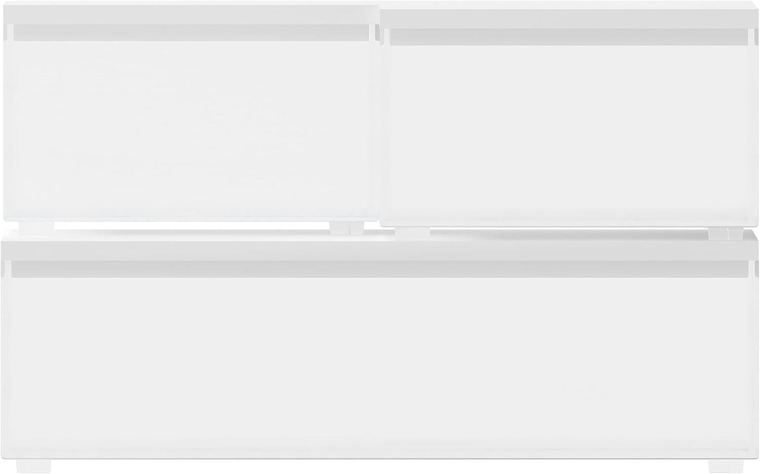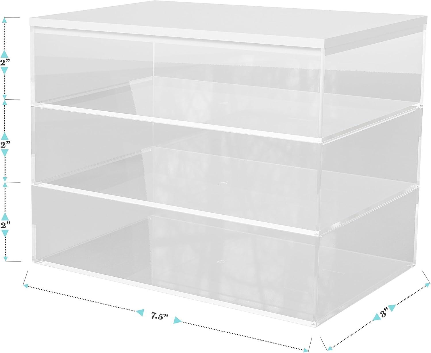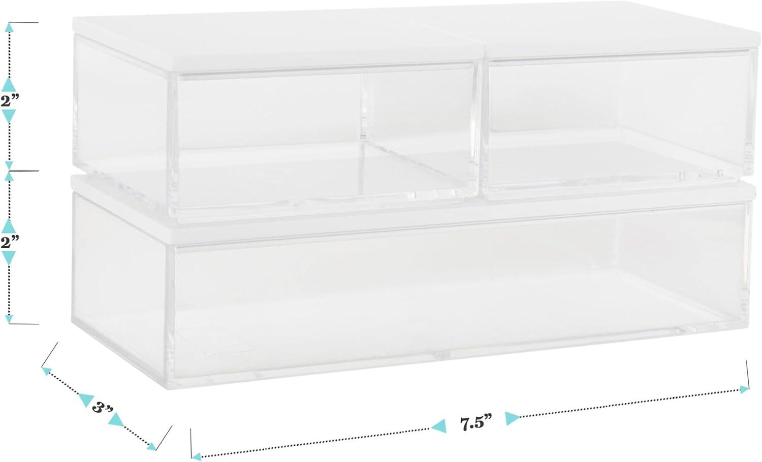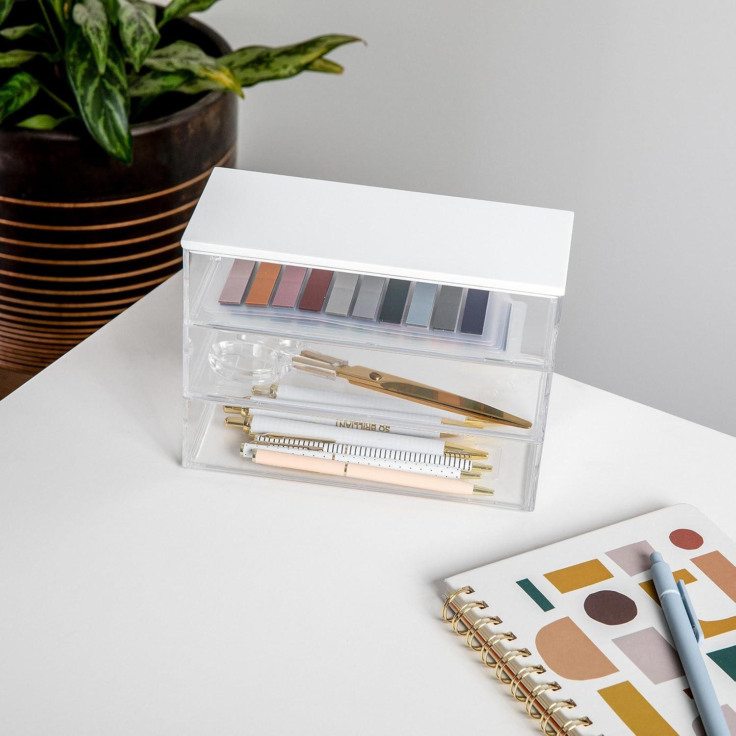Martha Stewart Brody Plastic Storage Organizer Bins with Engineered Wood Lids for Home Office,-Kitchen, or-Bathroom, 3 Pack 1-Small/1-Medium/1-Large, Clear/White(Clear/White)