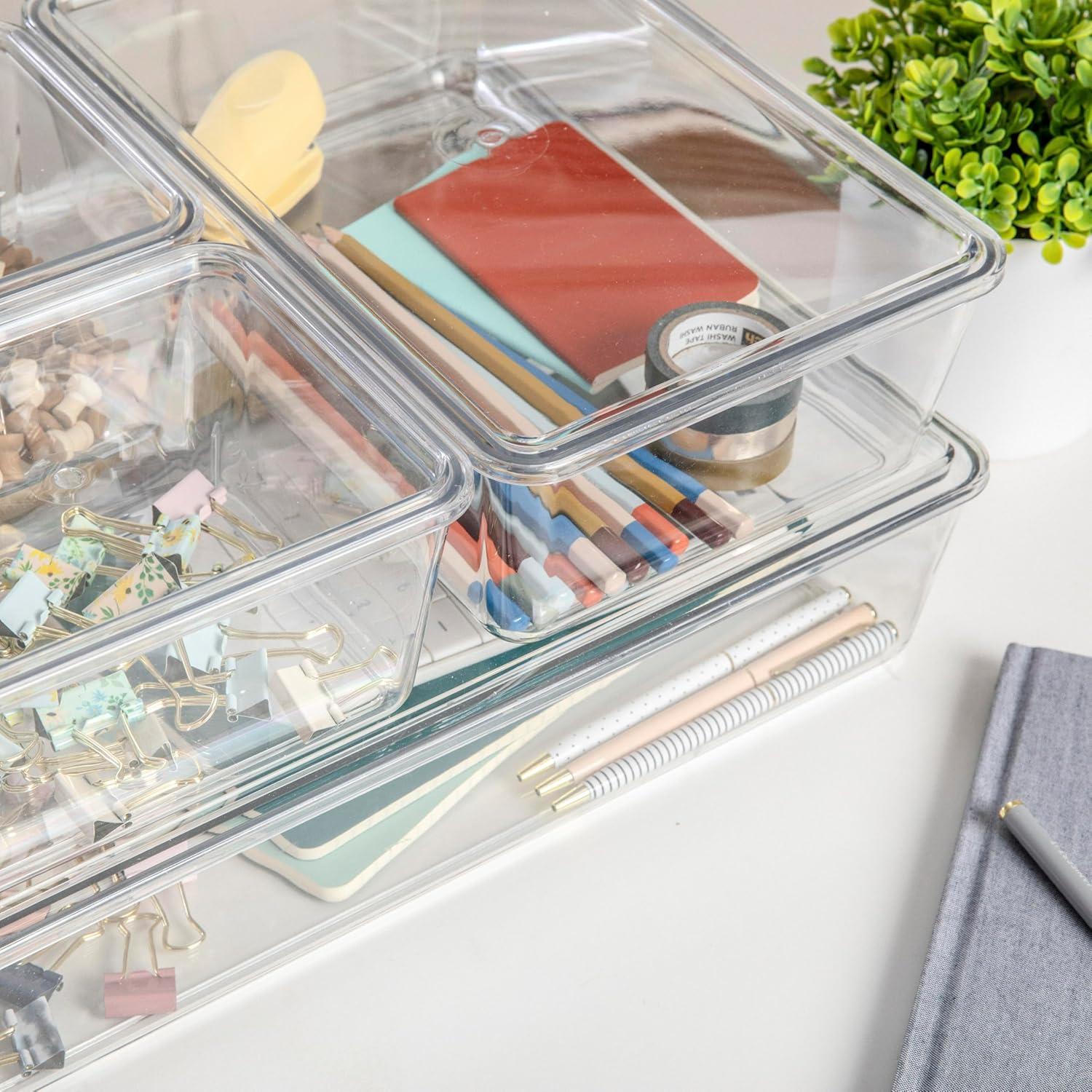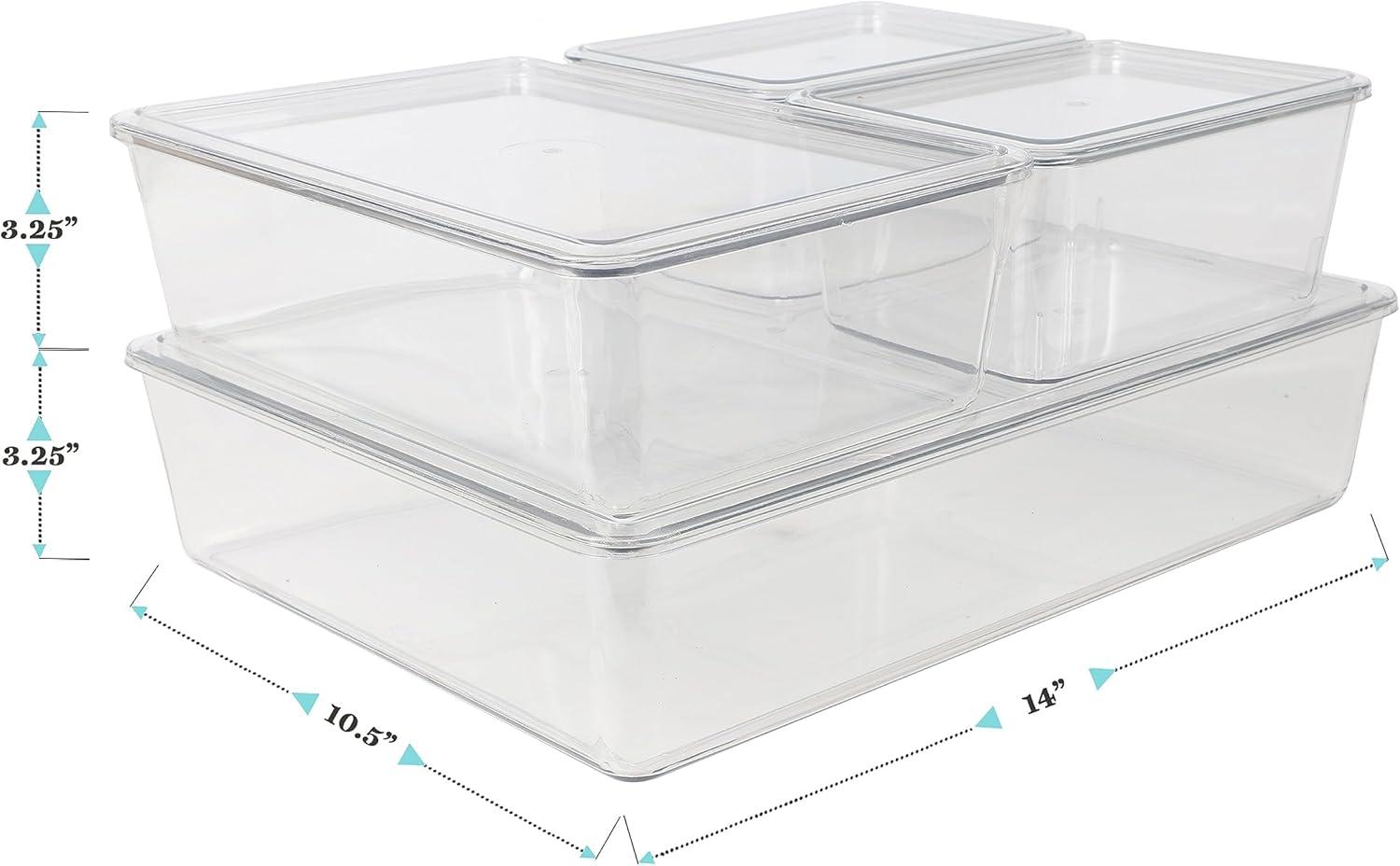Martha Stewart Brody Plastic Storage Organizer Bins with Lids for Home Office, Kitchen, or Bathroom, 4 Pack, 2-Small/1-Medium, 1 Large, Clear/White(Set of 1)