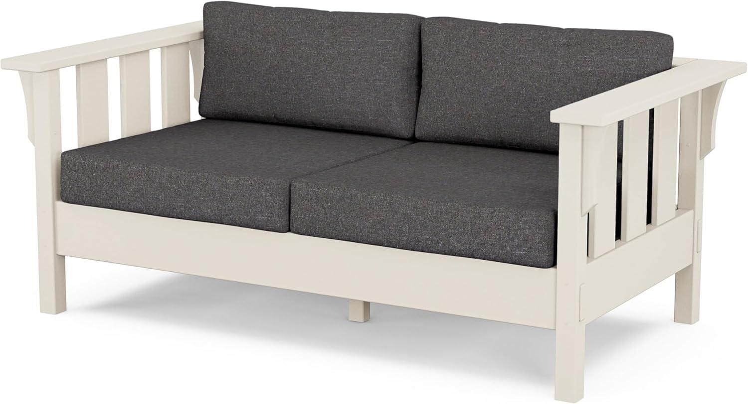 Martha Stewart by POLYWOOD® Acadia 4-Piece Deep Seating Set with Loveseat in Teak/Dune Burlap(Sand / Ash Charcoal)