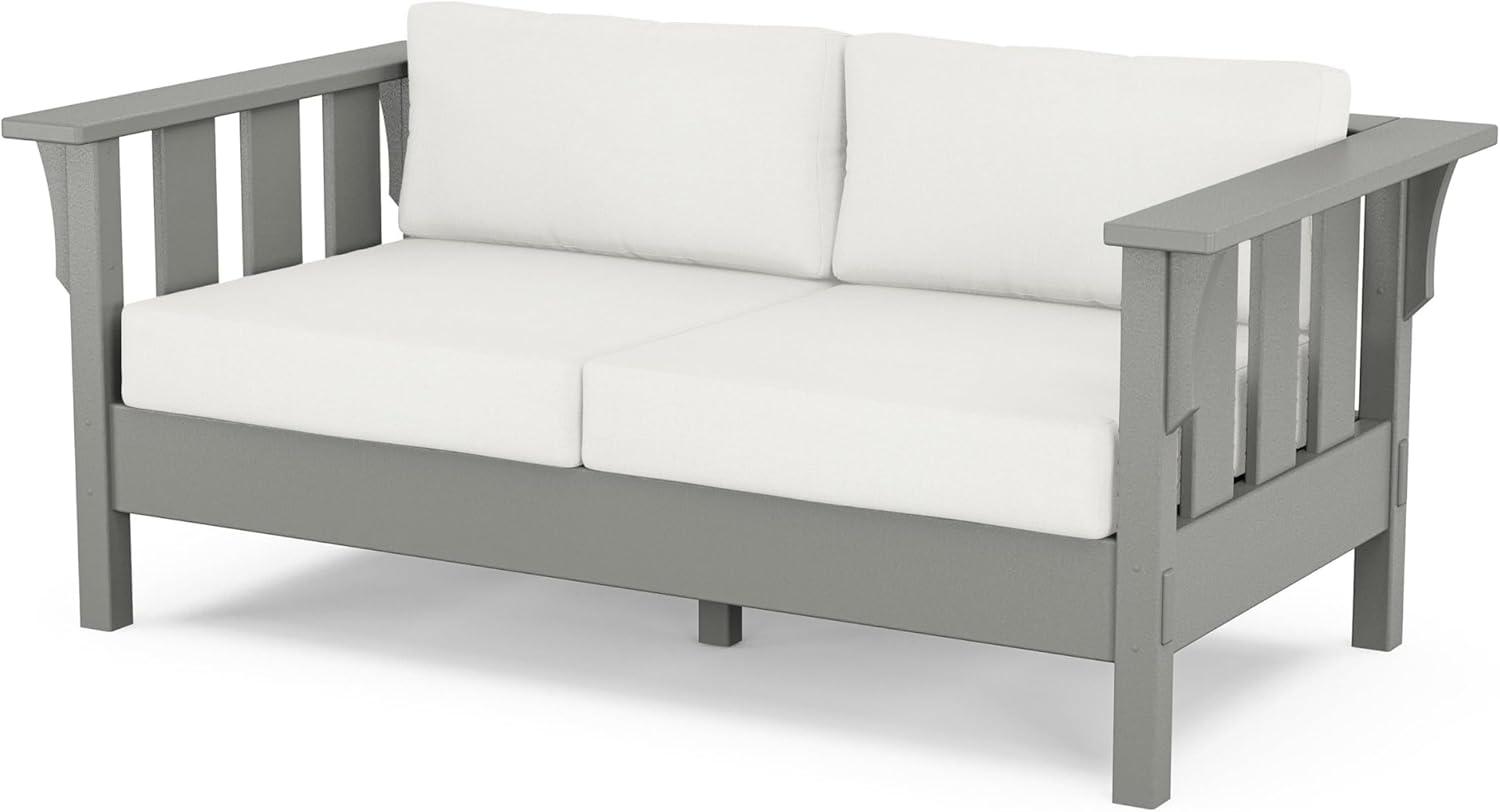 Martha Stewart by POLYWOOD® Acadia 4-Piece Deep Seating Set with Loveseat in Teak/Dune Burlap(Slate Grey / Natural Linen)