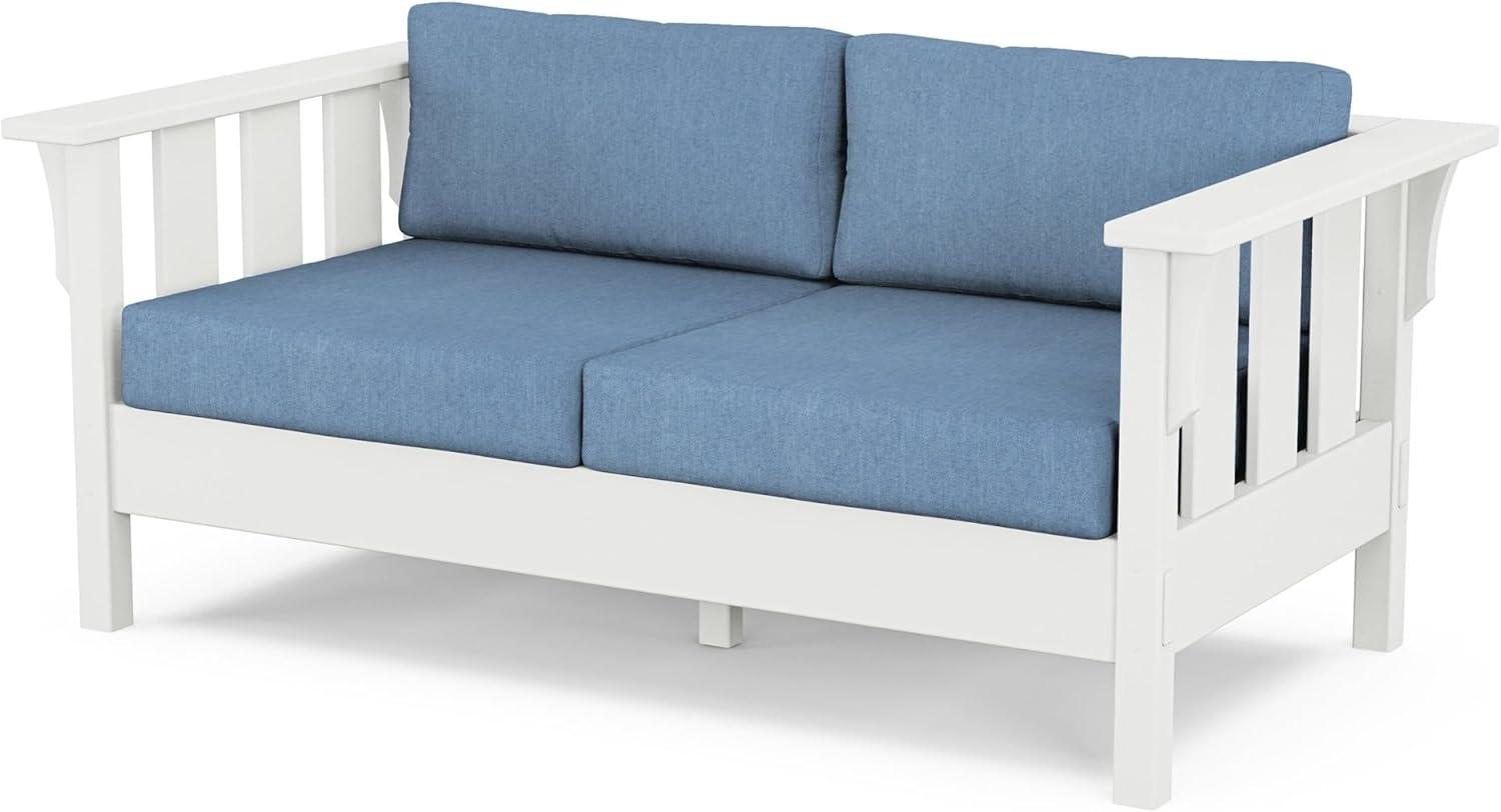 Martha Stewart by POLYWOOD® Acadia 4-Piece Deep Seating Set with Loveseat in Teak/Dune Burlap(White / Sky Blue)