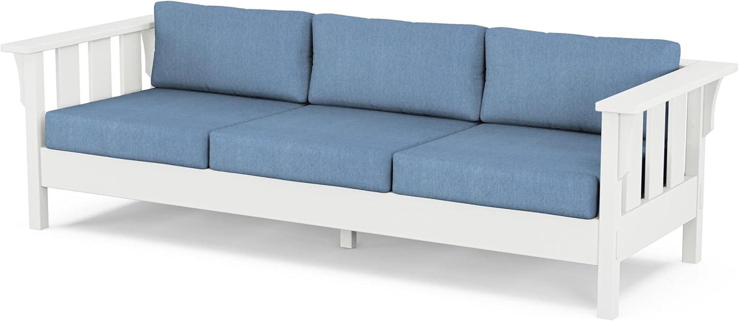 The Martha Stewart by POLYWOOD Acadia 4-Piece Deep Seating Set with Sofa celebrates a return to the forms of Craftsman furniture, defined by strong vertical lines that lend a subtle sense of grandeur. Decorative details emulate traditional woodworking joinery. This all-weather collection was inspired by pieces at Martha Stewart's residence in Maine, a bucolic beauty built in the 1920s.