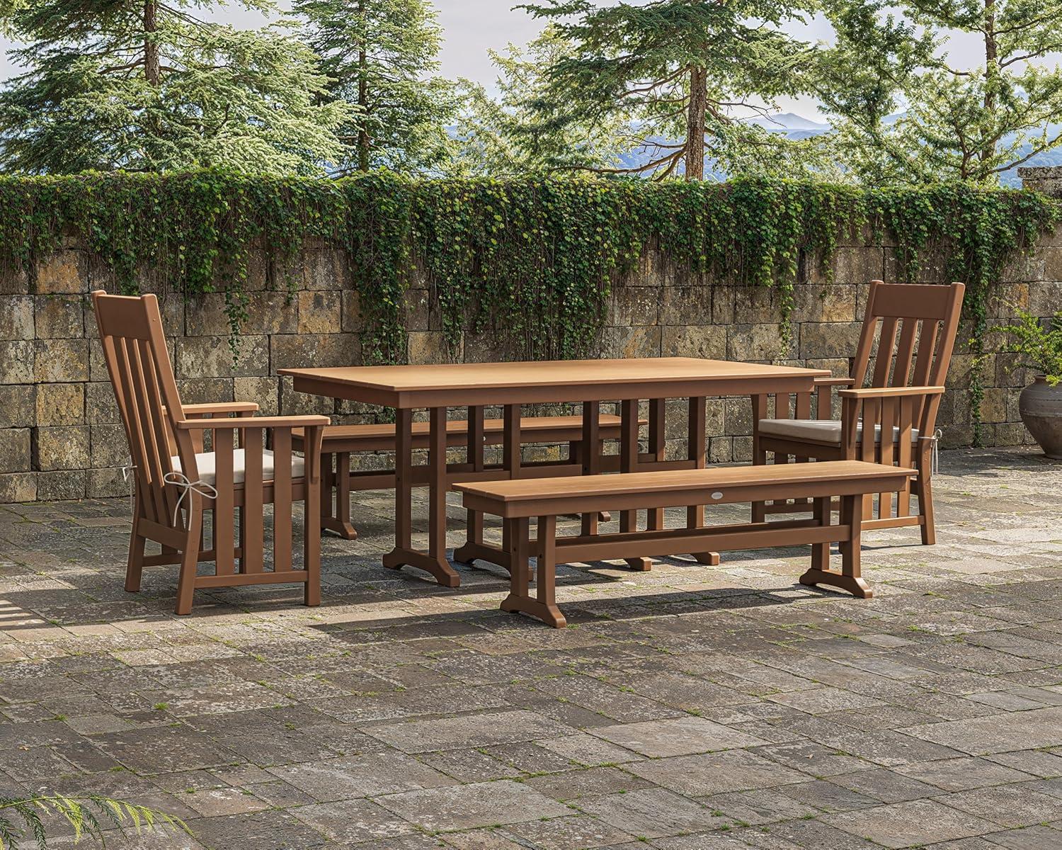 Martha Stewart by POLYWOOD® Acadia 5-Piece Farmhouse Dining Set with Benches in Slate Grey(Mahogany)