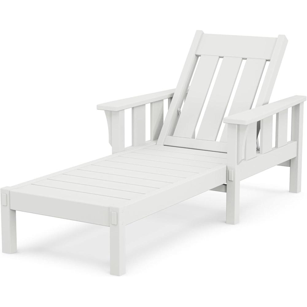 The Martha Stewart by POLYWOOD Acadia Chaise Lounge is your own personal paradise, with an adjustable backrest for every way you rest, relax, and recline. Defined by strong vertical lines and decorative details emulating traditional woodworking joinery, this all-weather collection is a return to the forms of Craftsman furniture. It was inspired by pieces at Martha Stewart's residence in Maine, a bucolic beauty built in the 1920s.