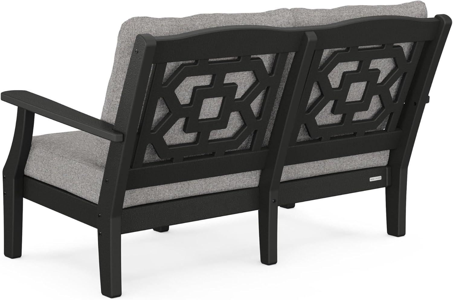 Martha Stewart by POLYWOOD® Chinoiserie 4-Piece Deep Seating Set with Loveseat in Sand/Glacier Spa(Black / Grey Mist)