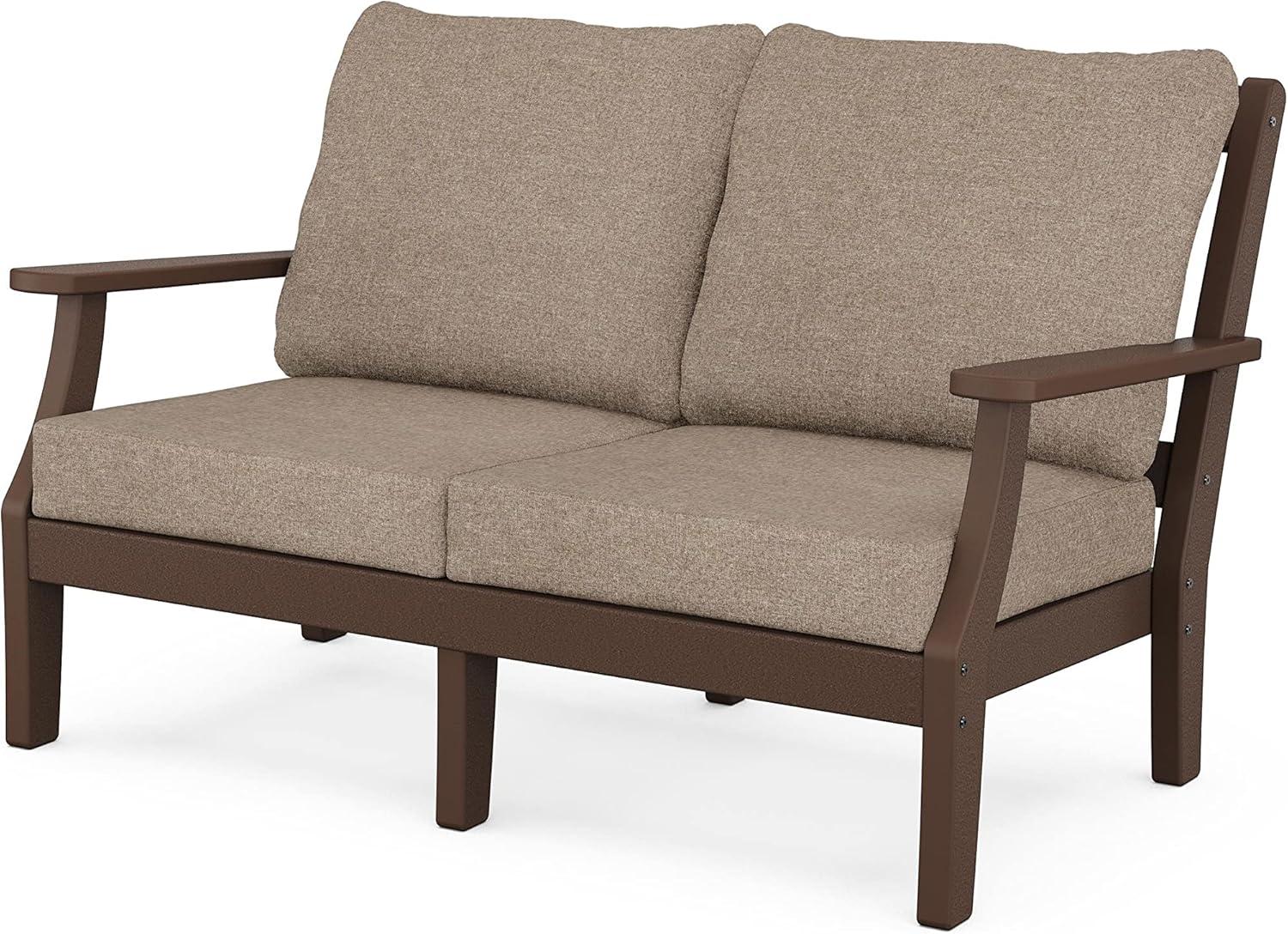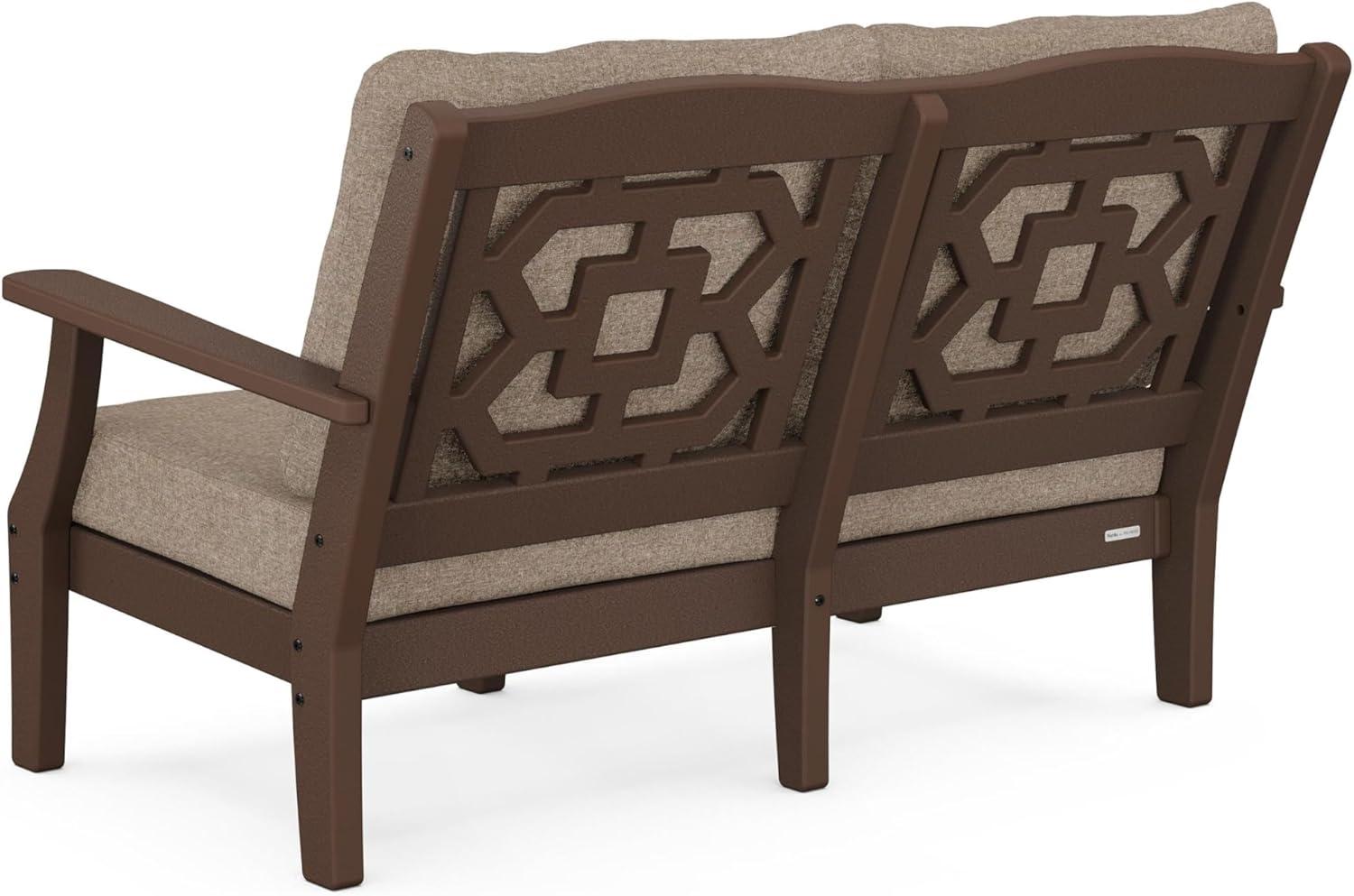 Martha Stewart by POLYWOOD® Chinoiserie 4-Piece Deep Seating Set with Loveseat in Sand/Glacier Spa(Mahogany / Spiced Burlap)